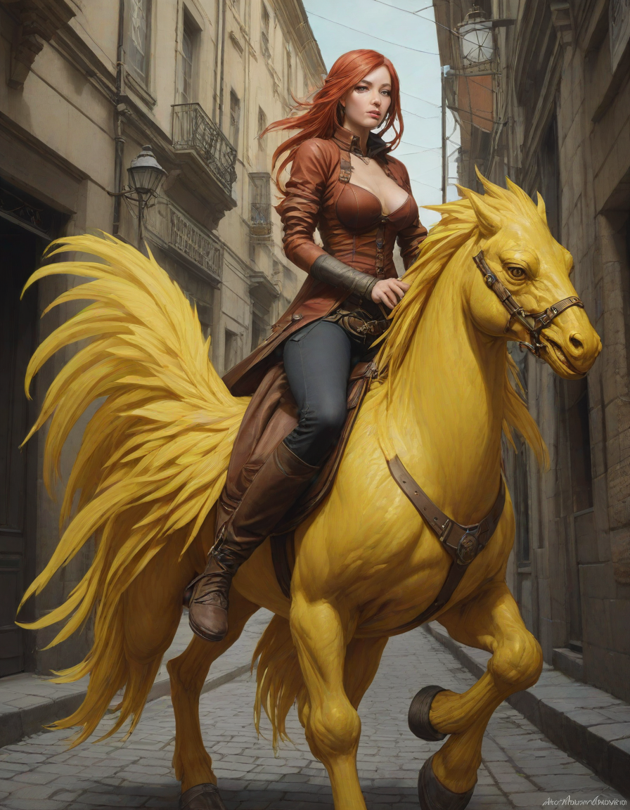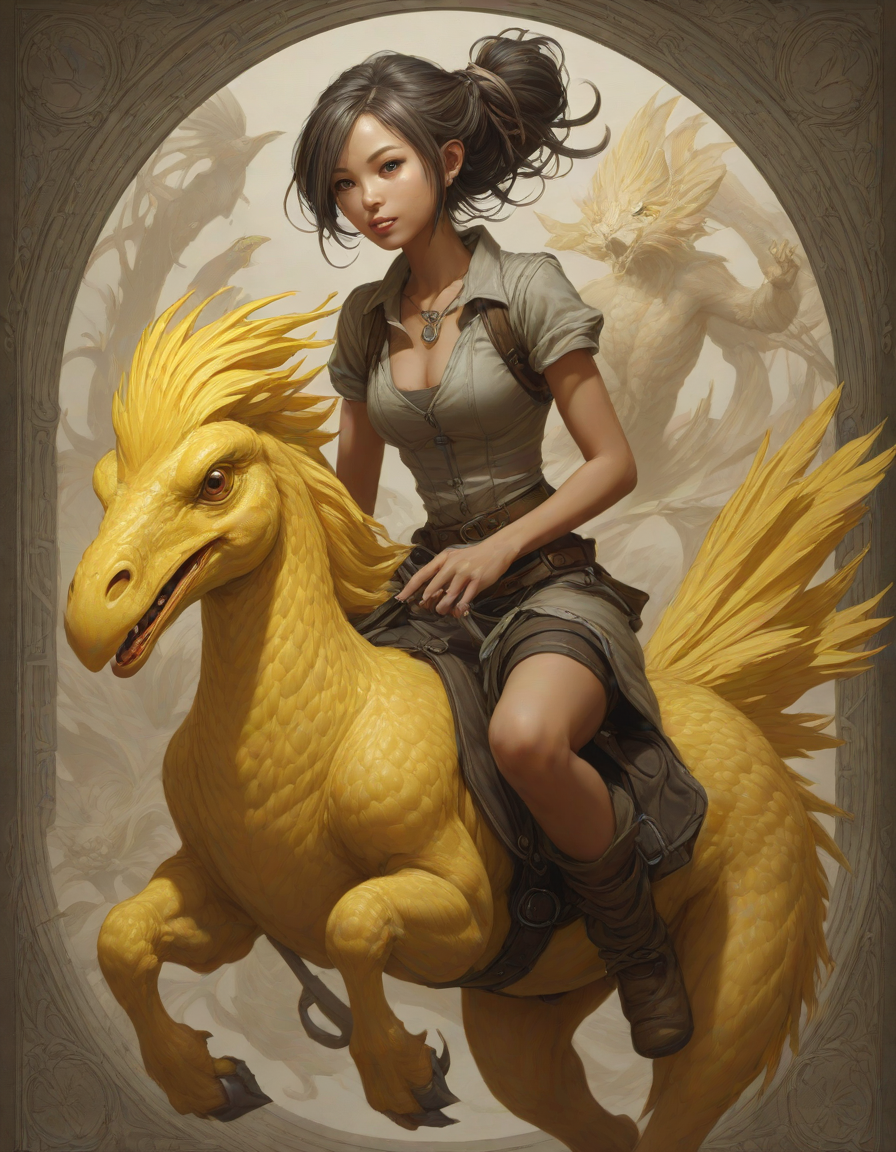 Riding a Chocobo, yellow, bans... (6 loras merged)
