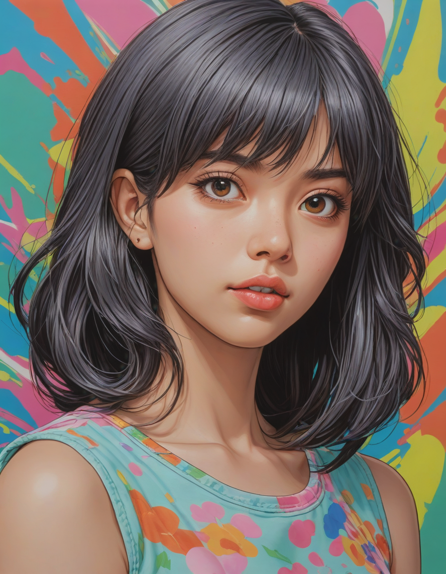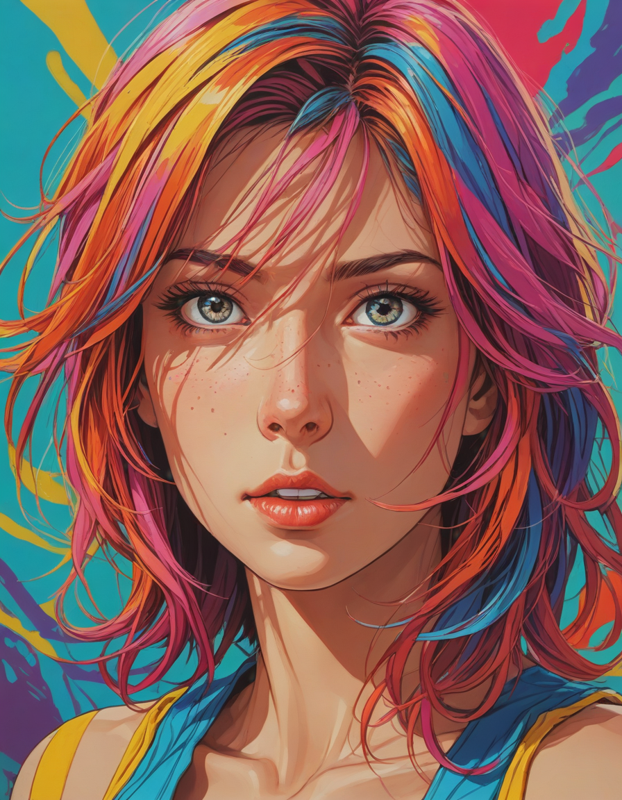 dimly lit, monochrome sketch → vibrant, colorful pop art piece