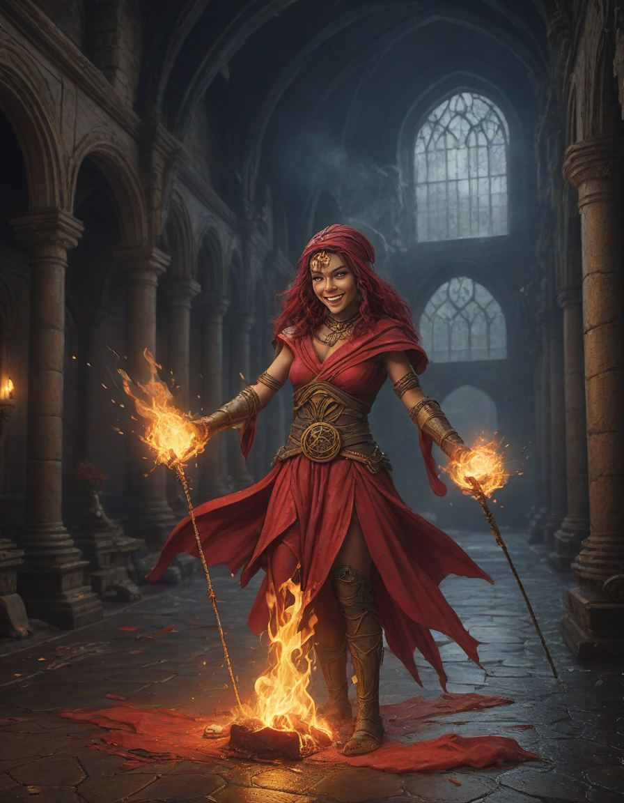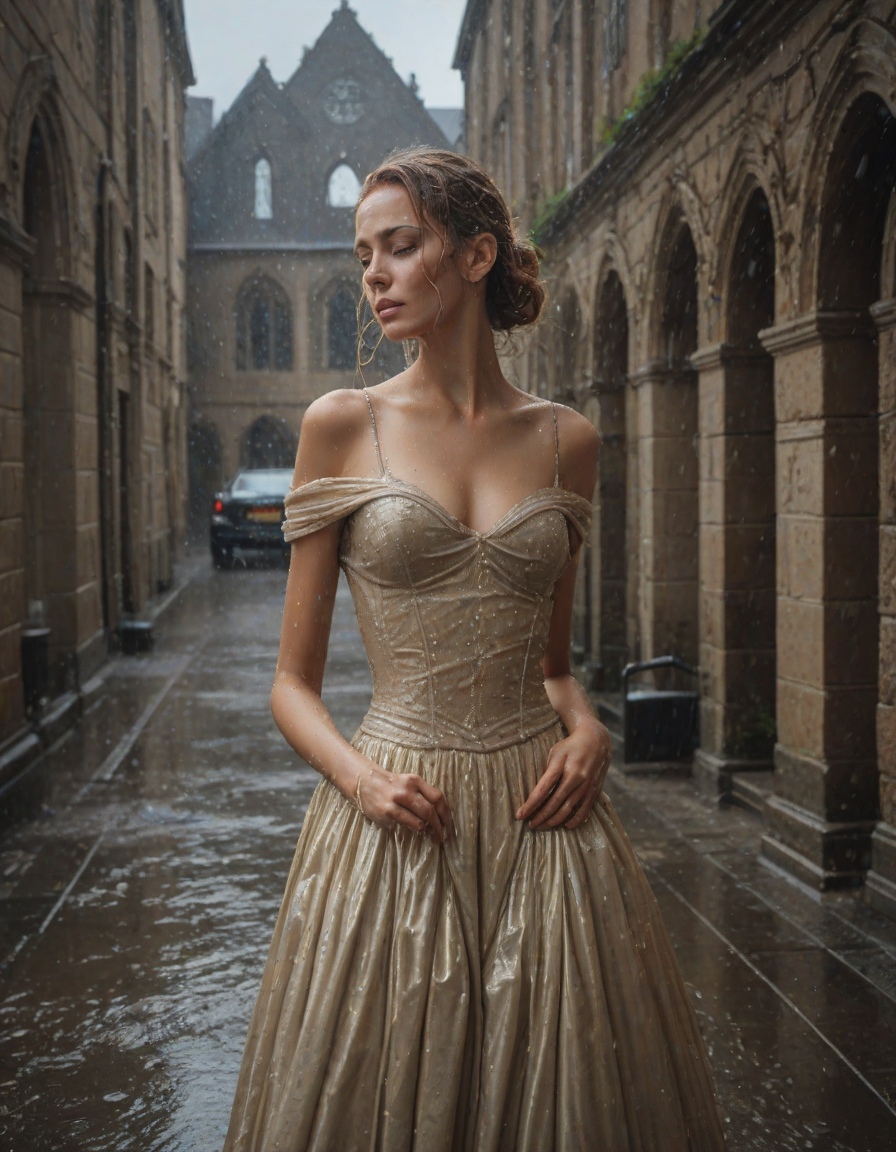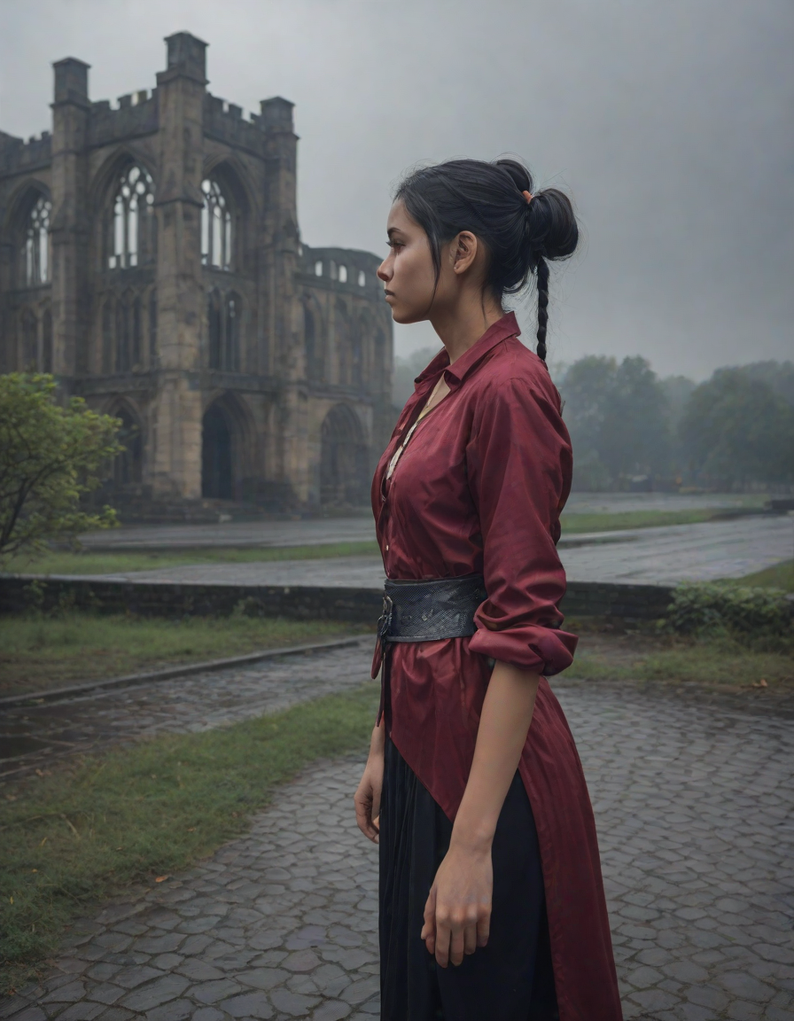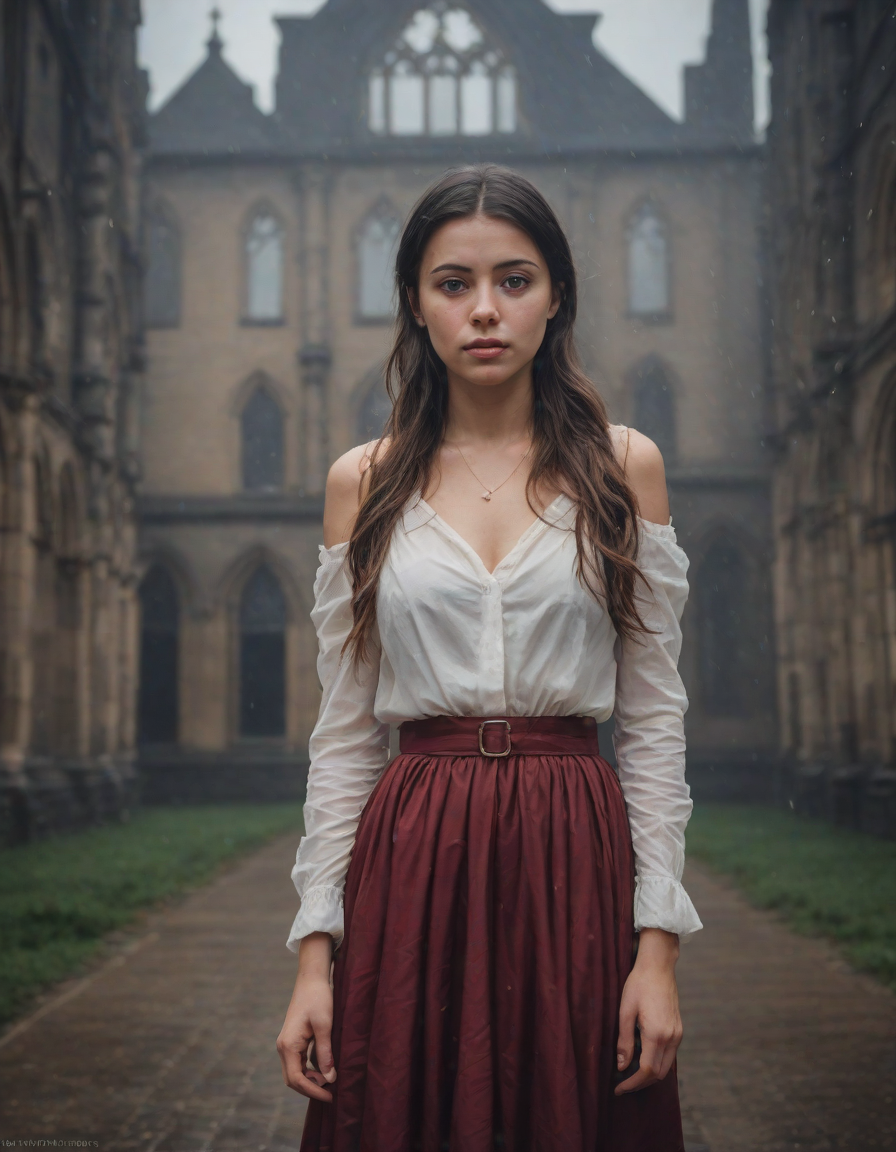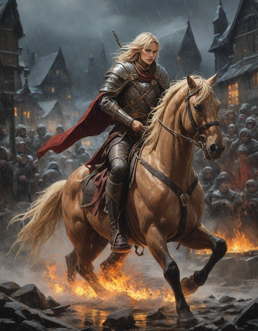 Old abbey on fire during dramatic rainstorm