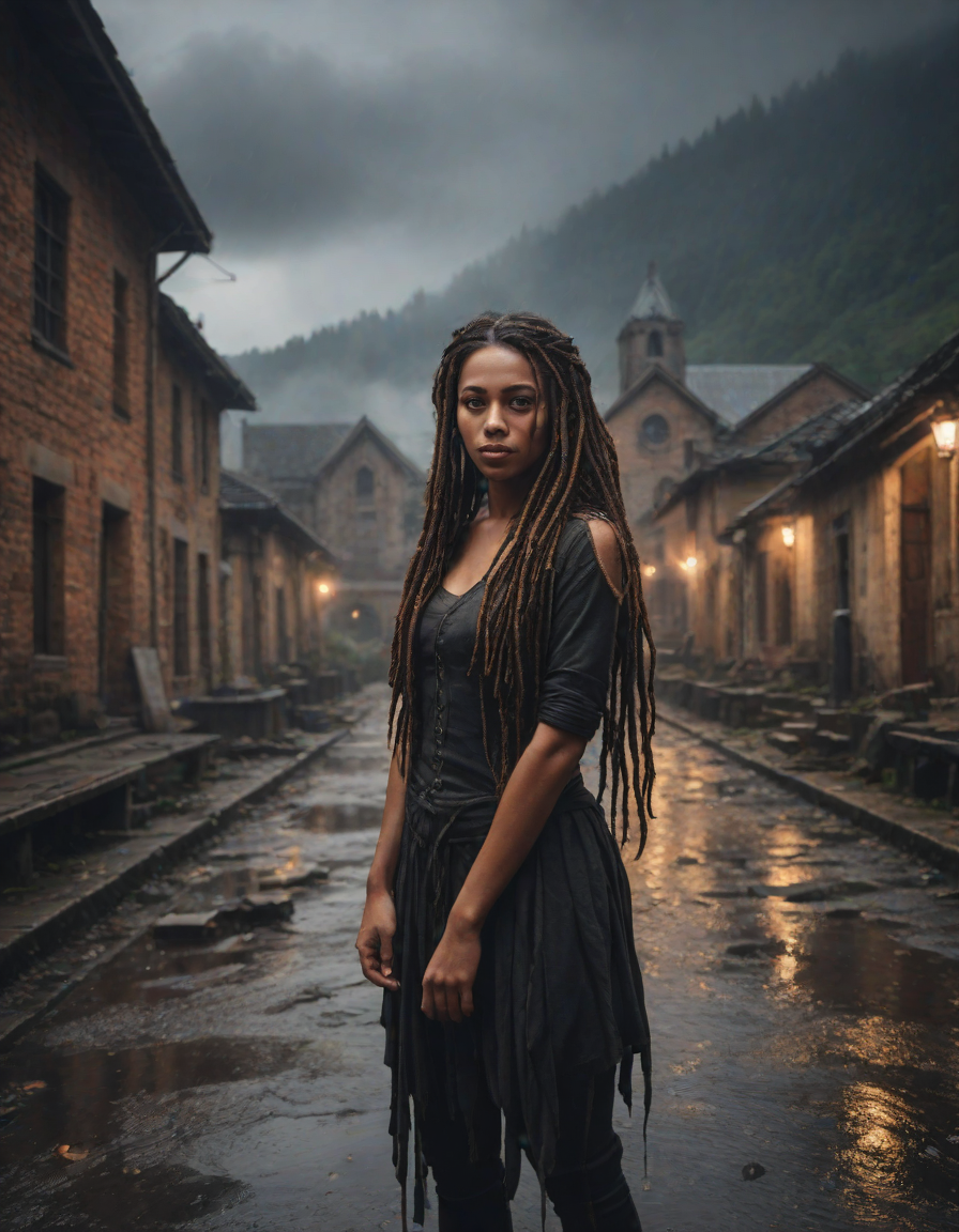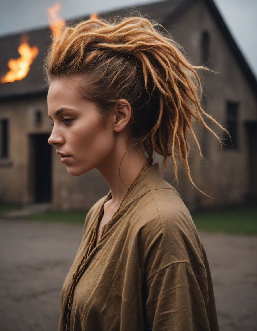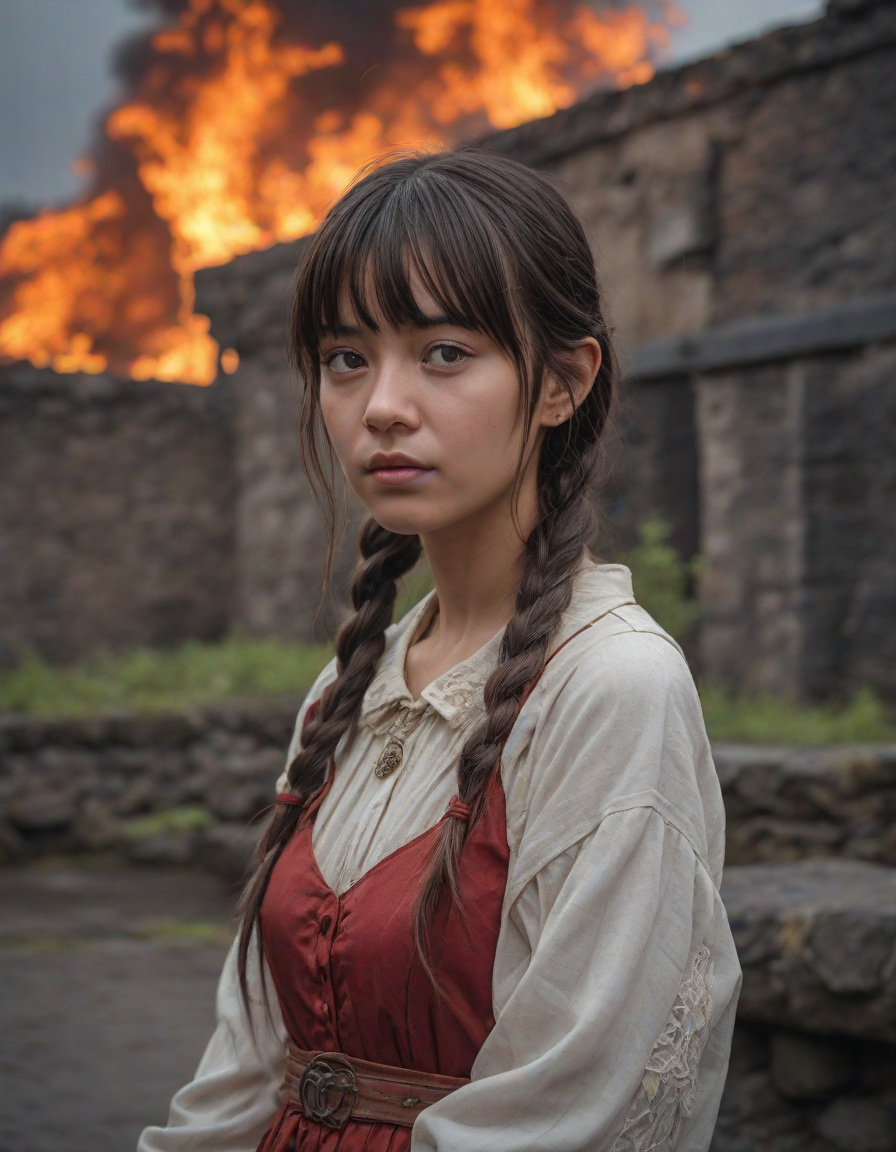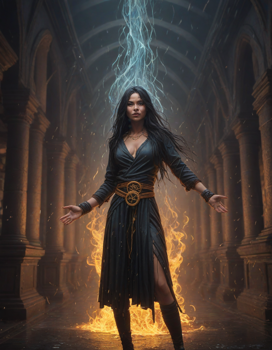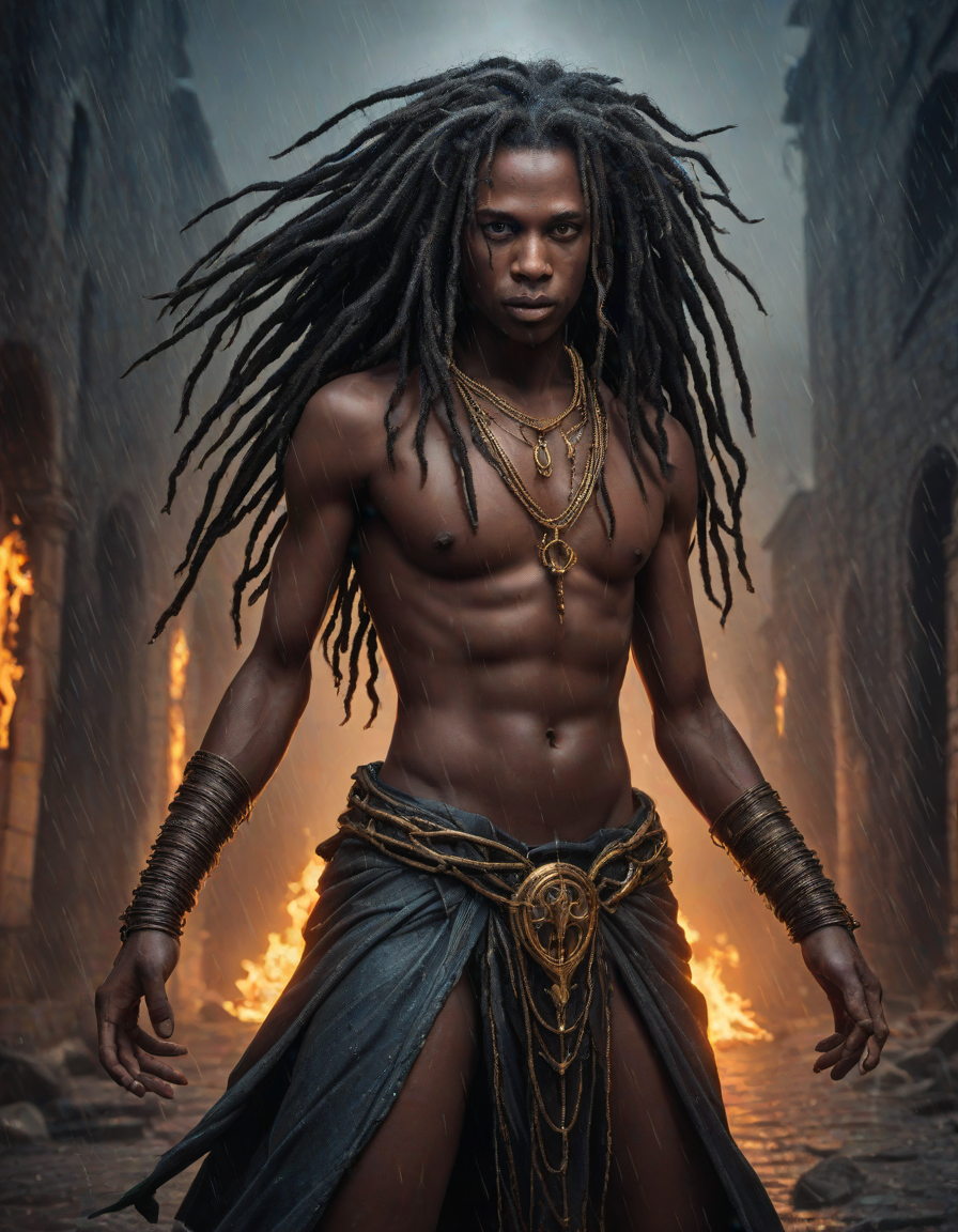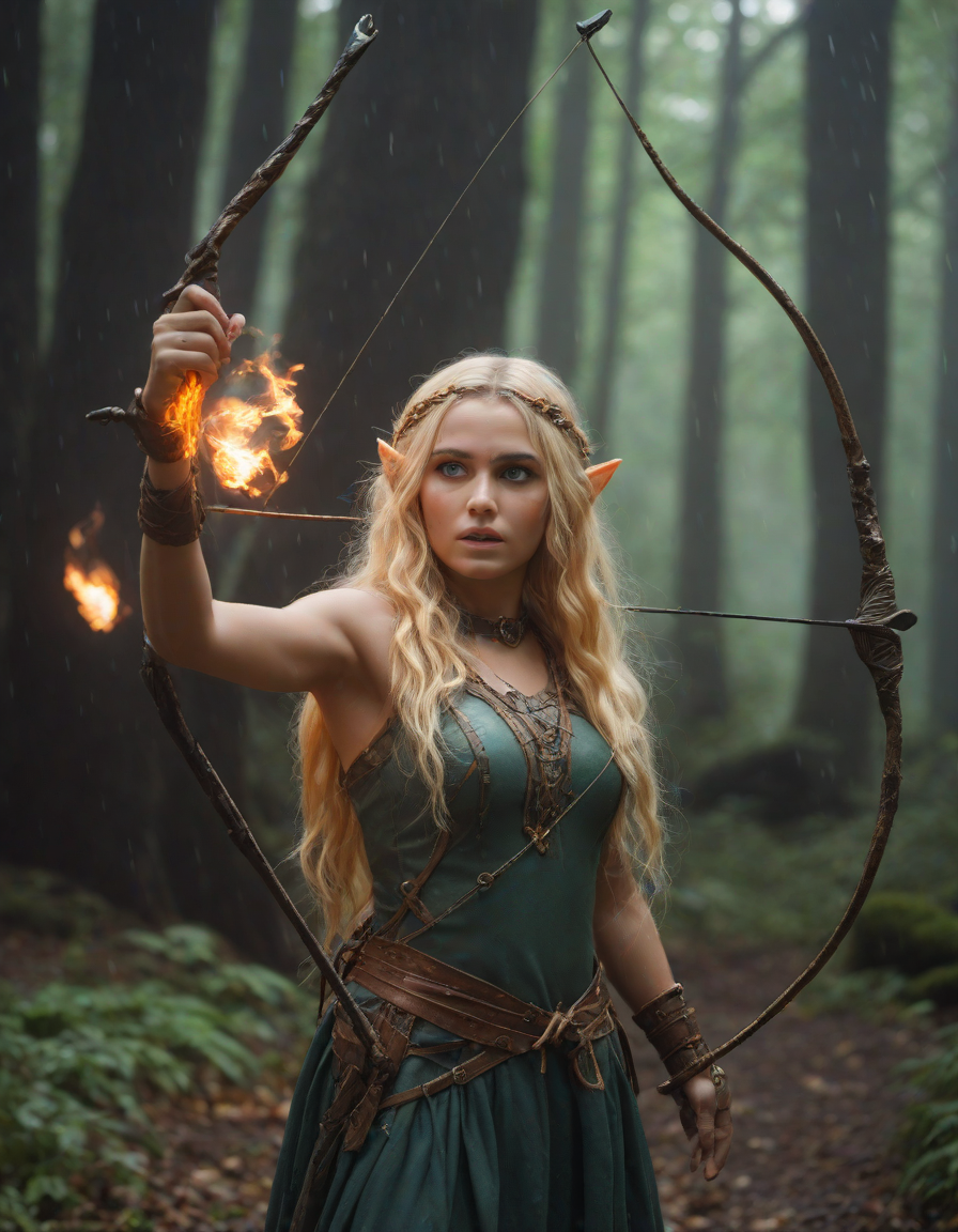 Old abbey on fire during dramatic rainstorm