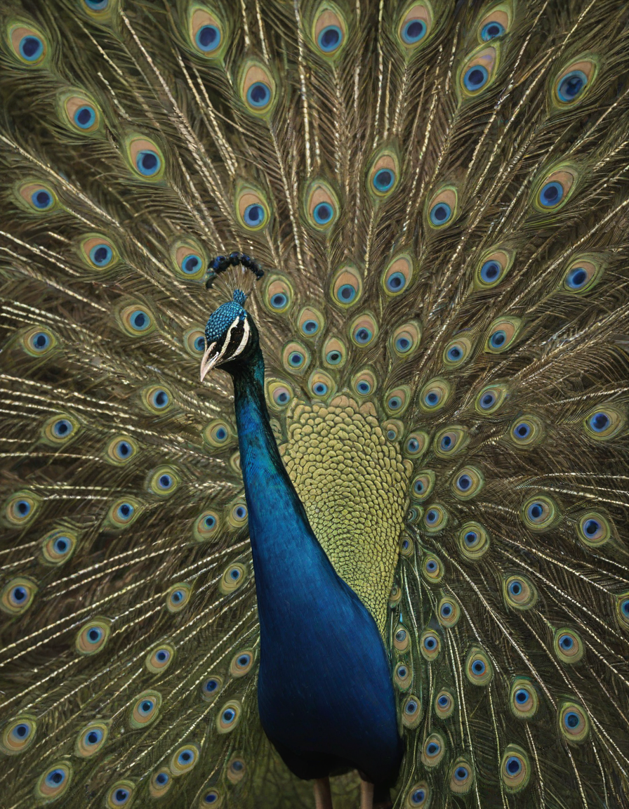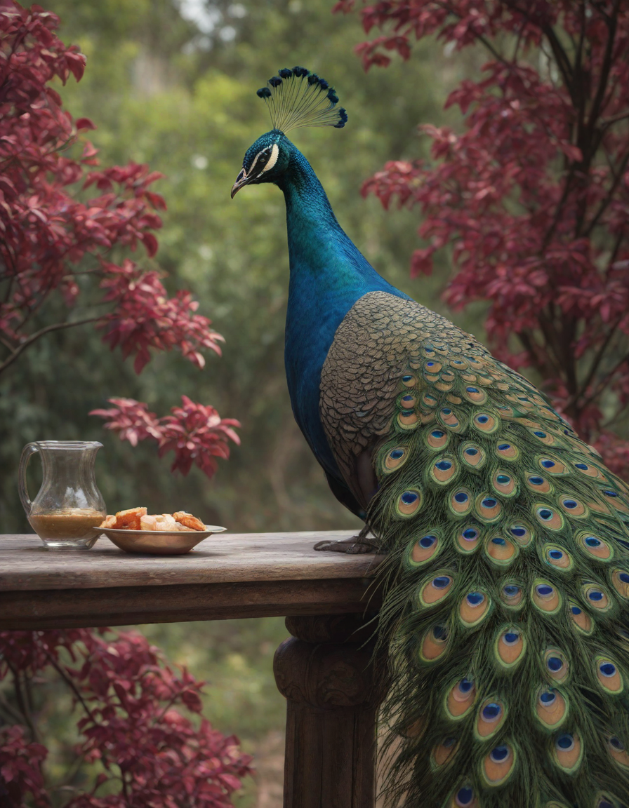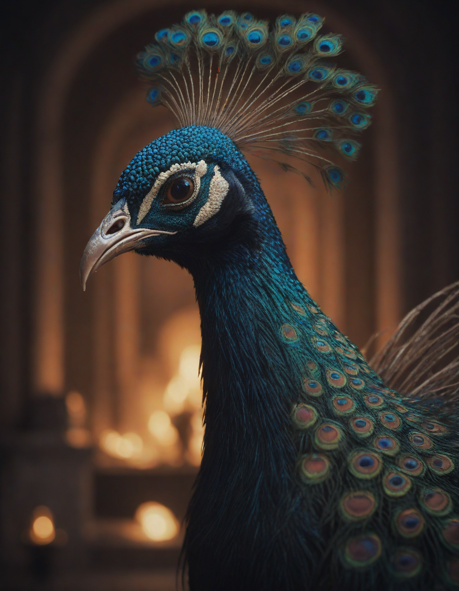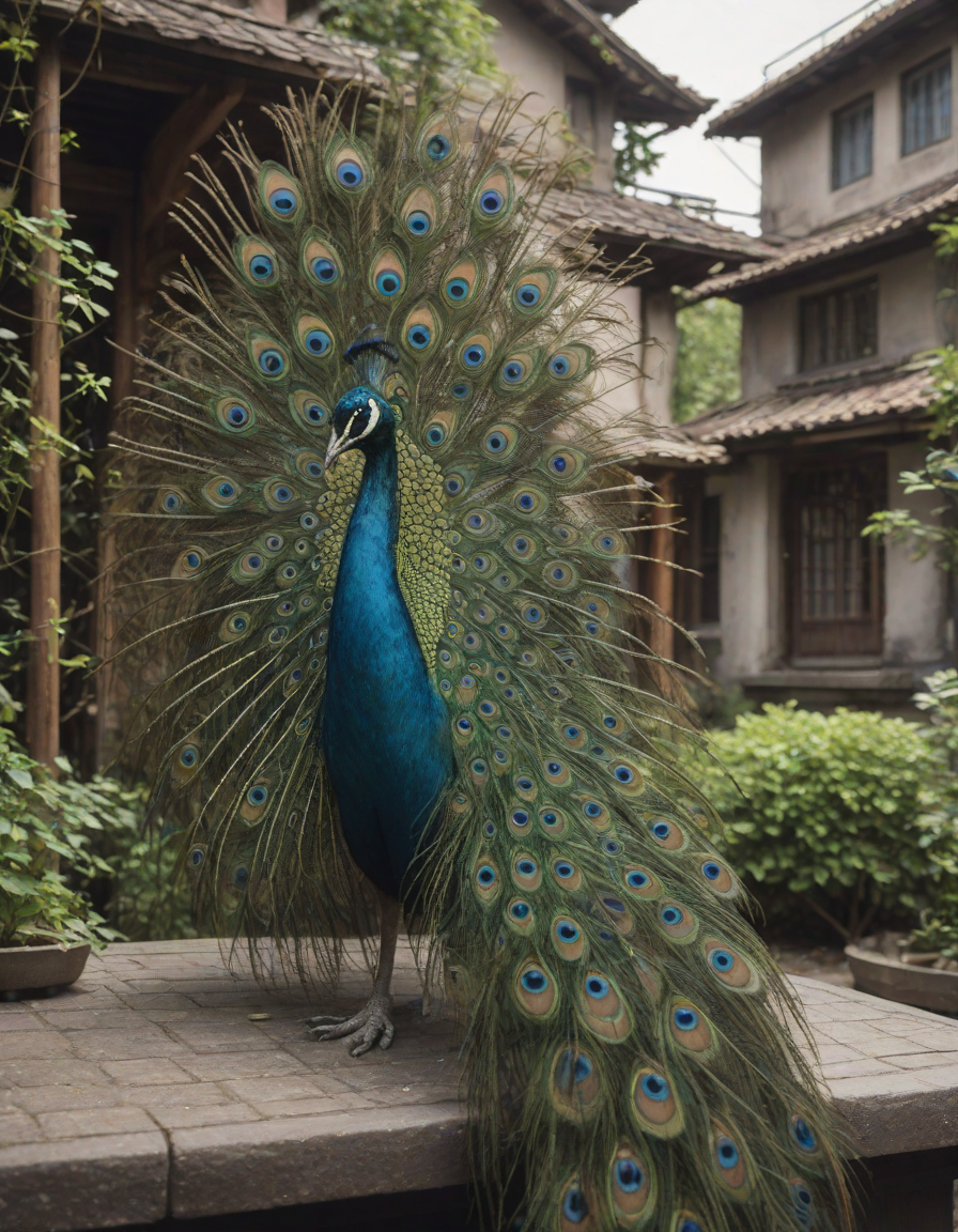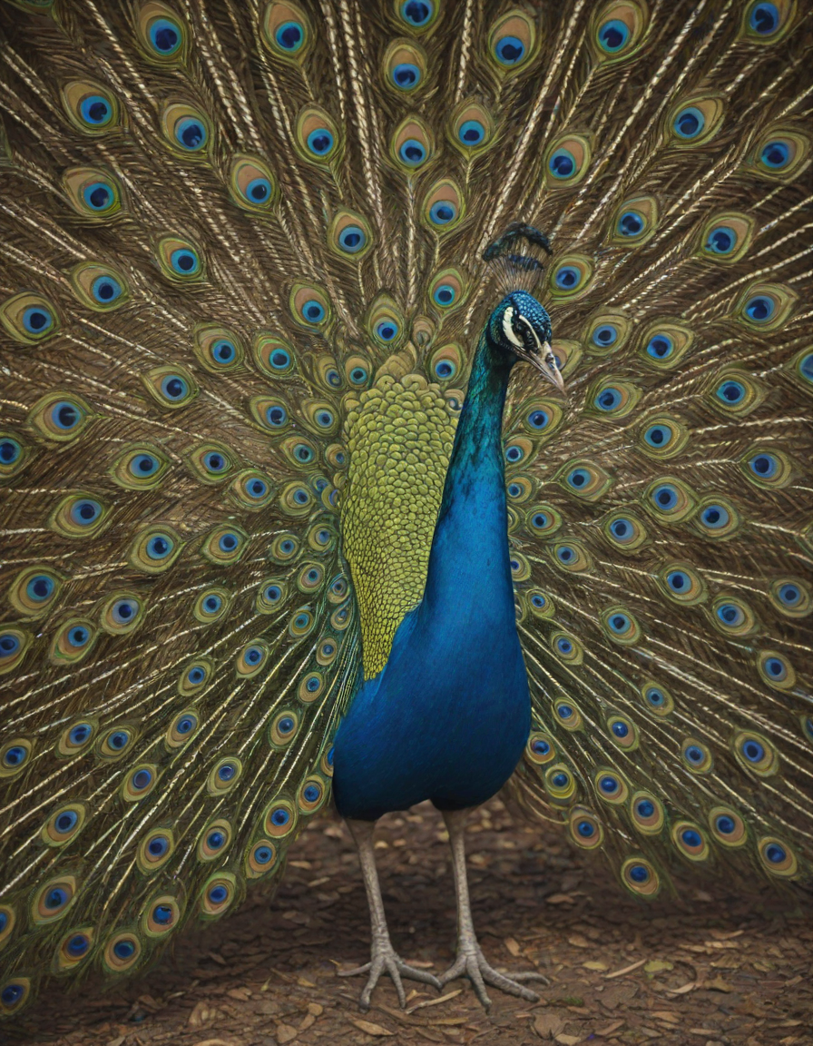 Glistening feathers of the majestic peacock