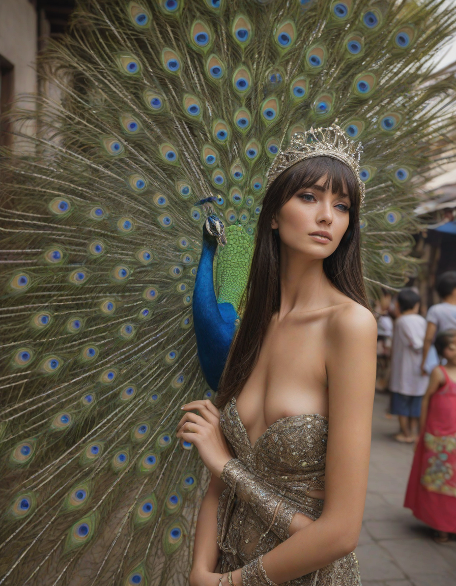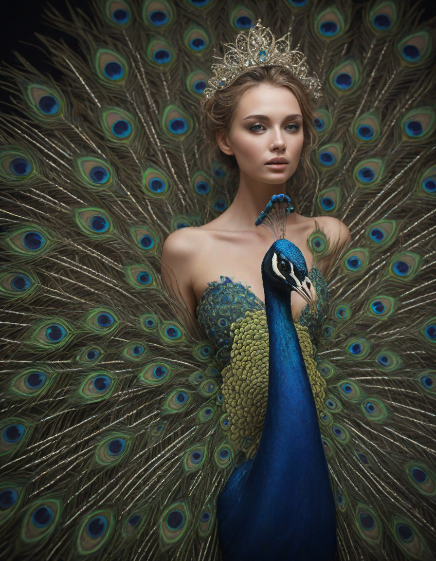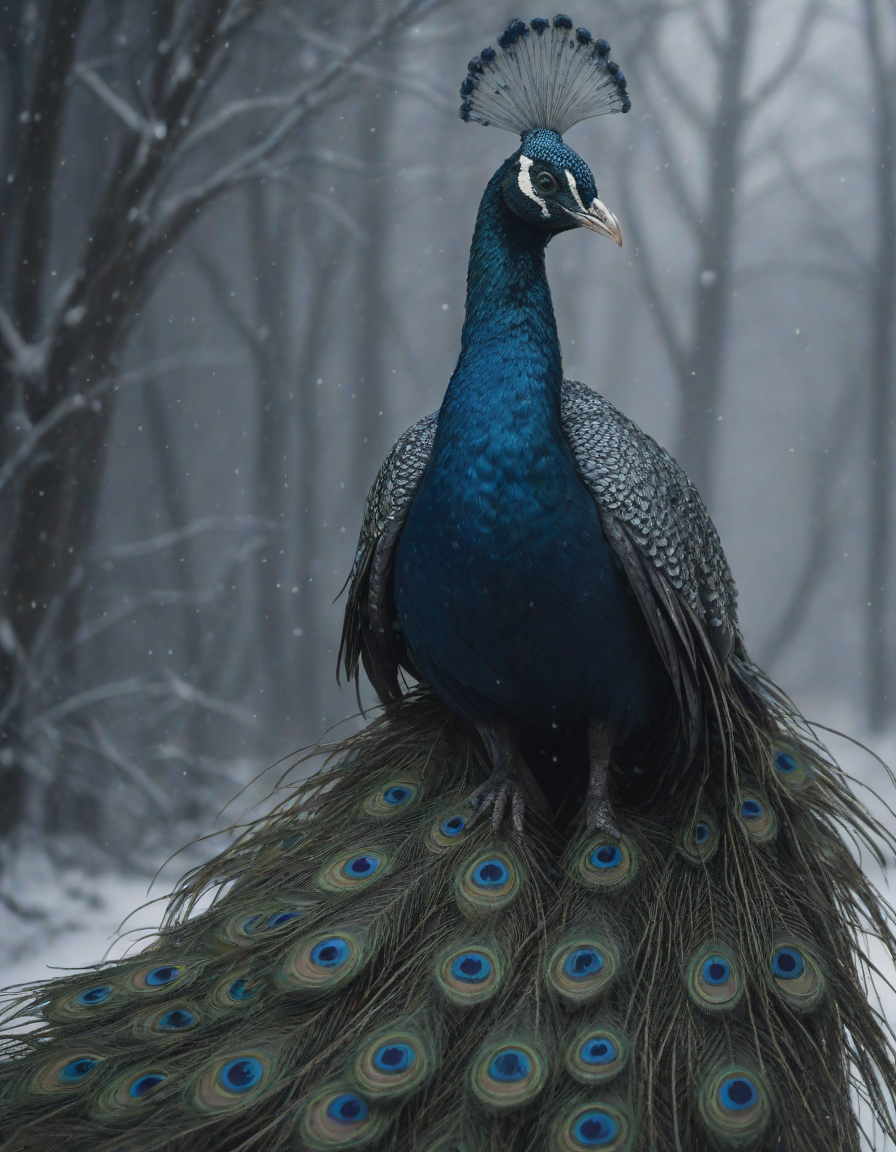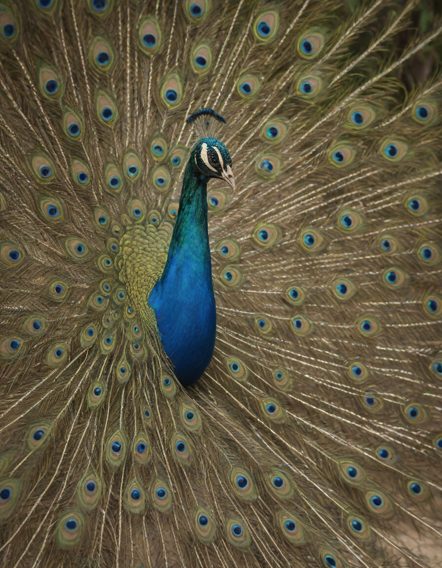 Glistening feathers of the majestic peacock