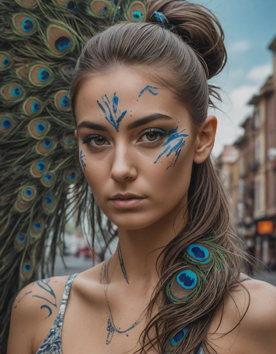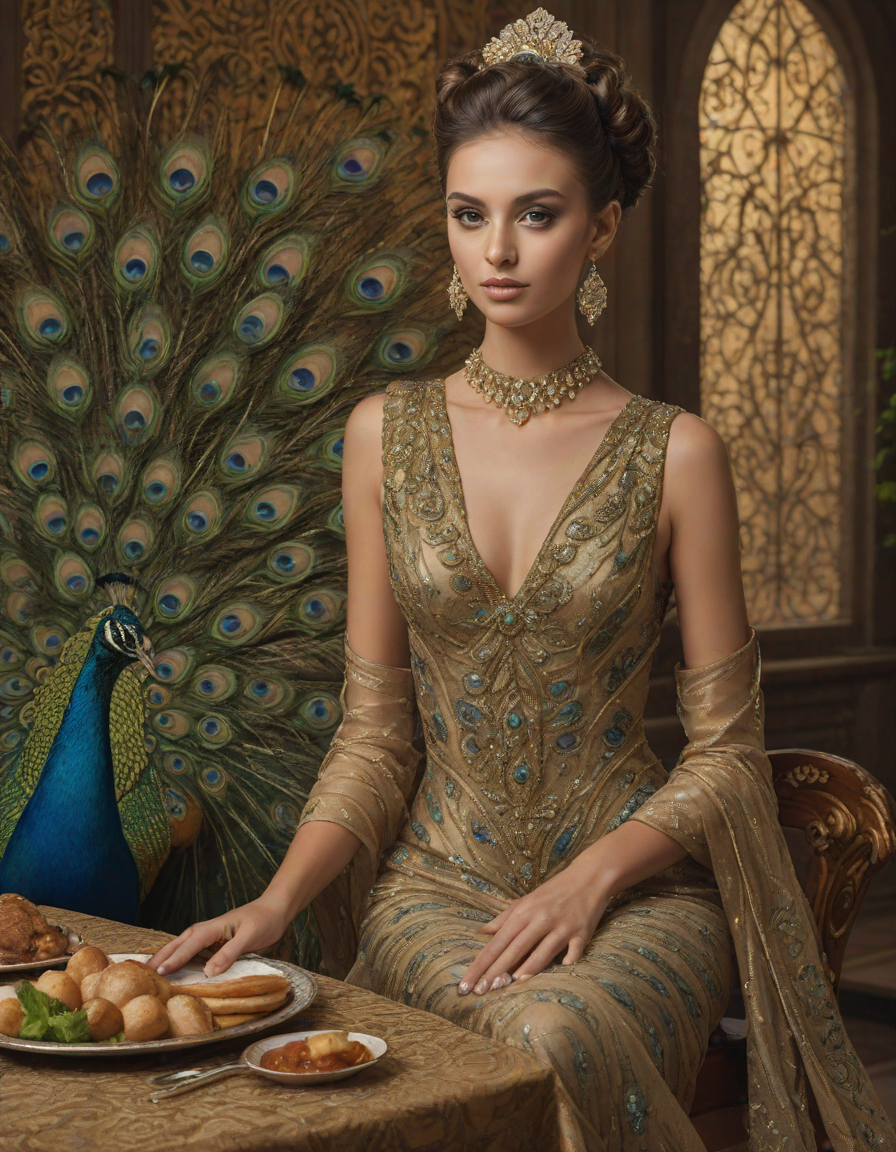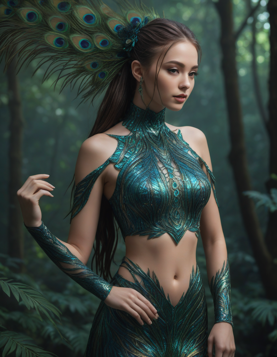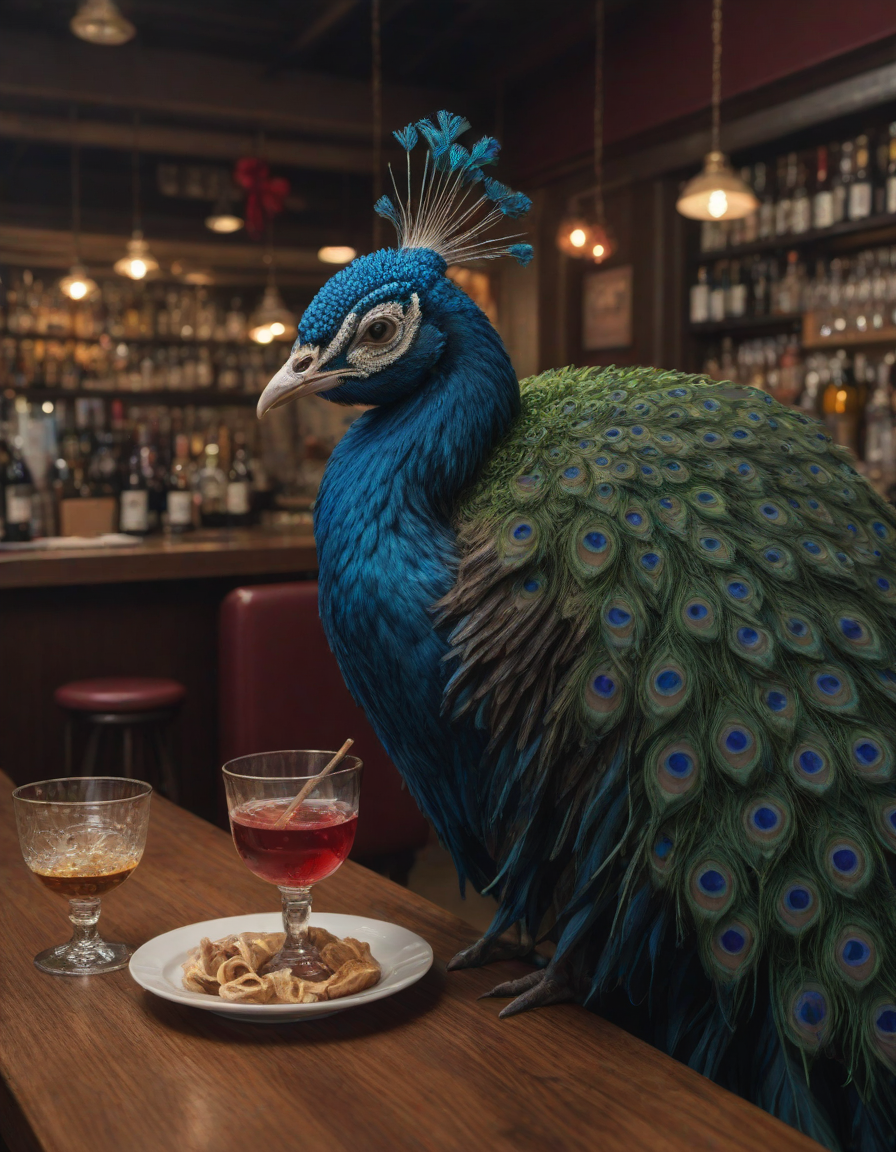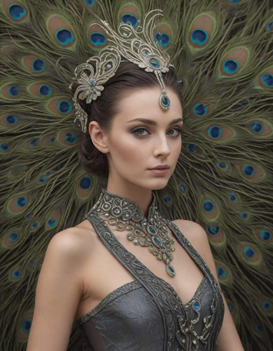 Glistening feathers of the majestic peacock