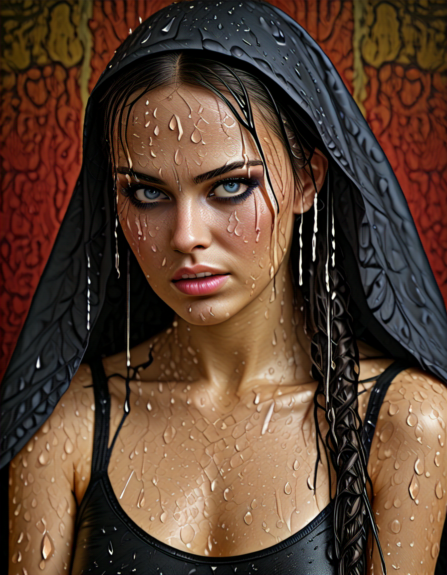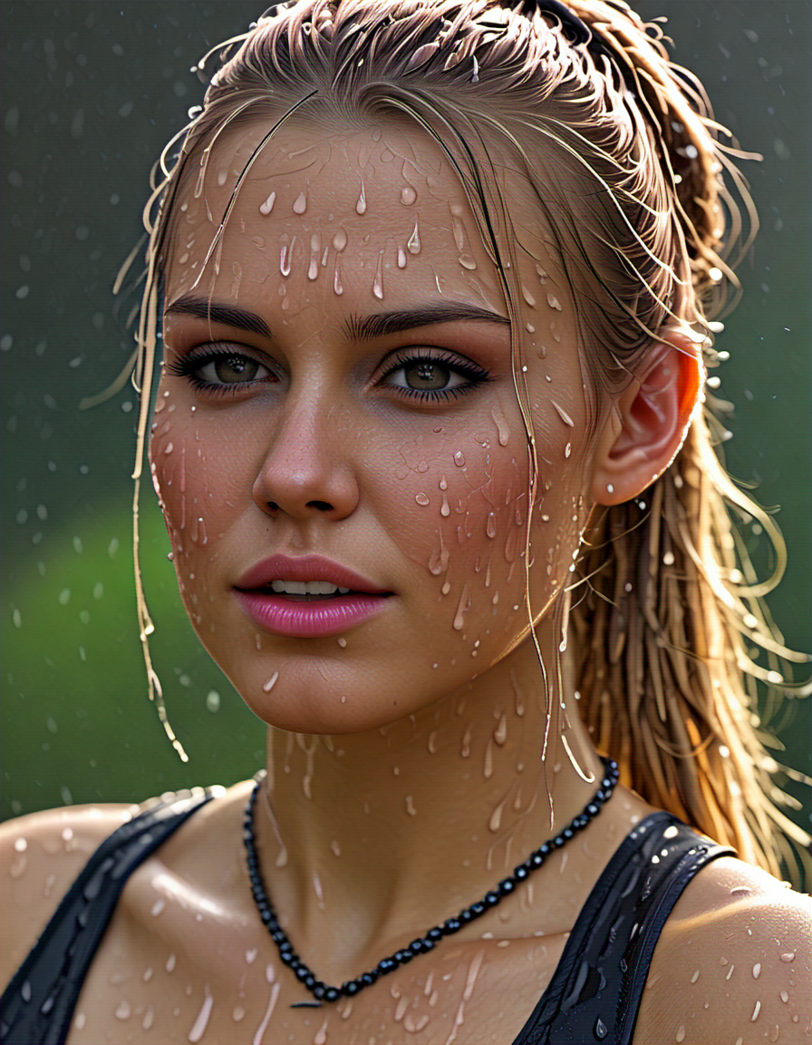 glistening sweat, sharp focus (2 doras merged)