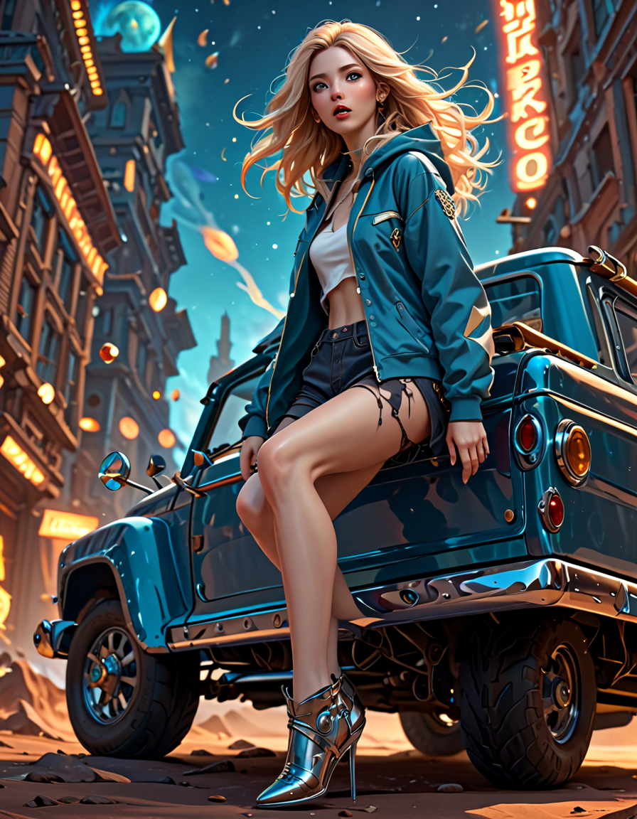 sharp focus, exaggerated, car... (2 doras merged)