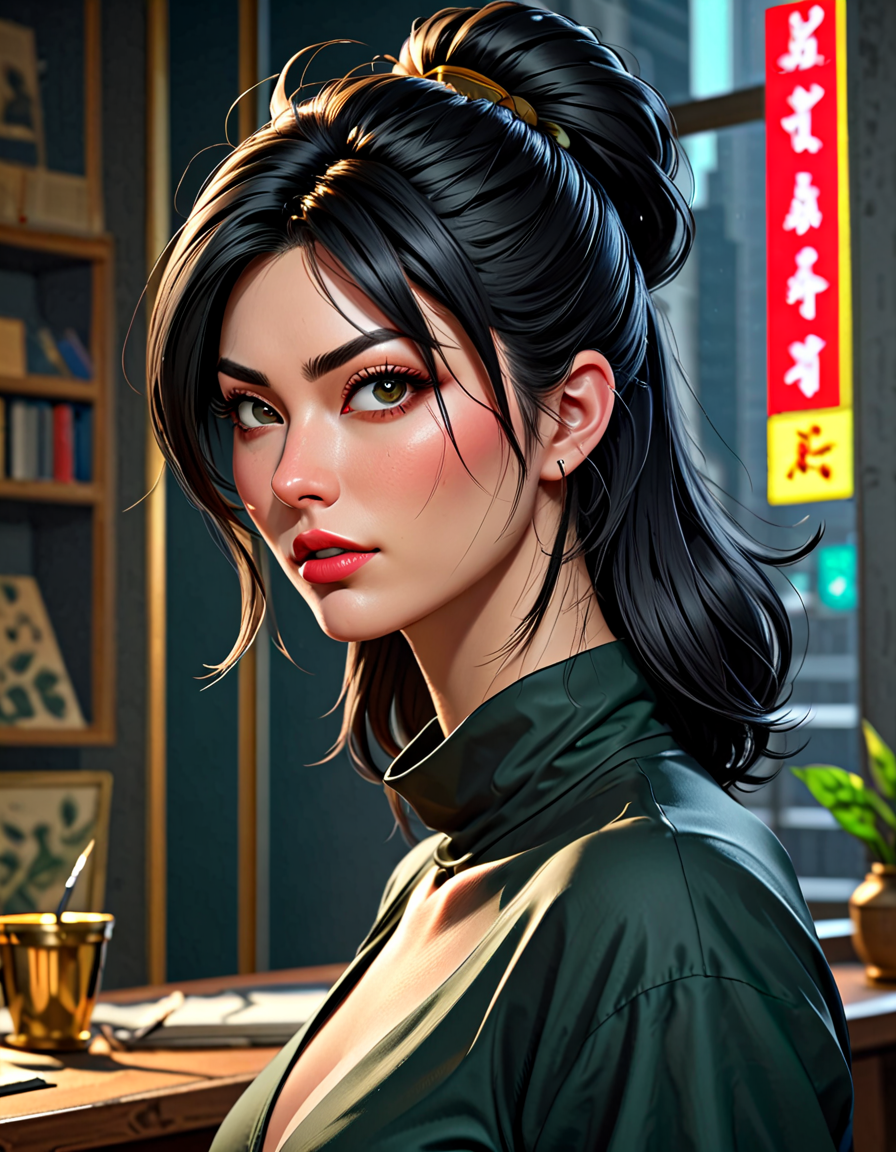 long flowy hair, sharp focus, ... (7 doras merged)