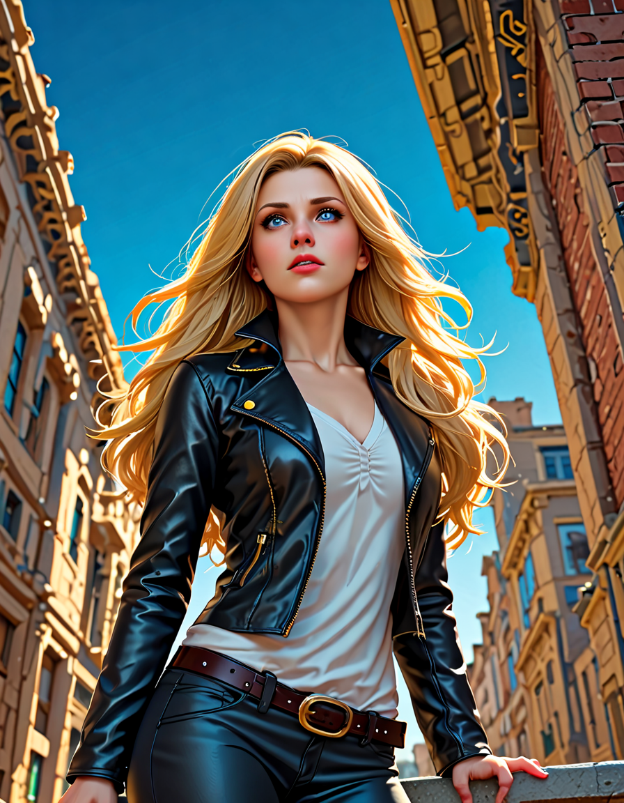 long flowy hair, wearing leath... (6 doras merged)