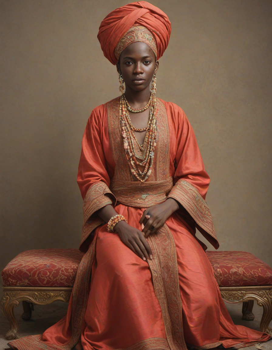 ornate, gold-trimmed ball gown... (9 loras merged)