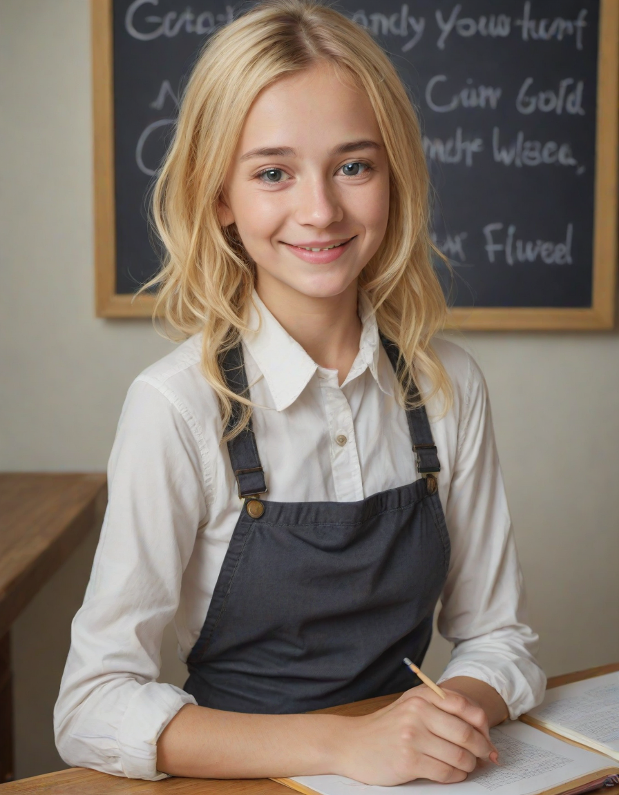 Teeth-filled grin, sitting in ... (7 loras merged)