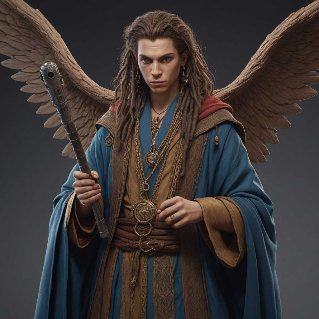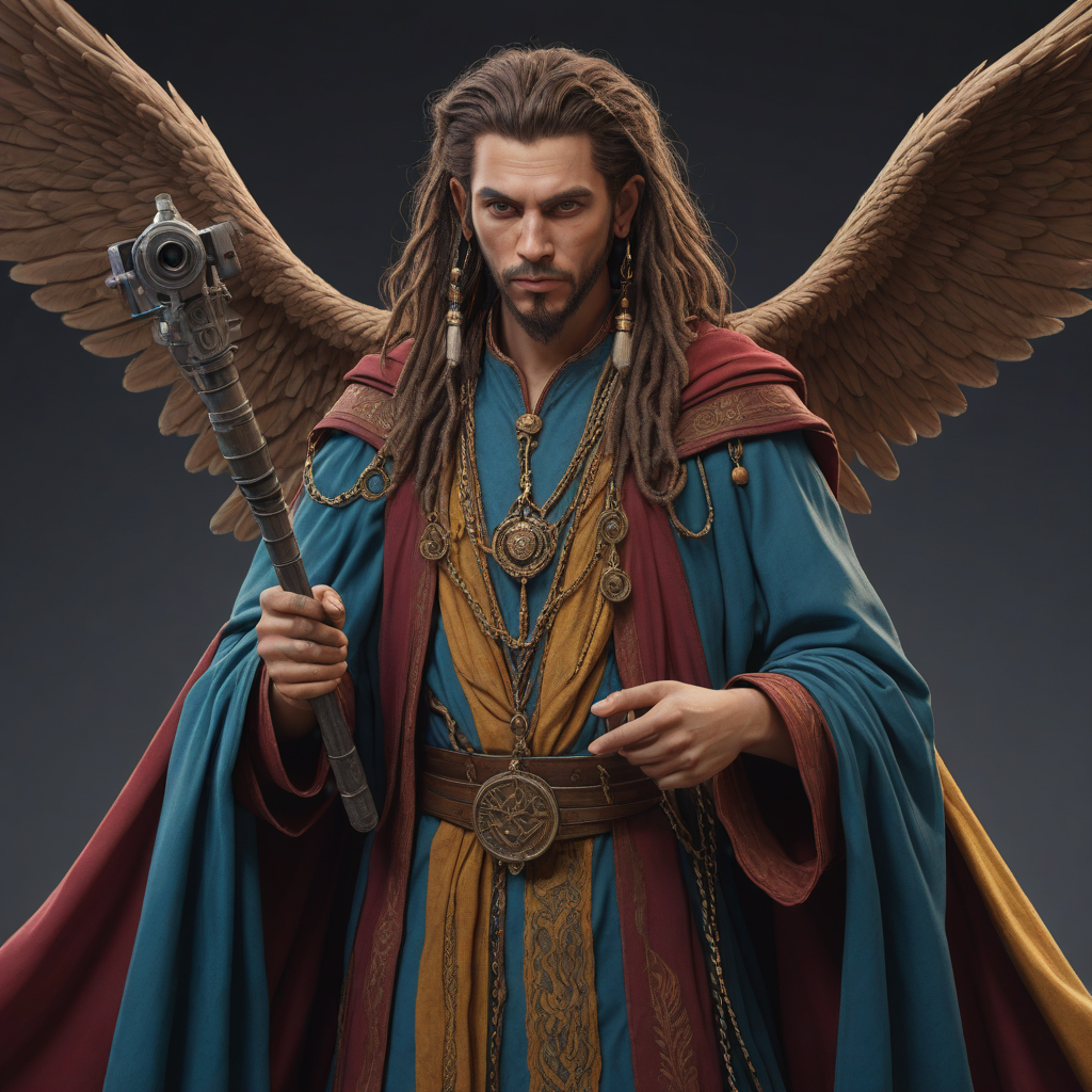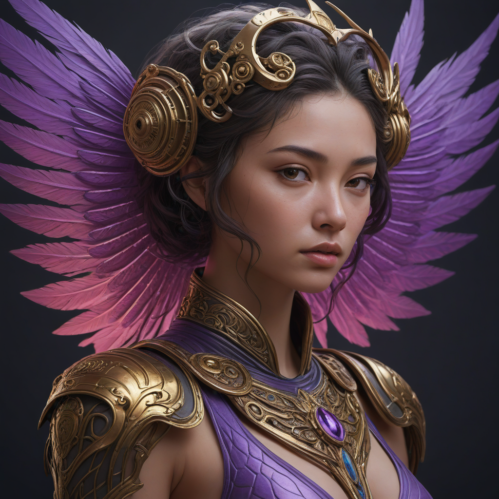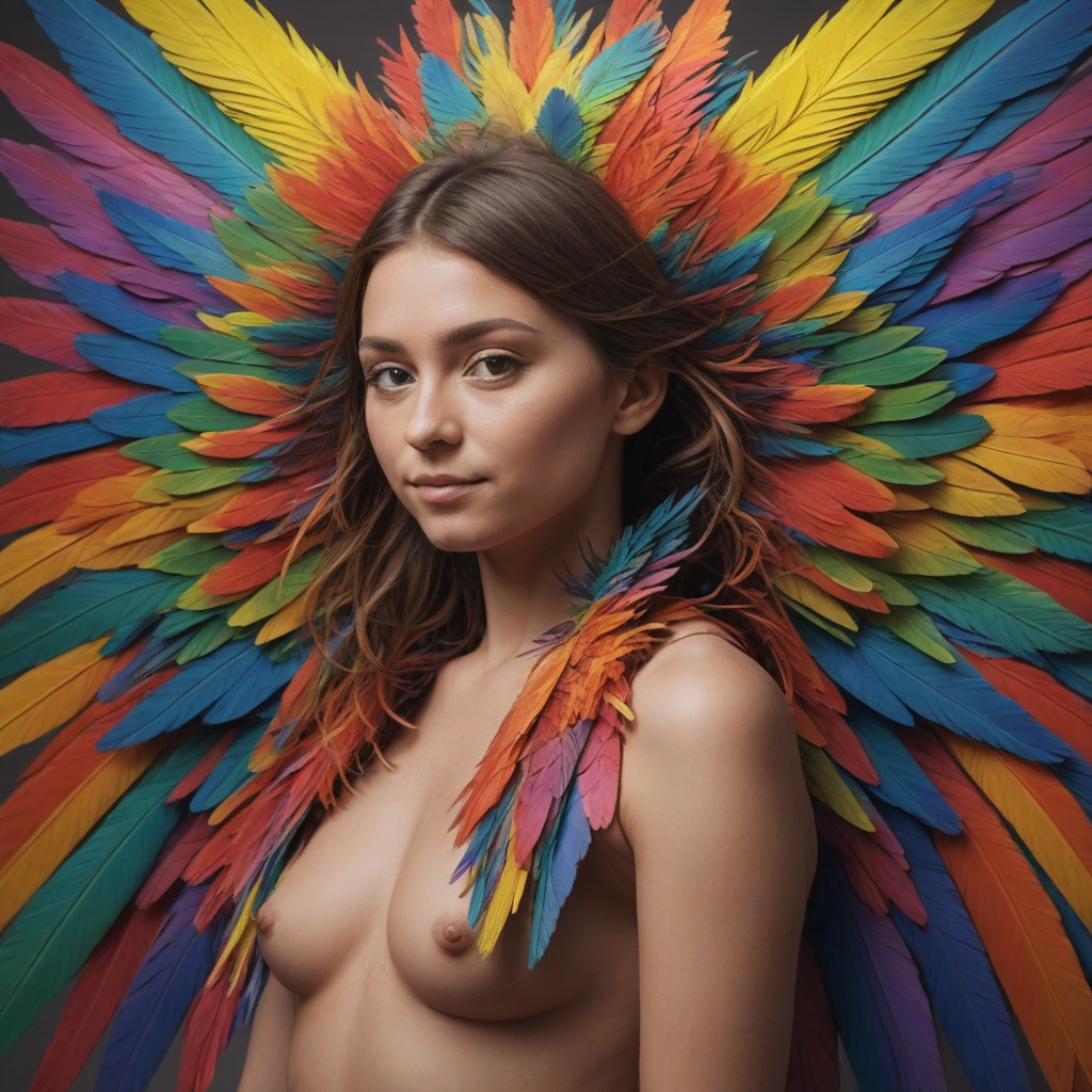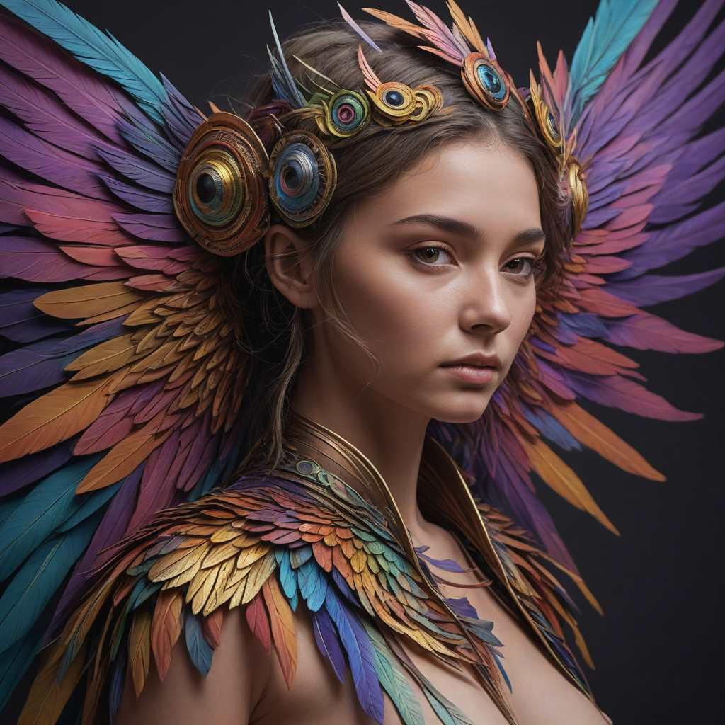 Rainbow-colored feathered wings
