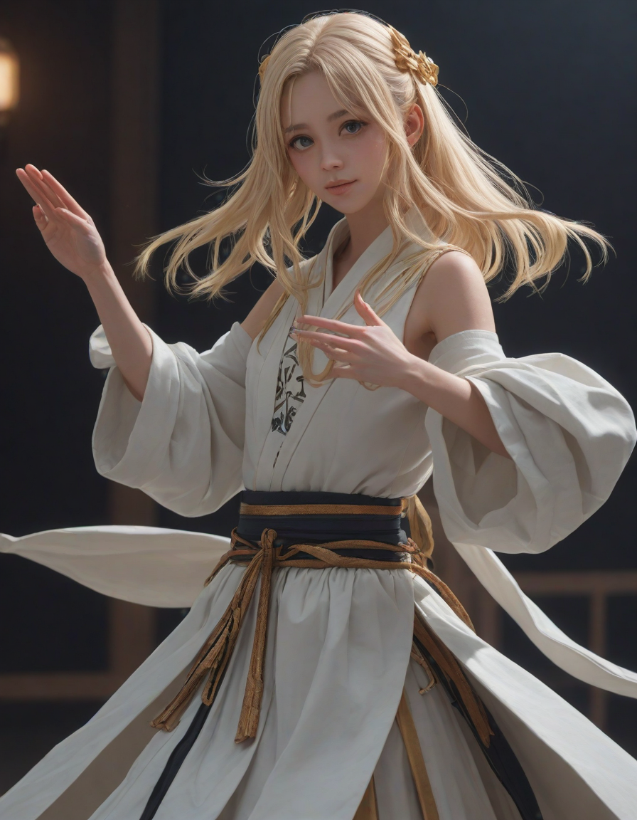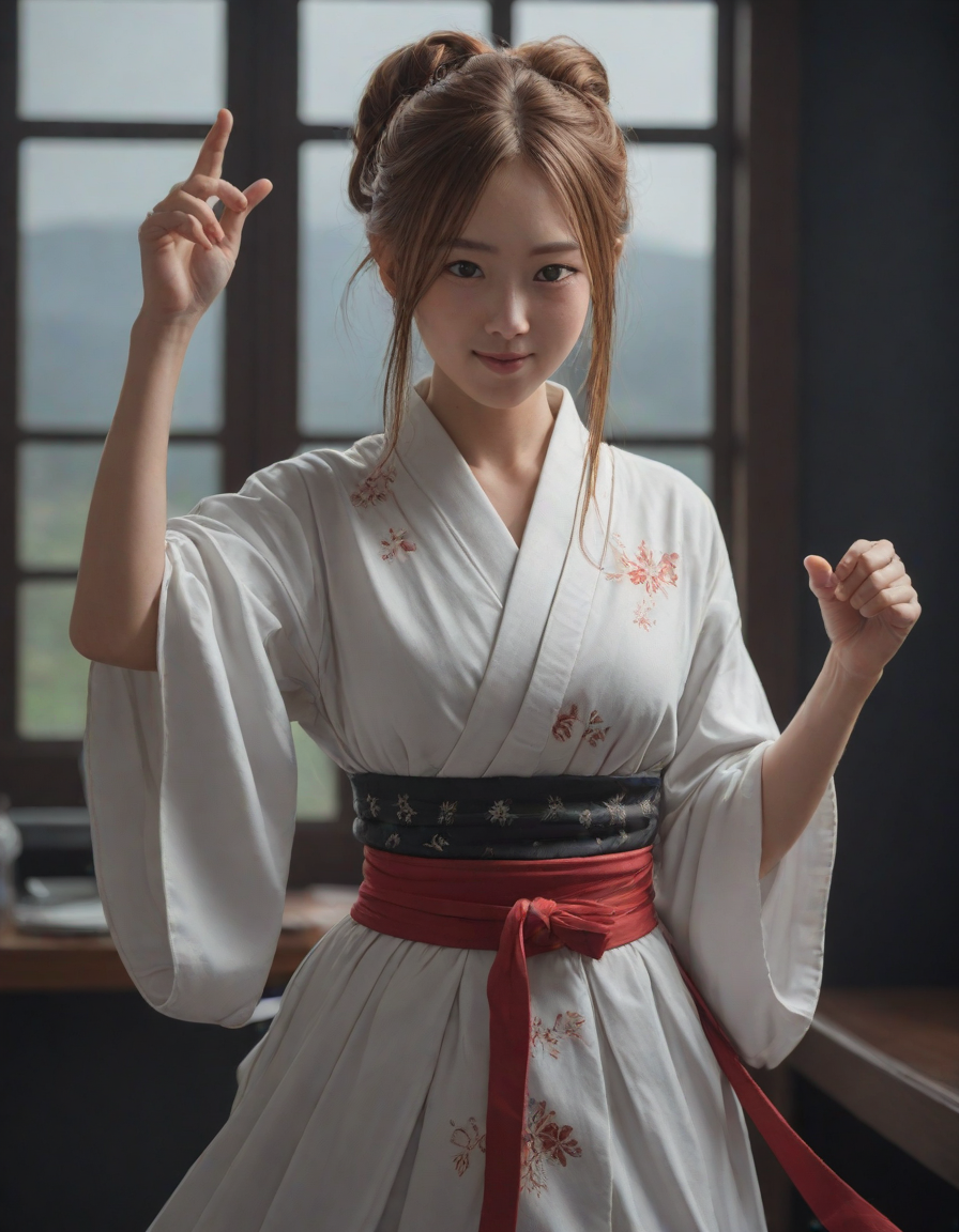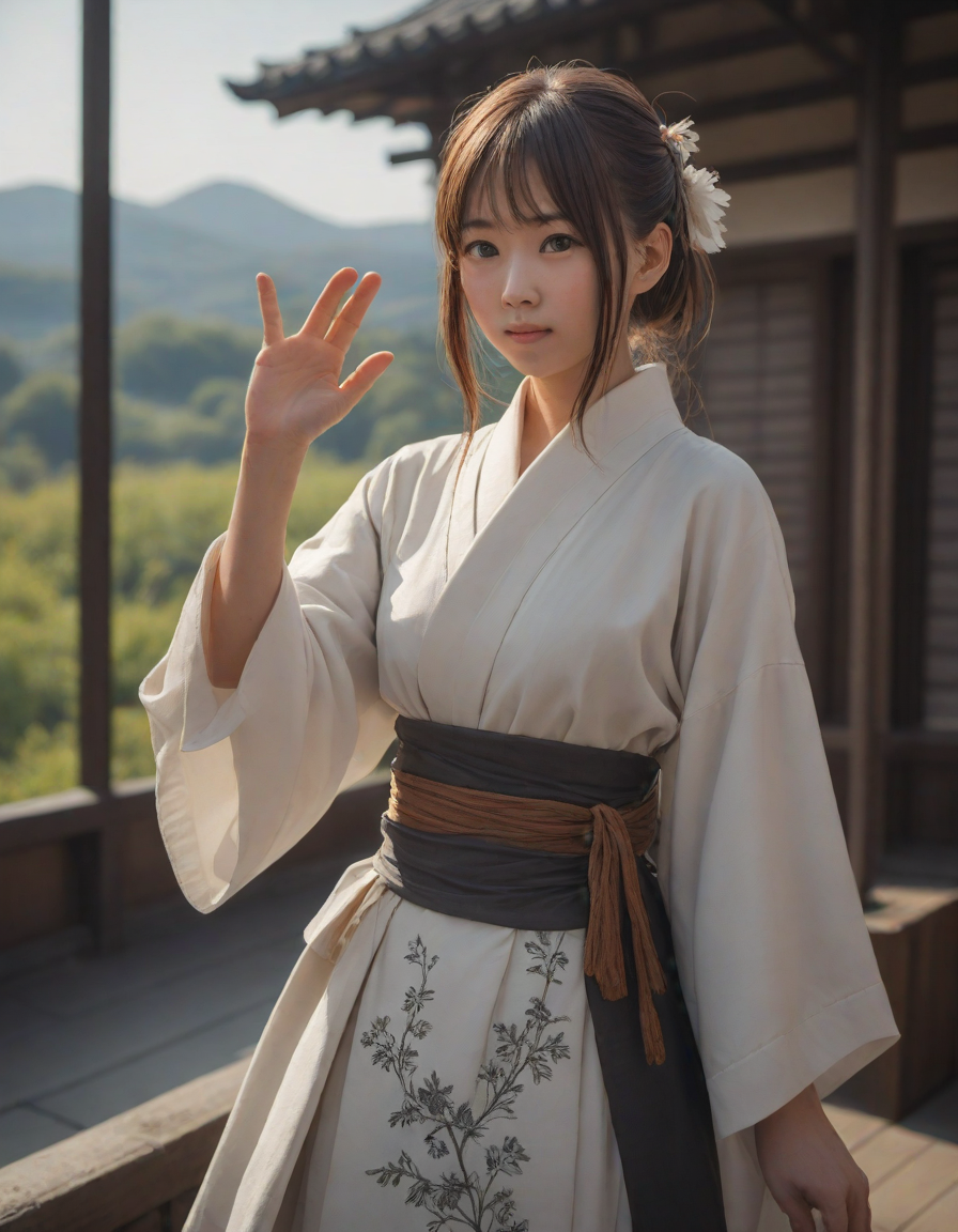 Girl in dress waving her hand ... (5 loras merged)