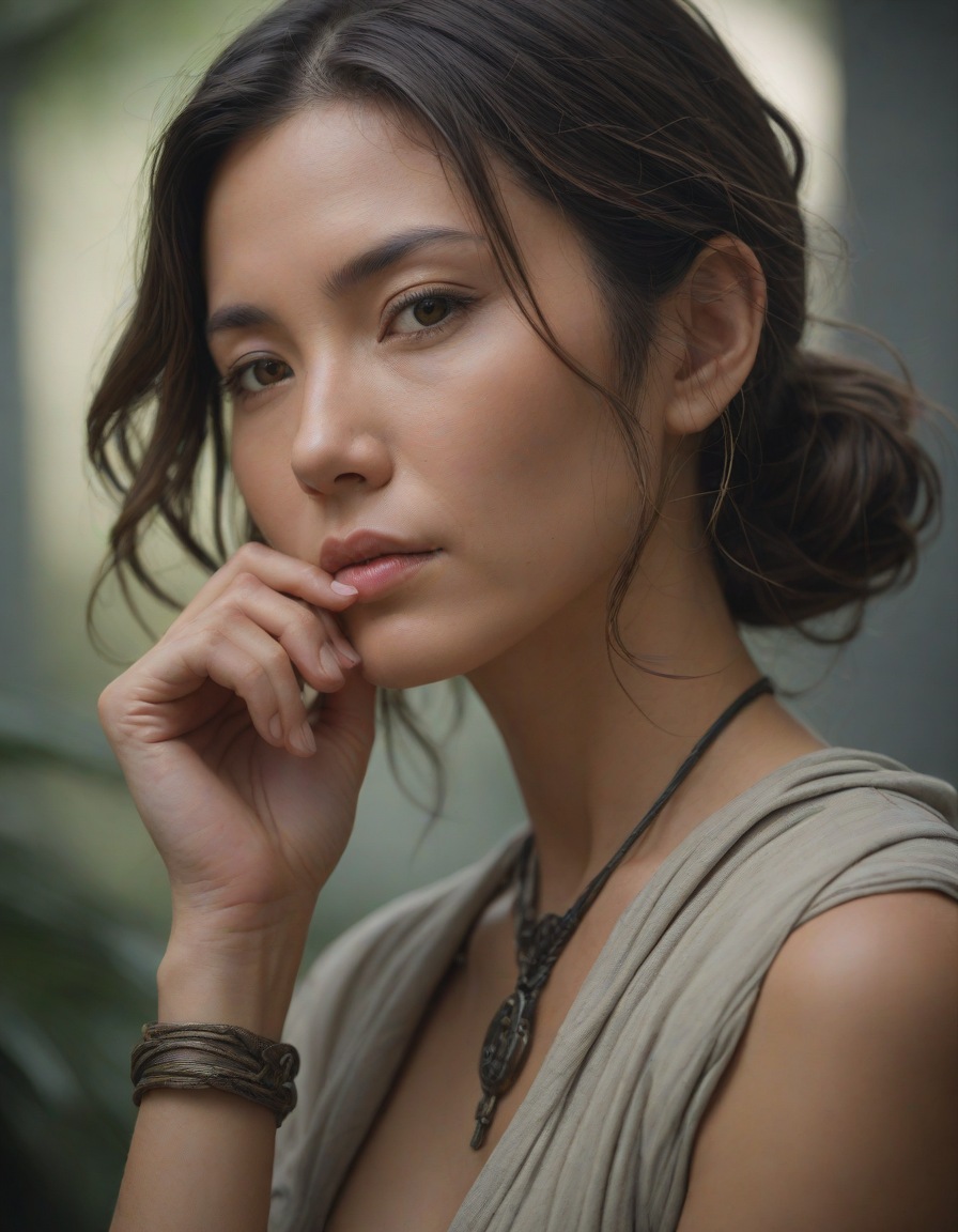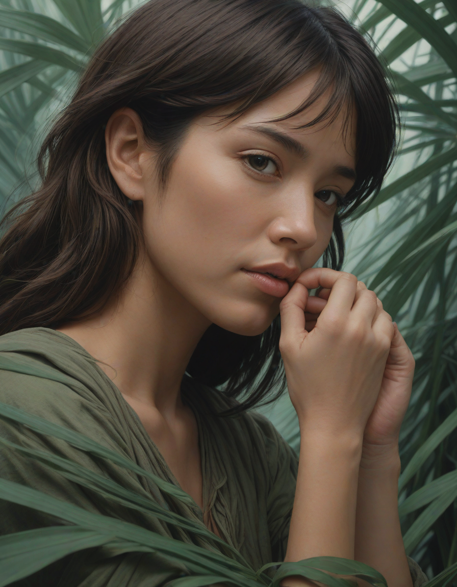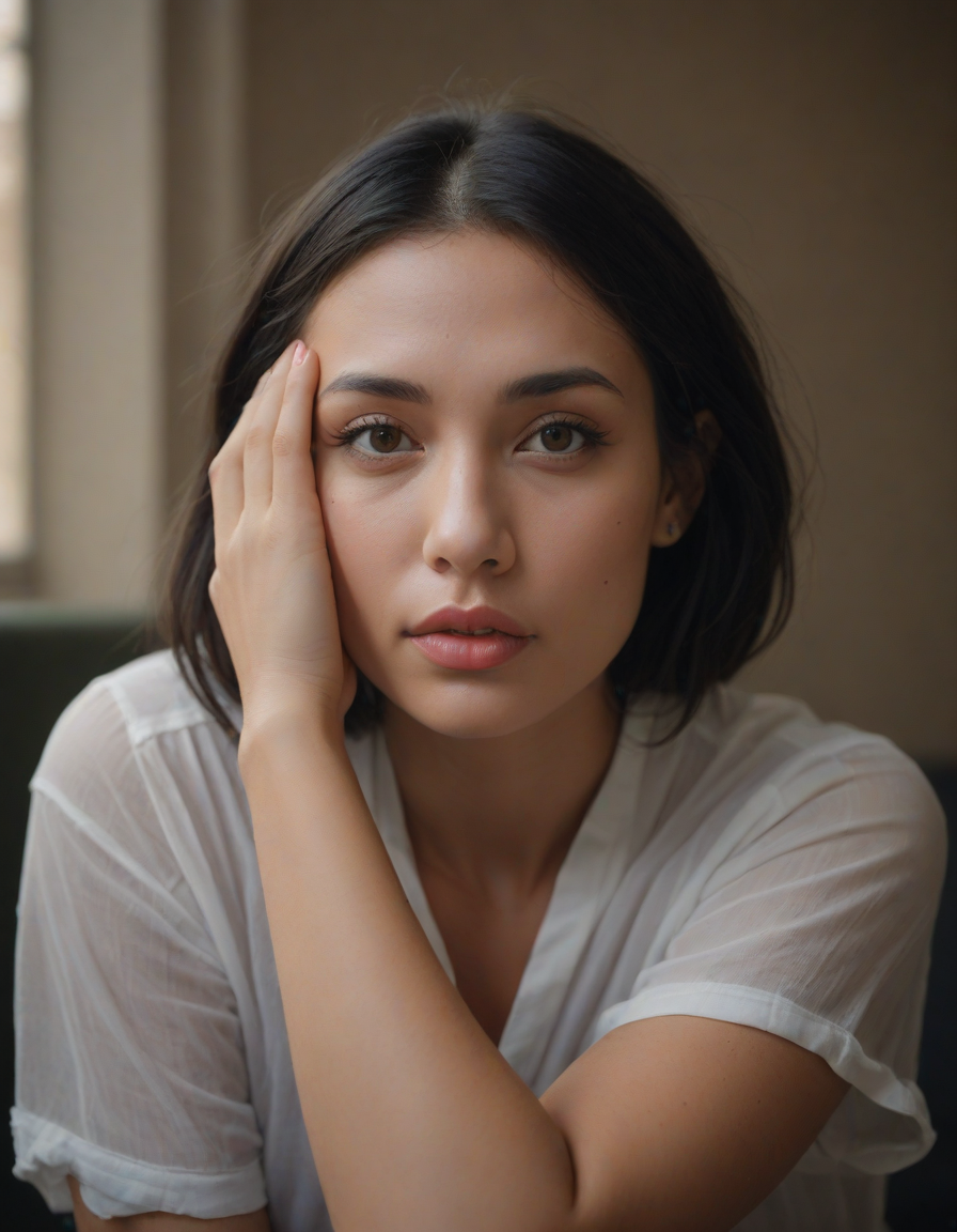 Chin resting on palm