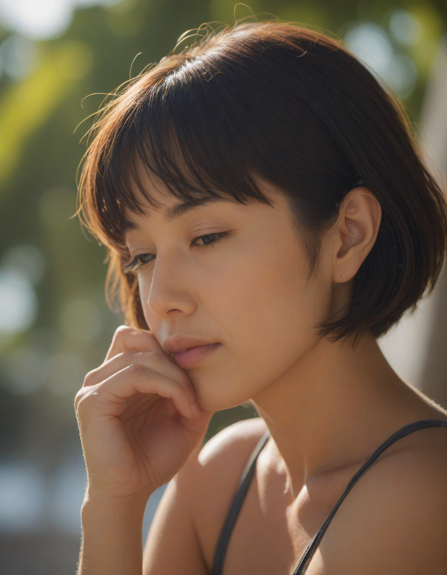 Chin resting on palm, hoodie, ... (3 loras merged)