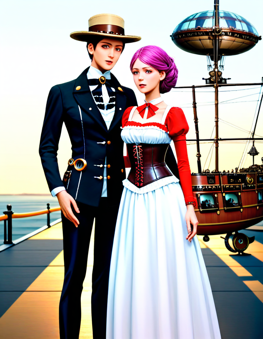 Attributes: 1girl, 1boy, 2girls, cartoon, photo, anime