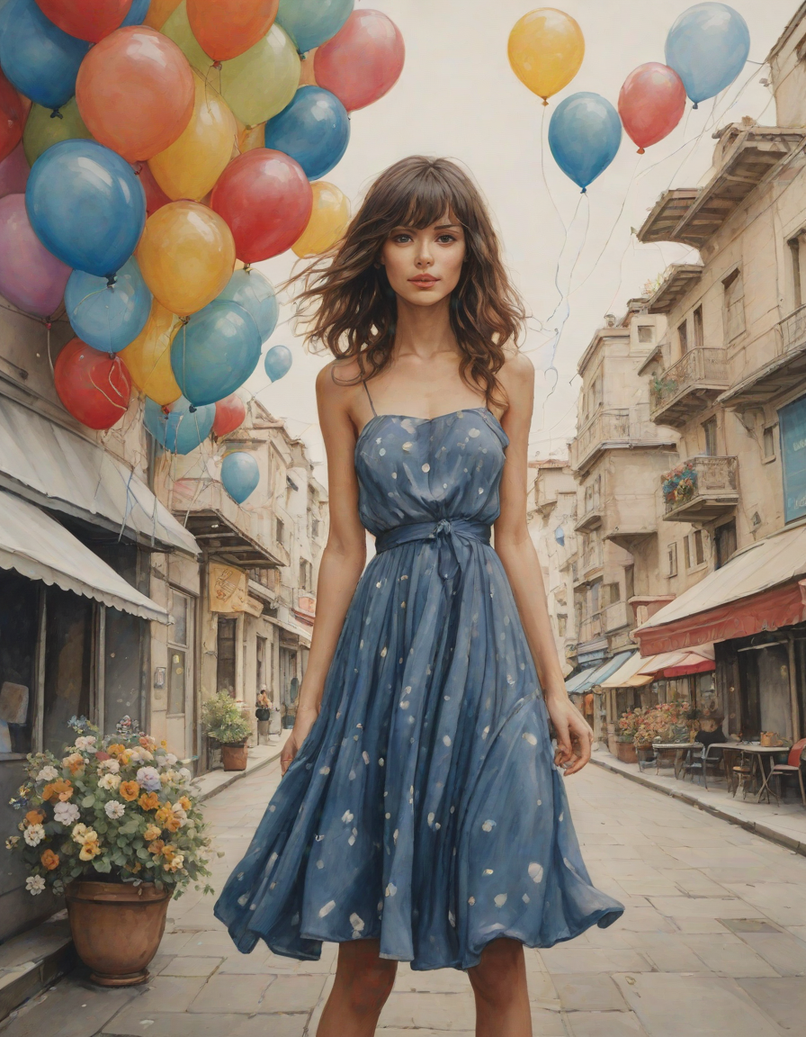 Girl in dress waving her hand ... (7 loras merged)