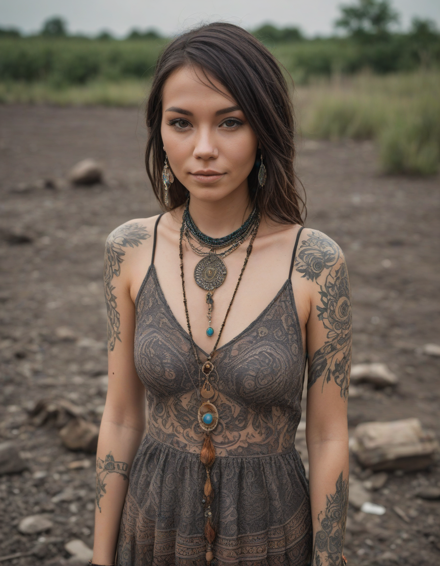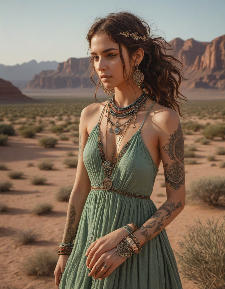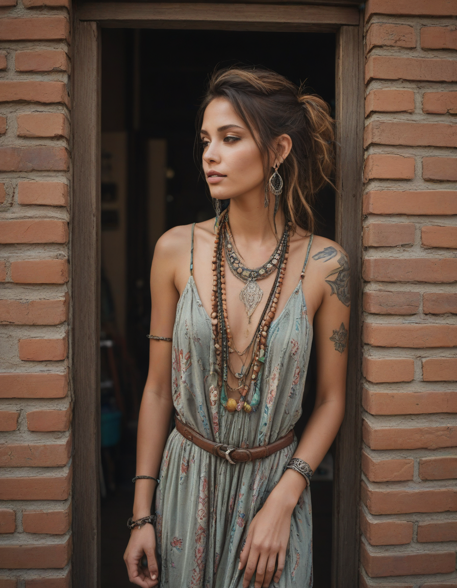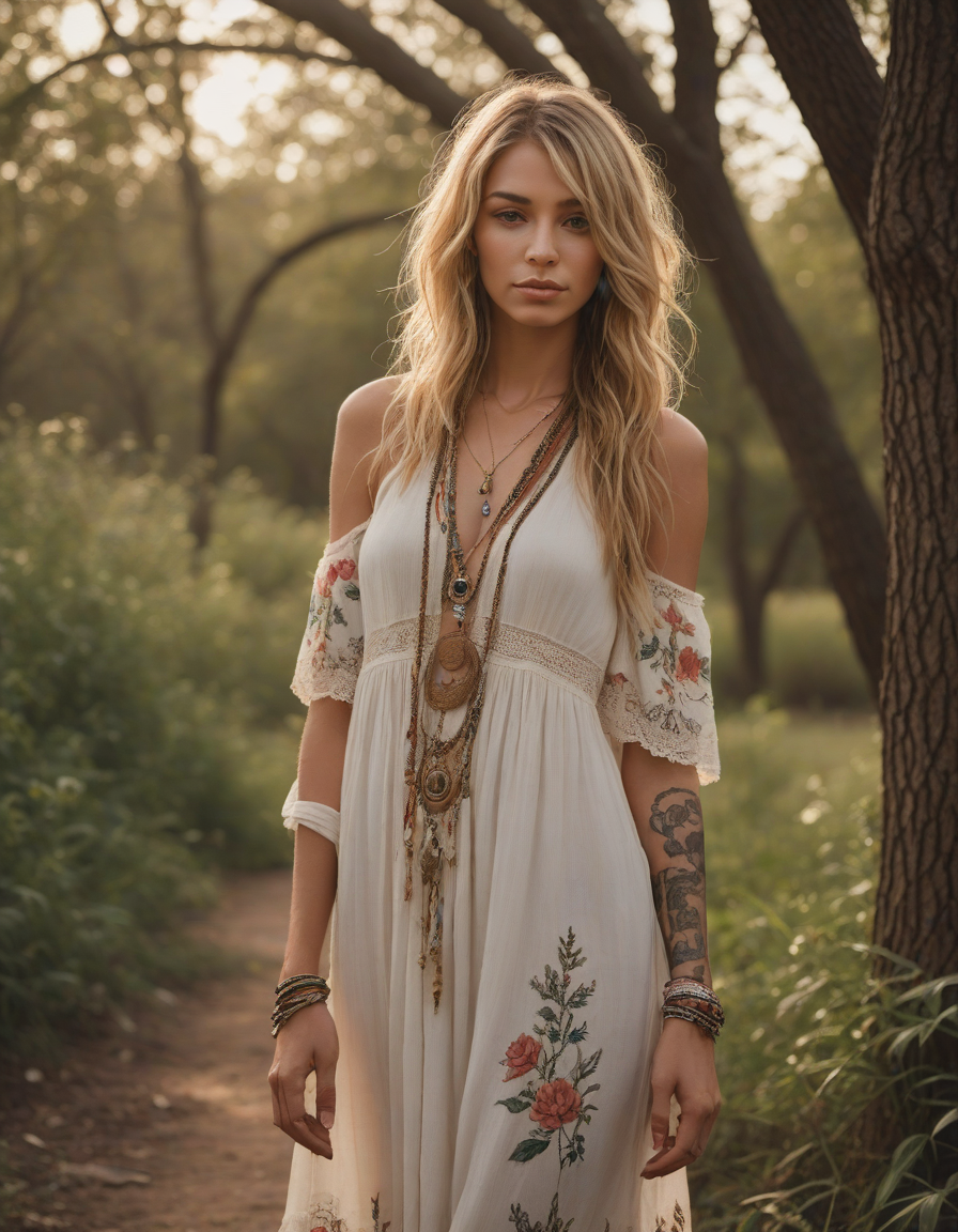 bohemian, "free spirit", jewelry, tattoo, spring dress