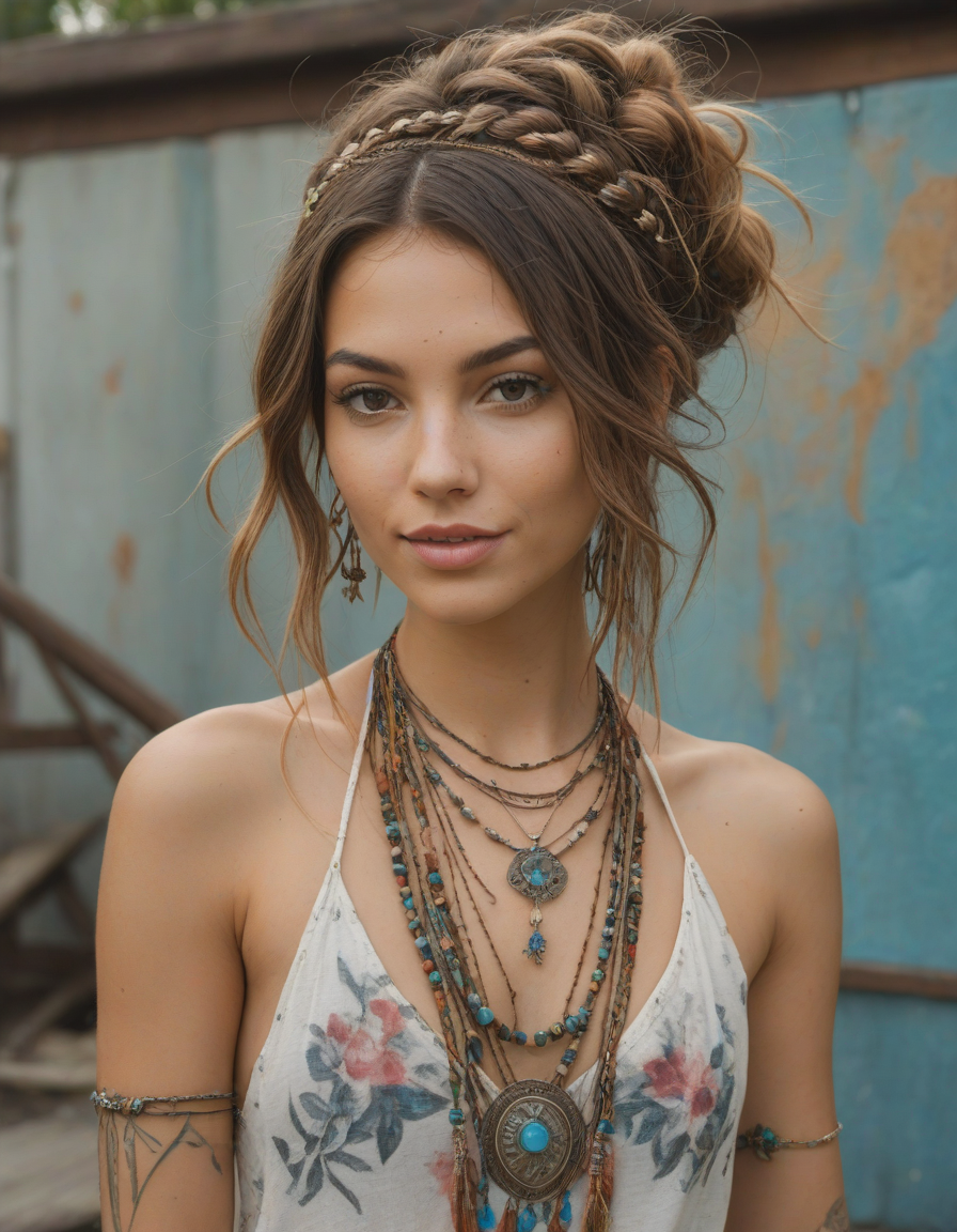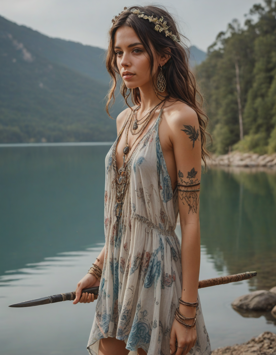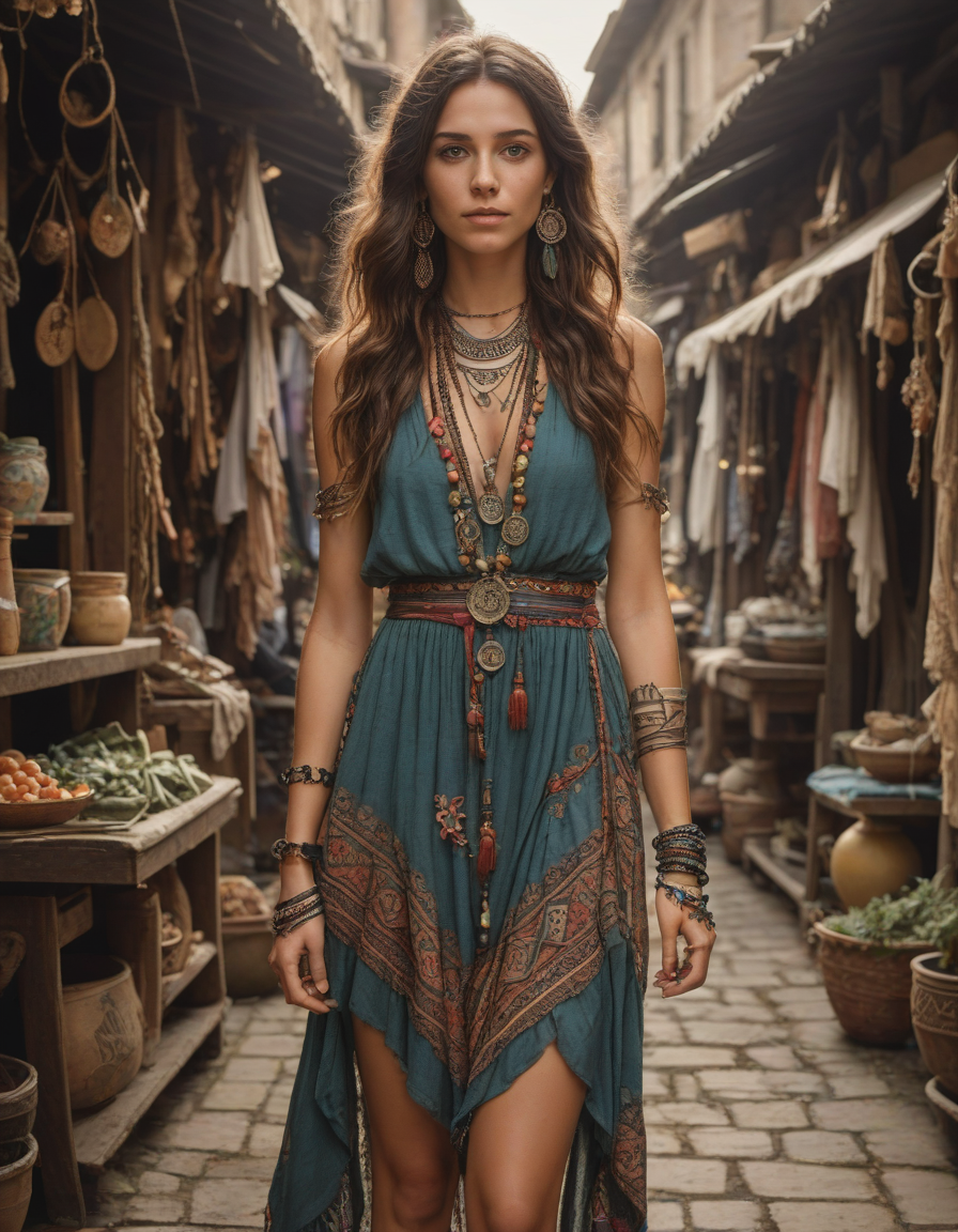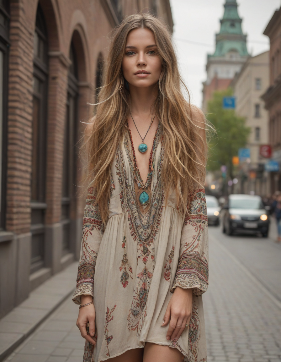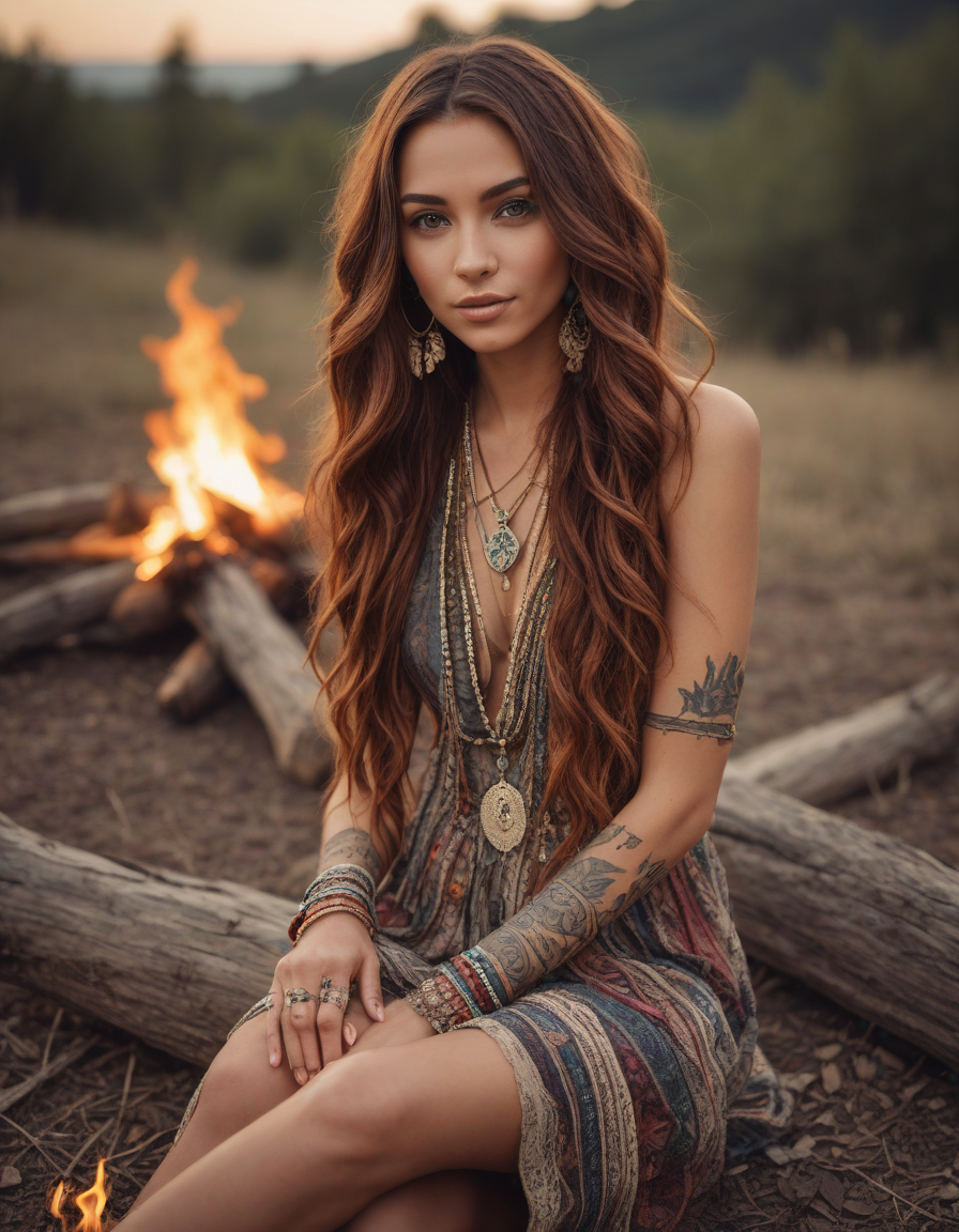 bohemian, "free spirit", jewelry, tattoo, spring dress
