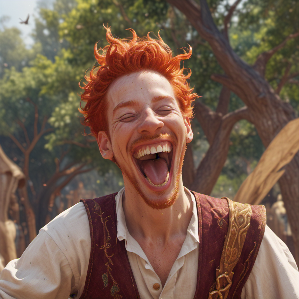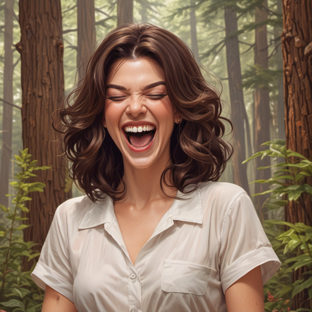 euphoric laughter, eyes crinkled shut, mouth wide open