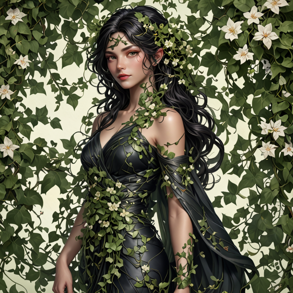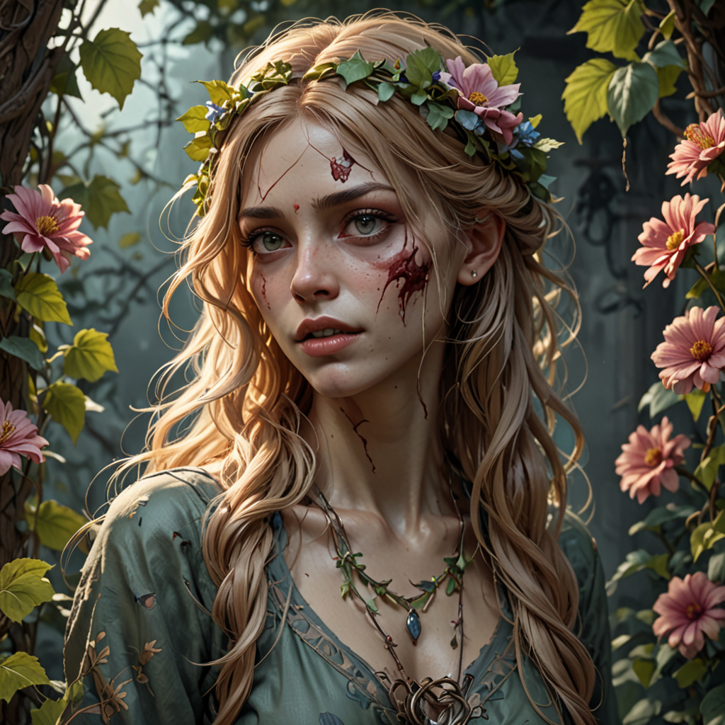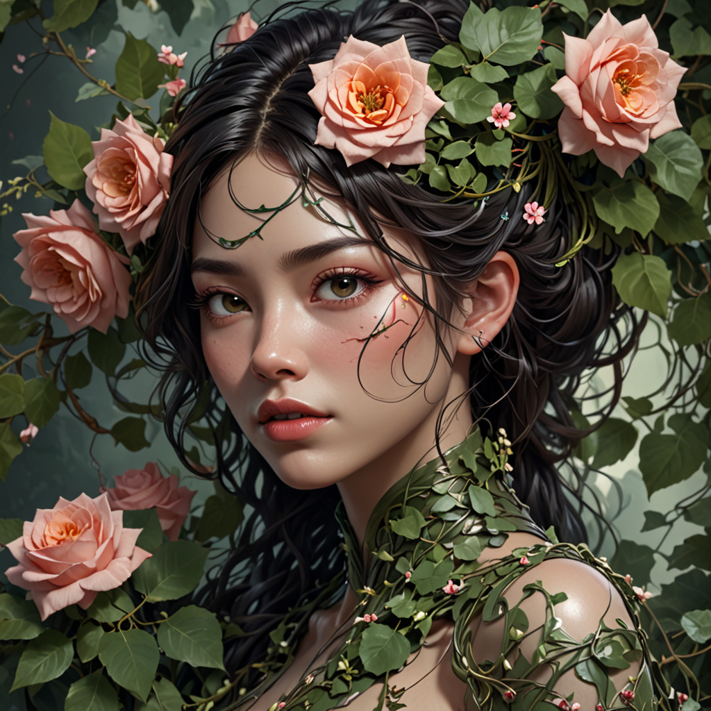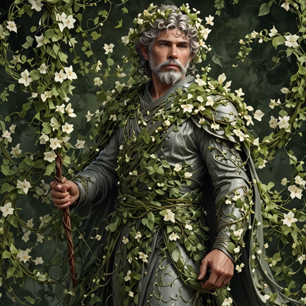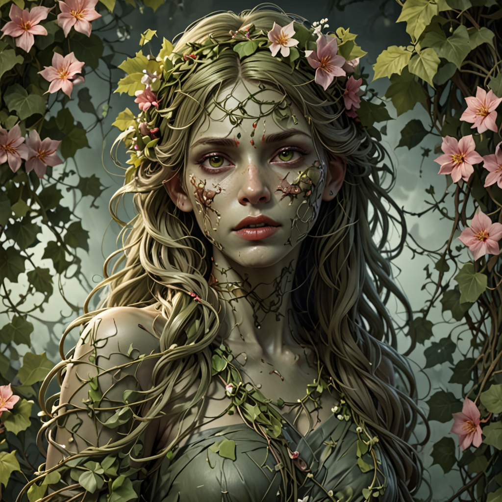 No plants, bare surroundings→Wrapped in flowering vines and foliage