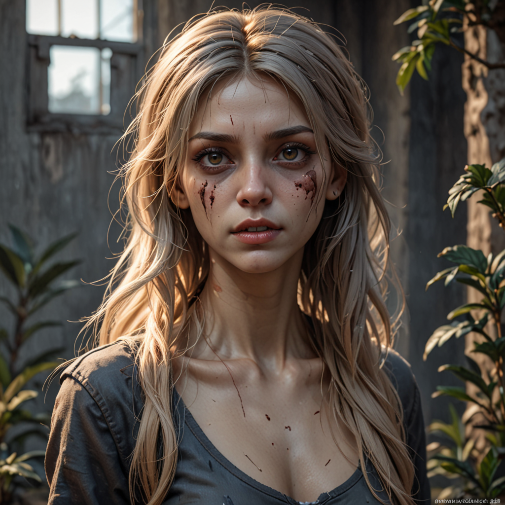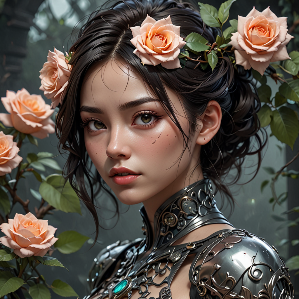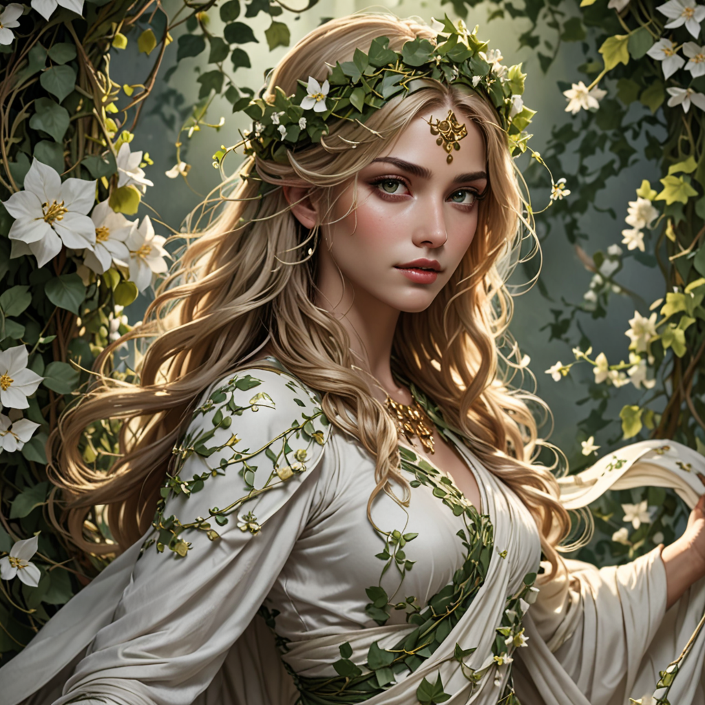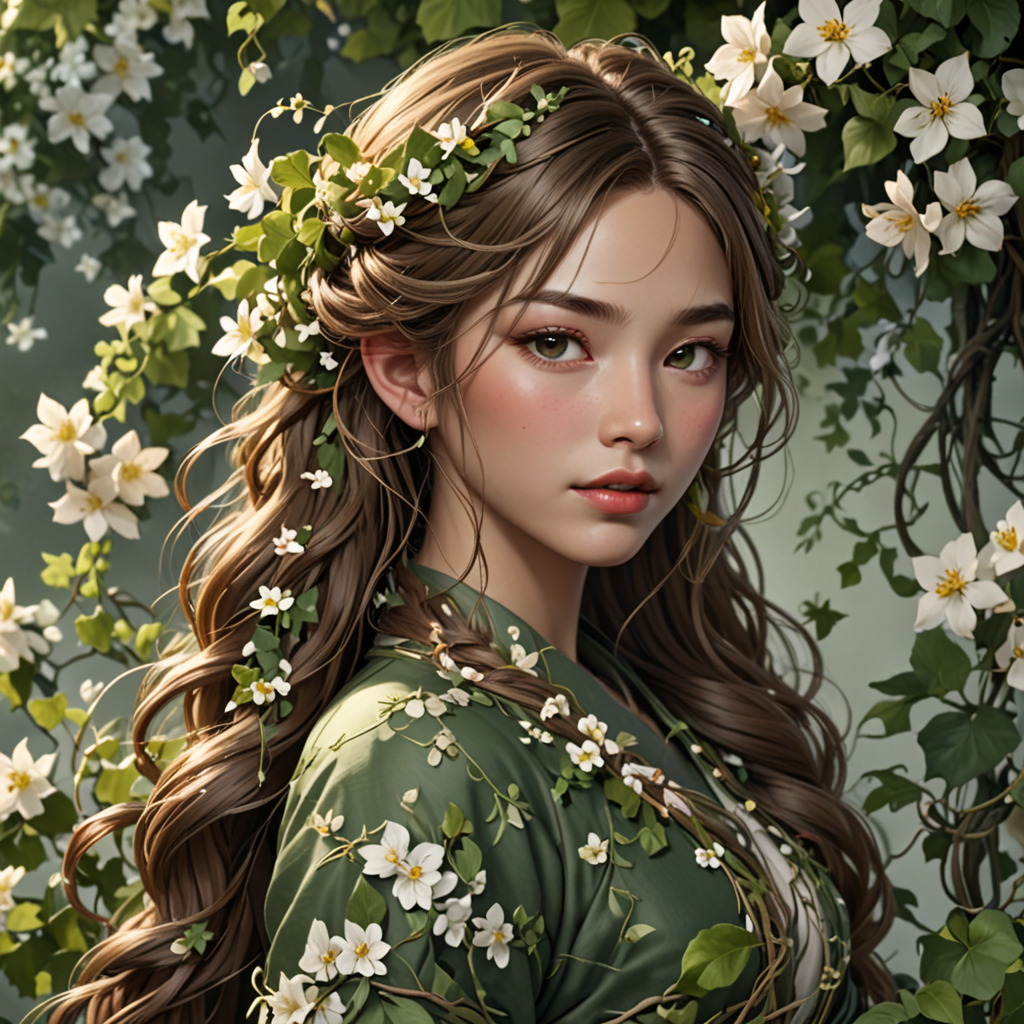 No plants, bare surroundings→Wrapped in flowering vines and foliage