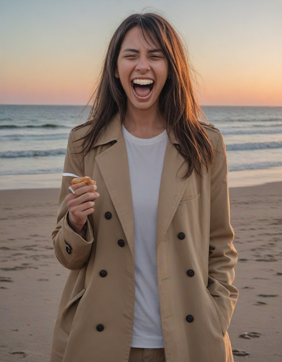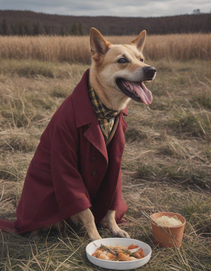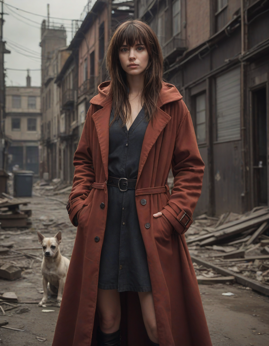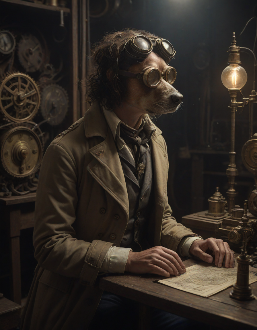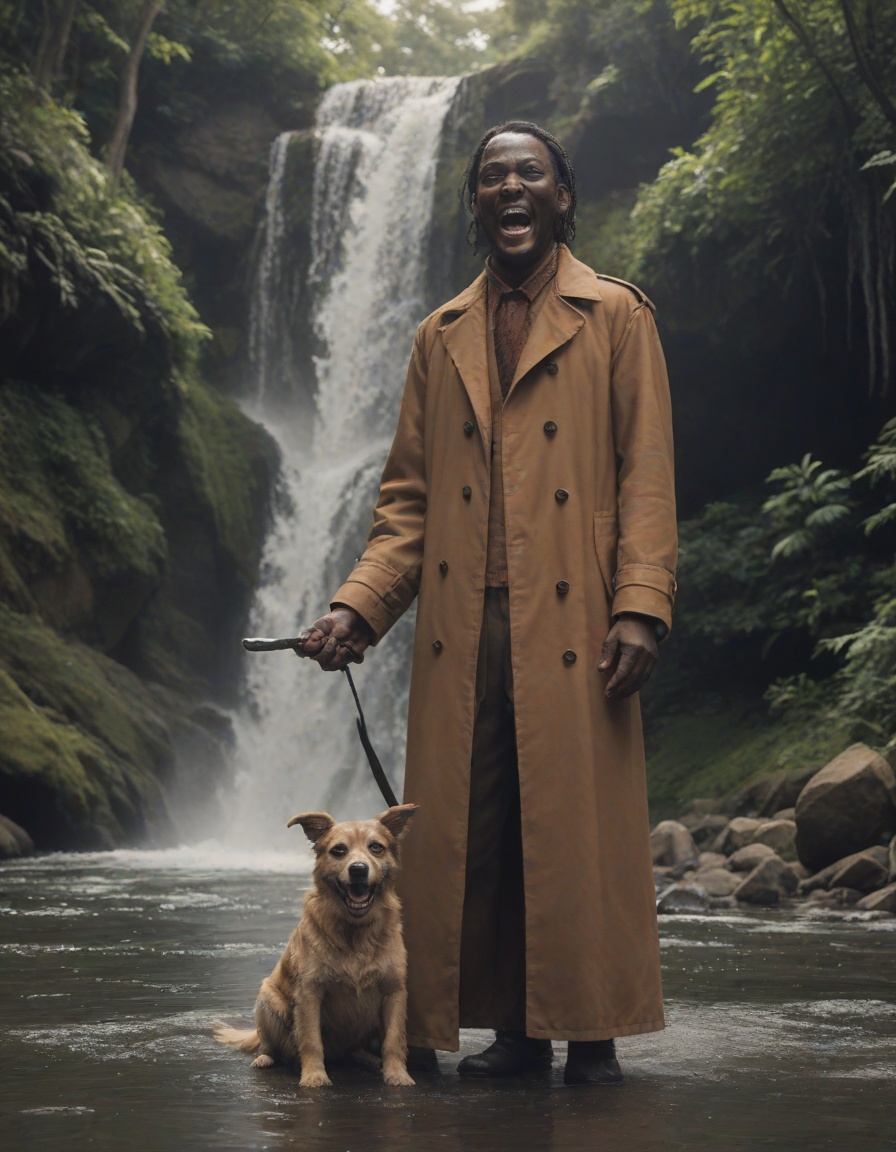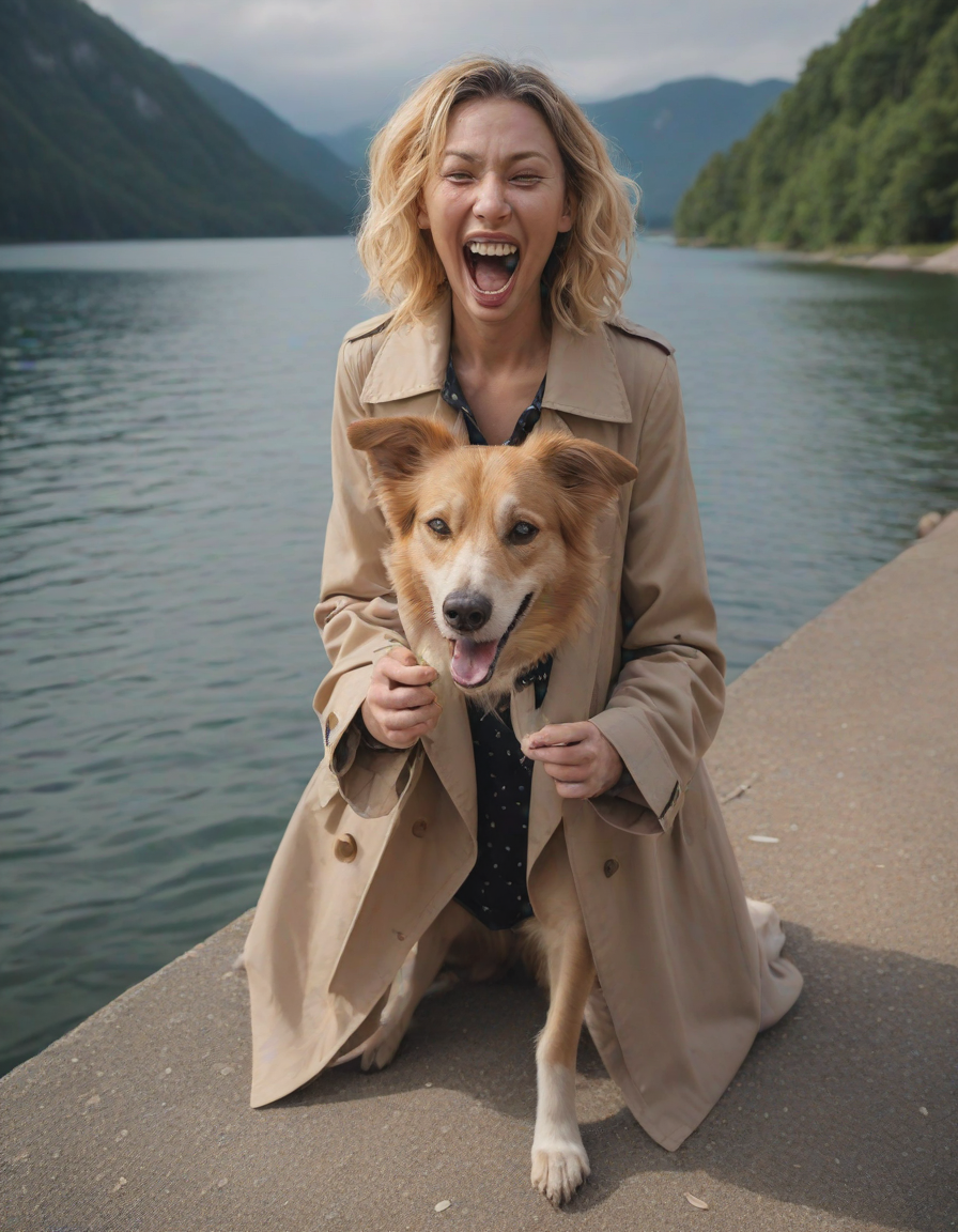 a person in a trenchcoat→actually a dog in a trenchcoat