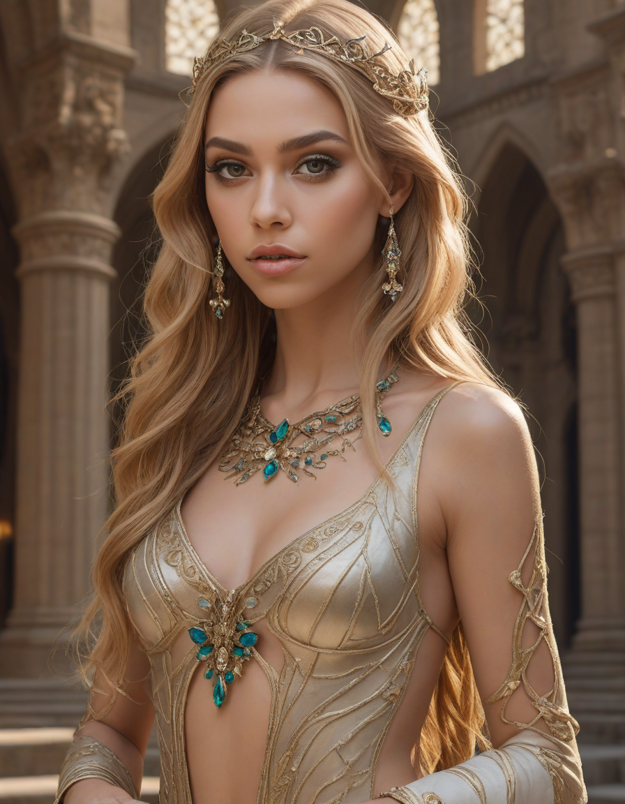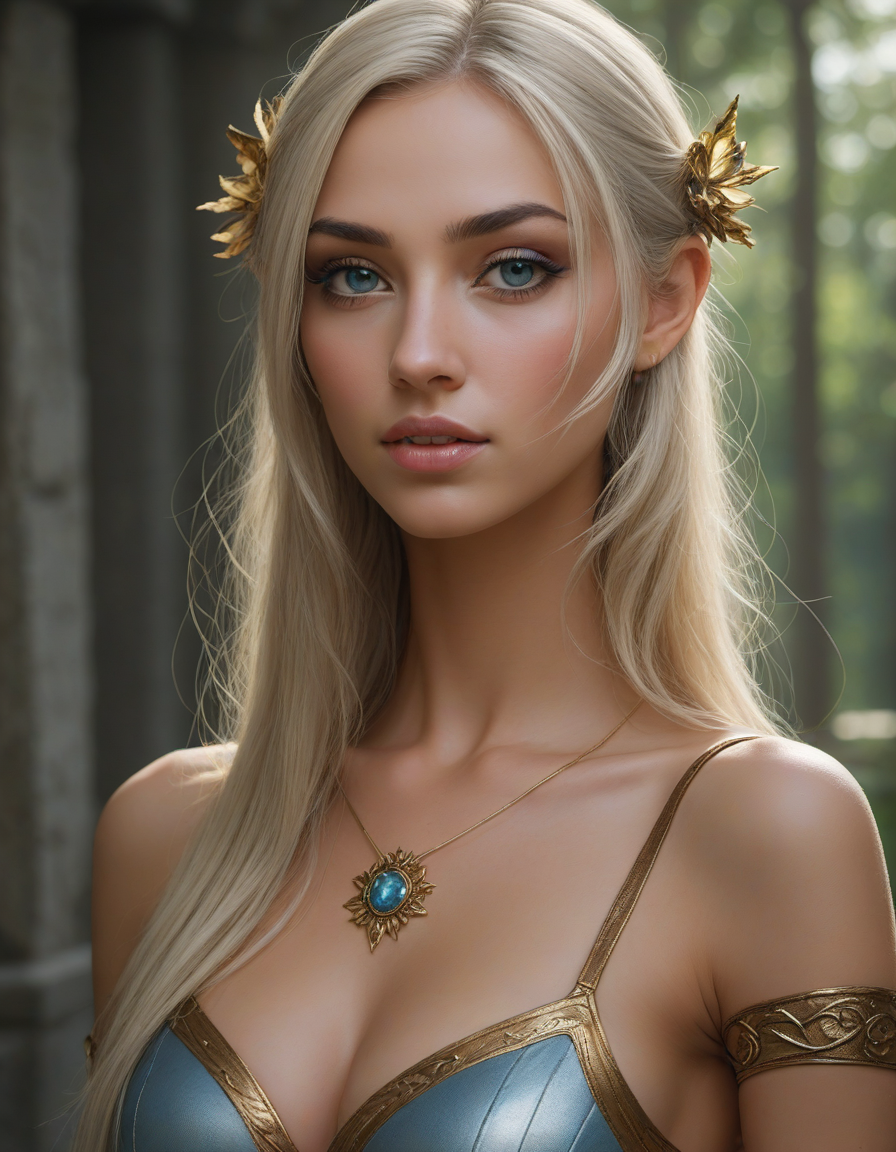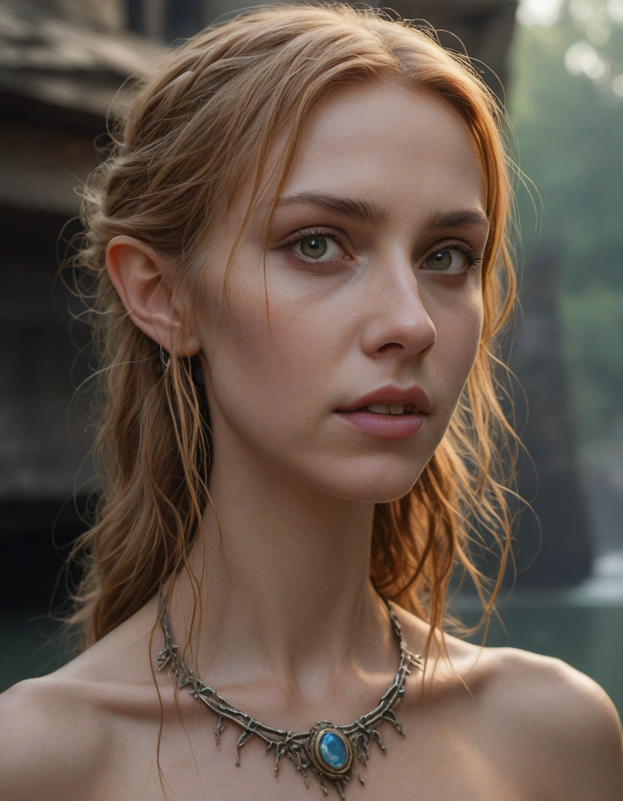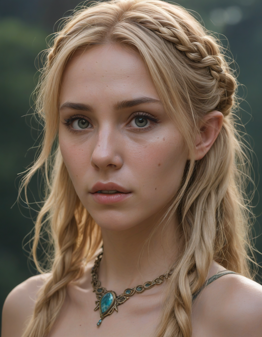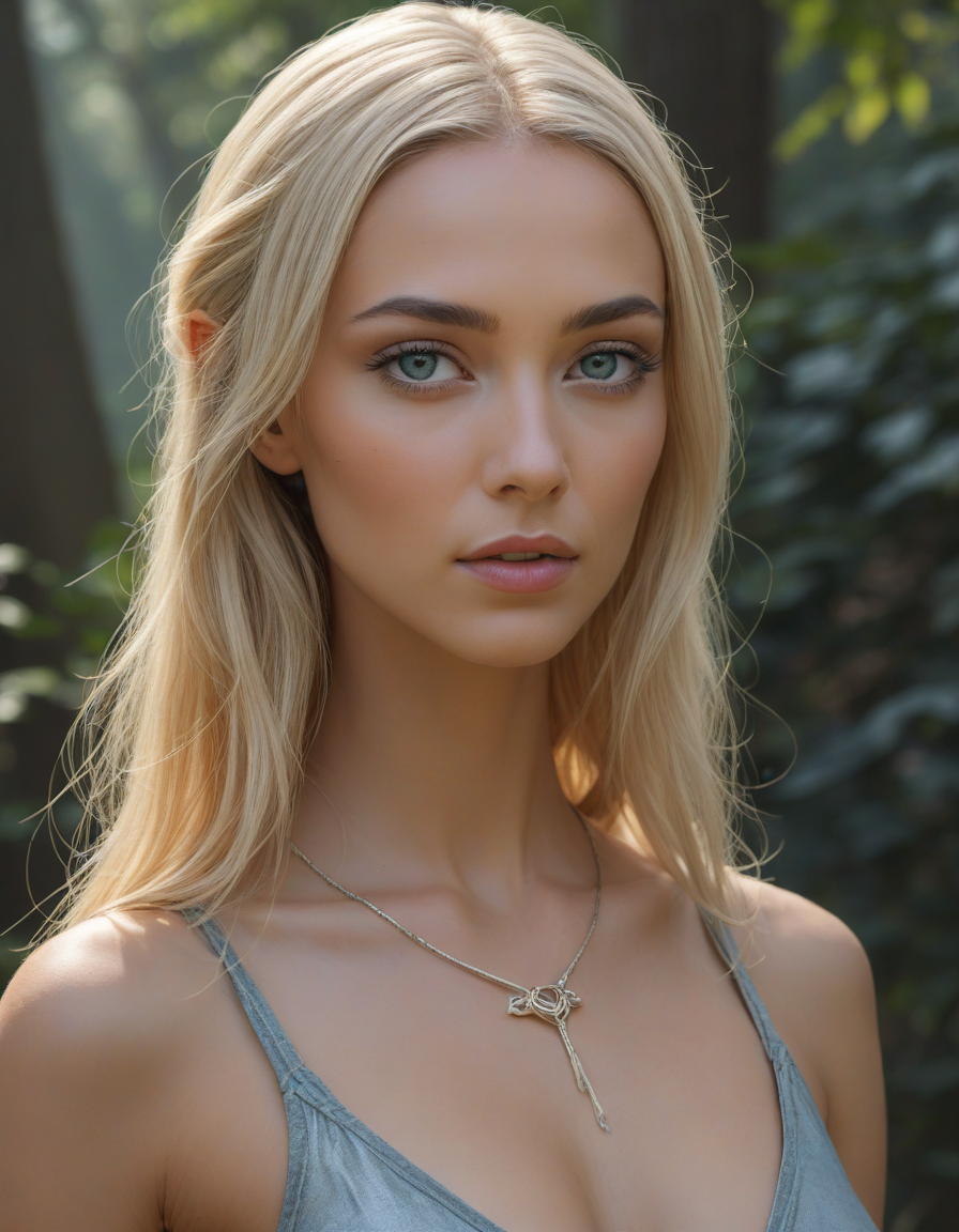 Neutral: female half-elf, partial Elven facial features, slight elven body, slightly almond-shaped eyes, high cheekbones, slightly pointed ears, ethereal beauty, textured smooth skin, slightly exotic, delicate features, tall, bright eye color,