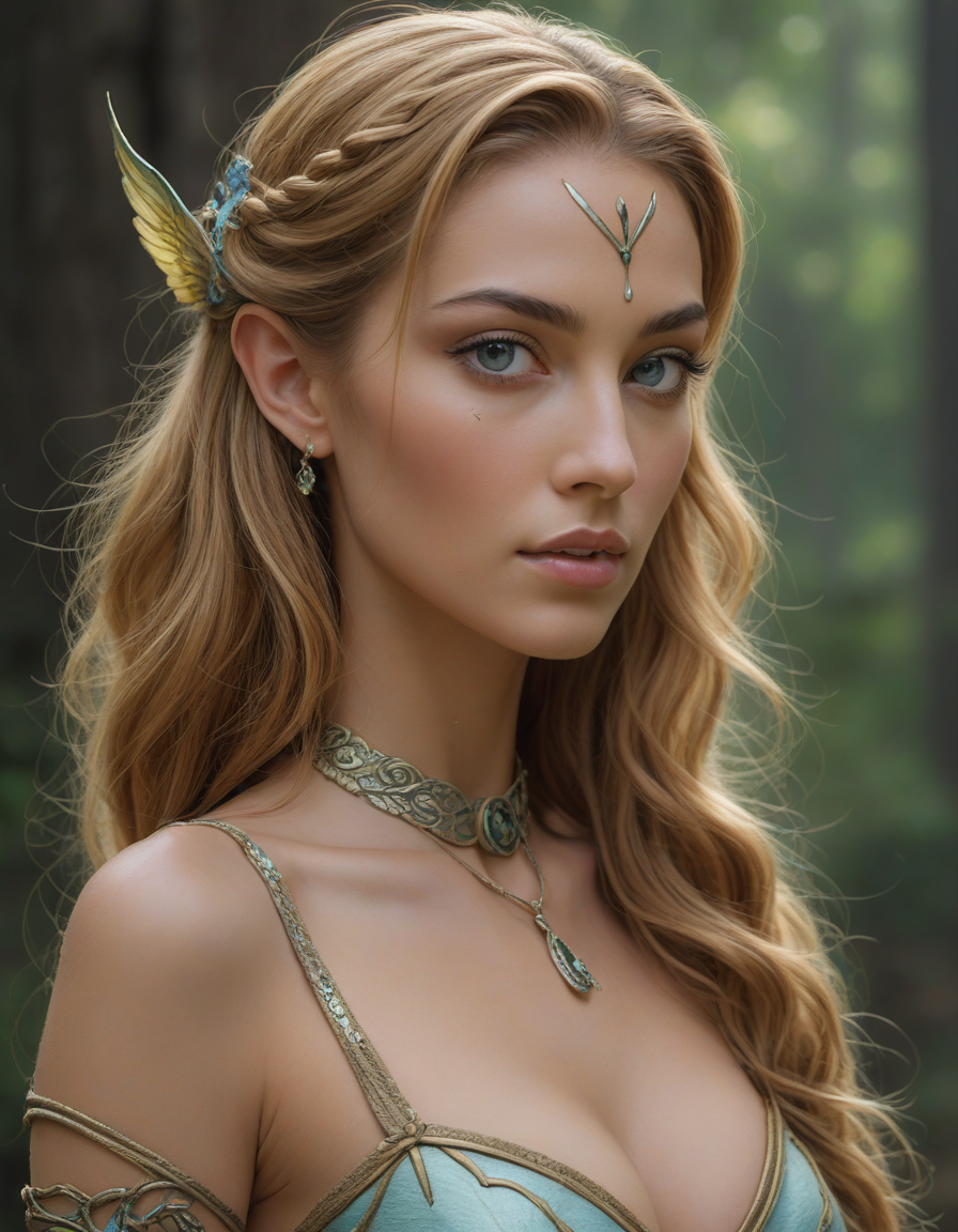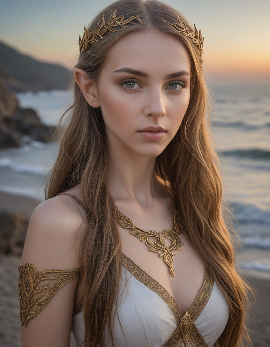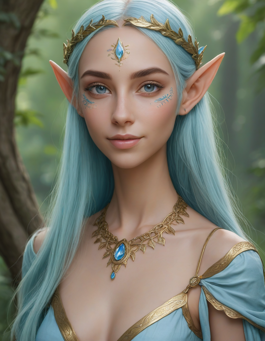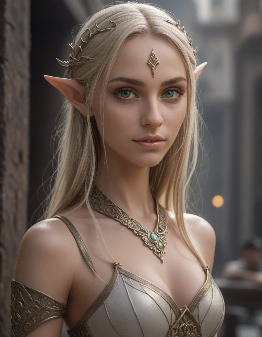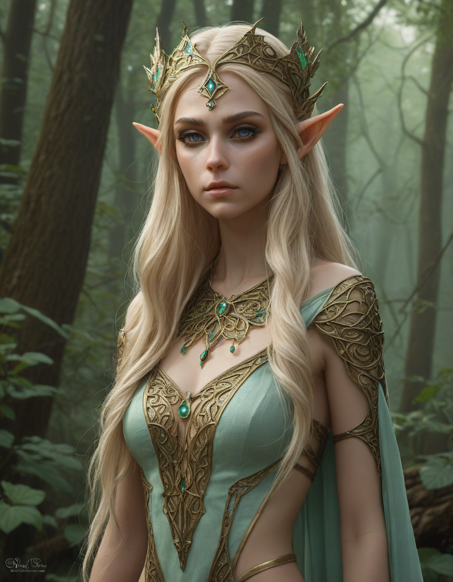 Target: female elf, Elven facial features, elven body, elven, lithe, distinct elven features, long elven legs, Slender, elongated physique, almond-shaped eyes, sharp cheekbones, pointed ears, ethereal beauty, graceful, agile, lithe, smooth skin, exotic, otherworldly aura, delicate features, tall and lean, vibrant eye color