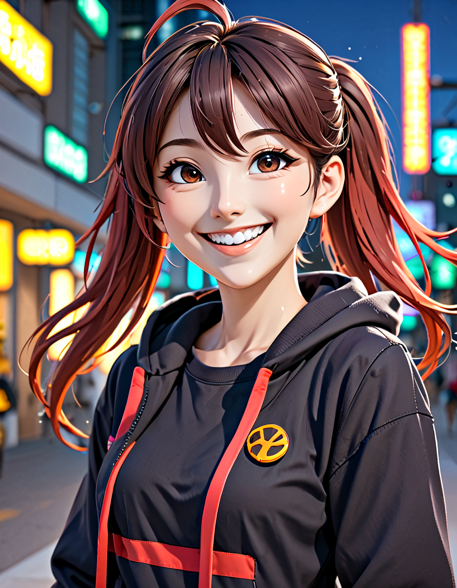 FaceYoung, smiling happily, sy... (7 doras merged)