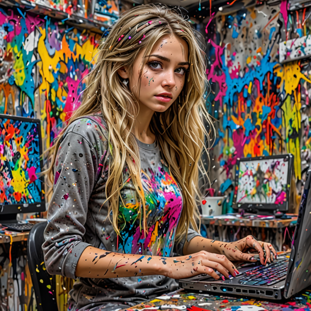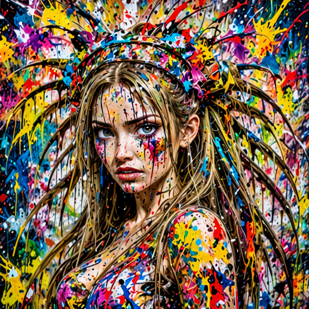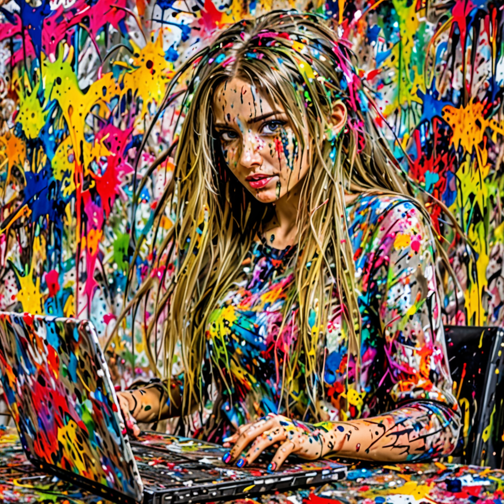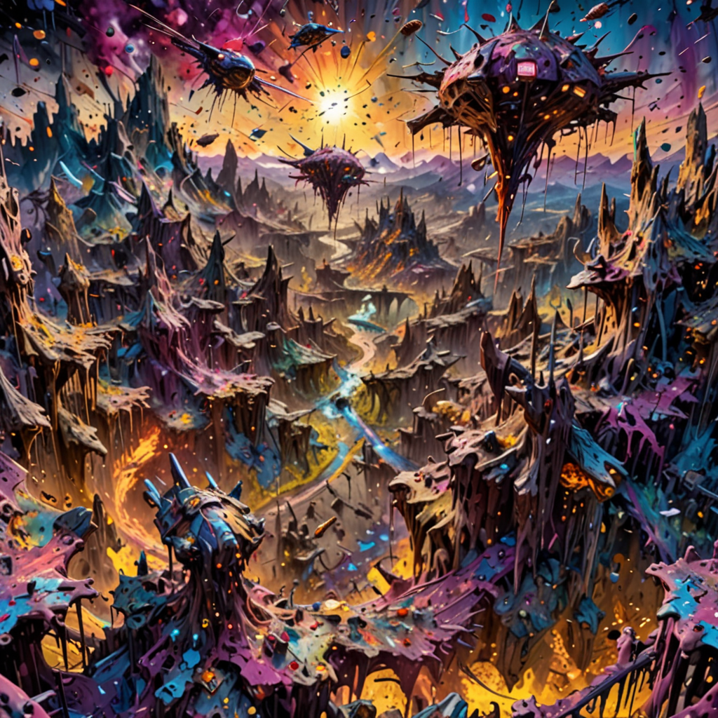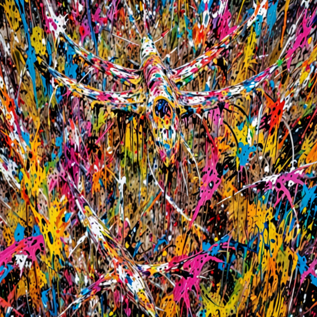 clean, minimalist geometric shapes → chaotic, abstract expressionist splatter