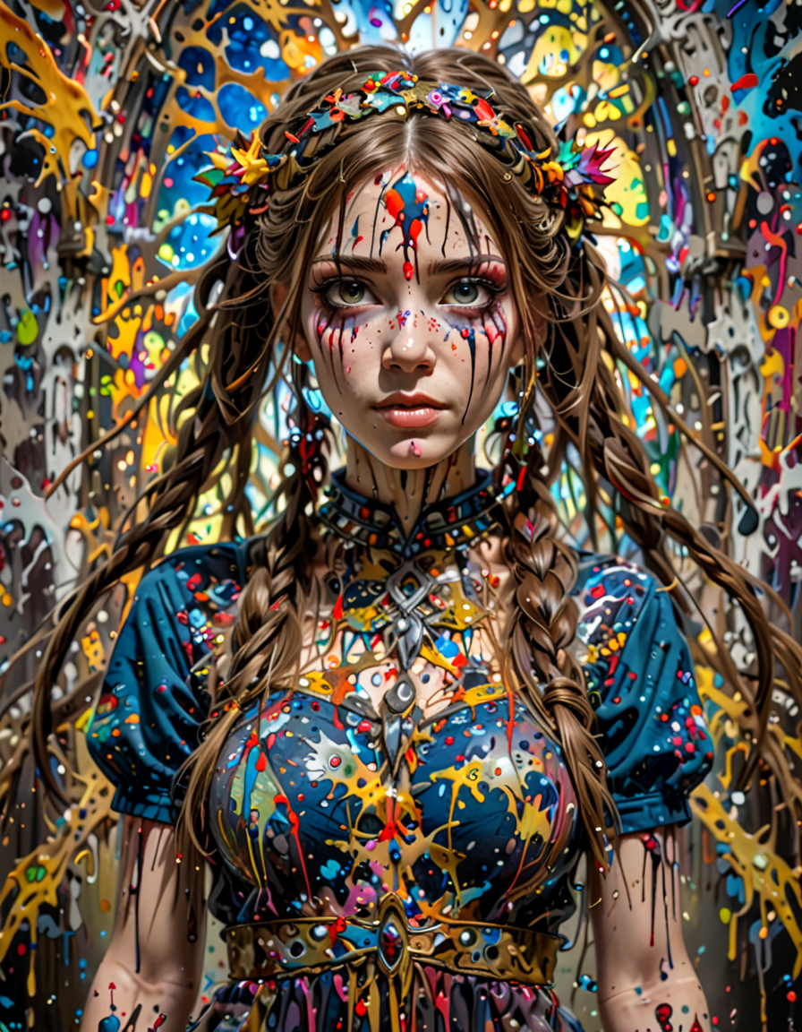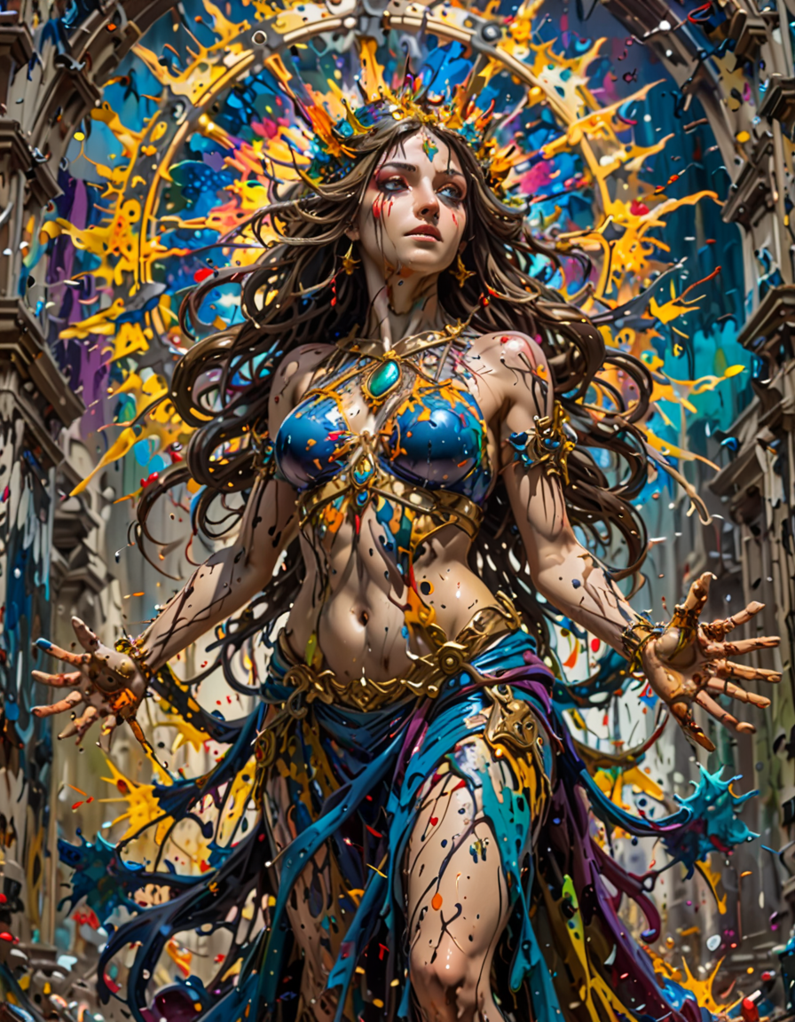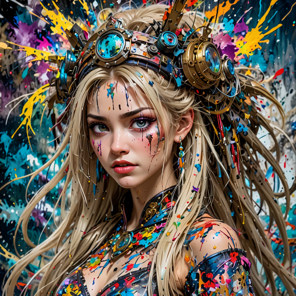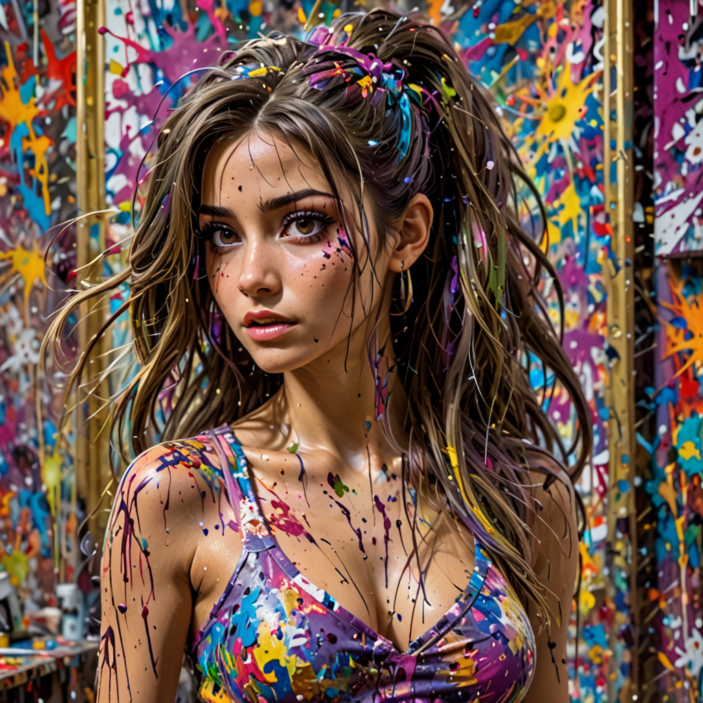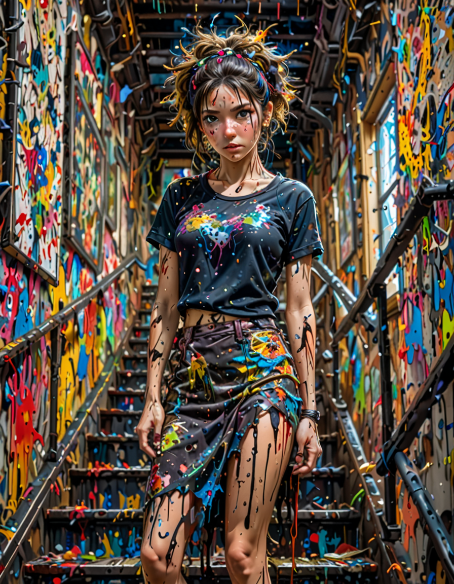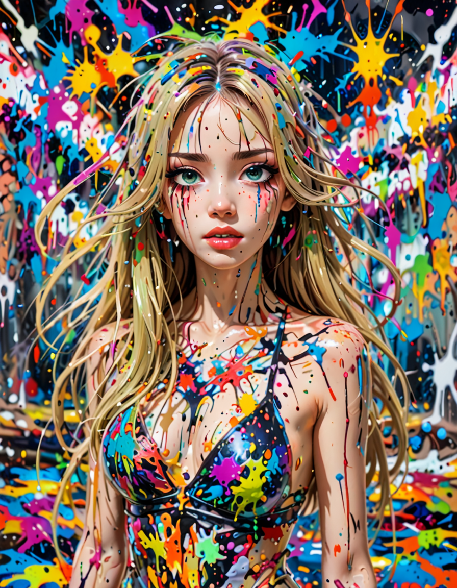 clean, minimalist geometric shapes → chaotic, abstract expressionist splatter