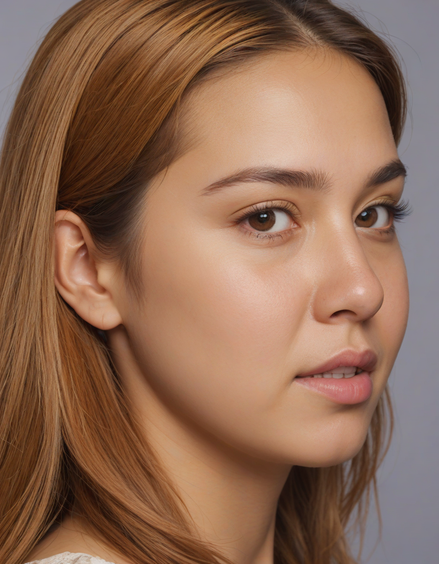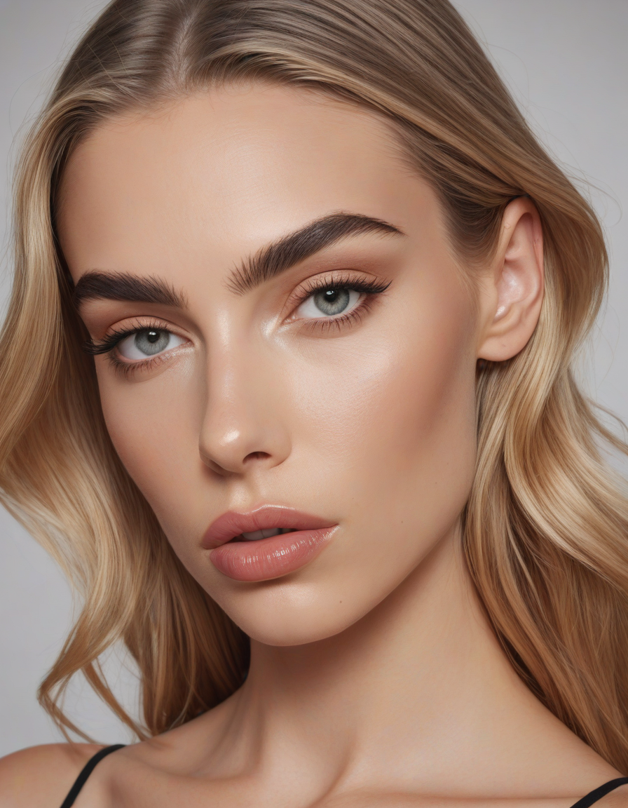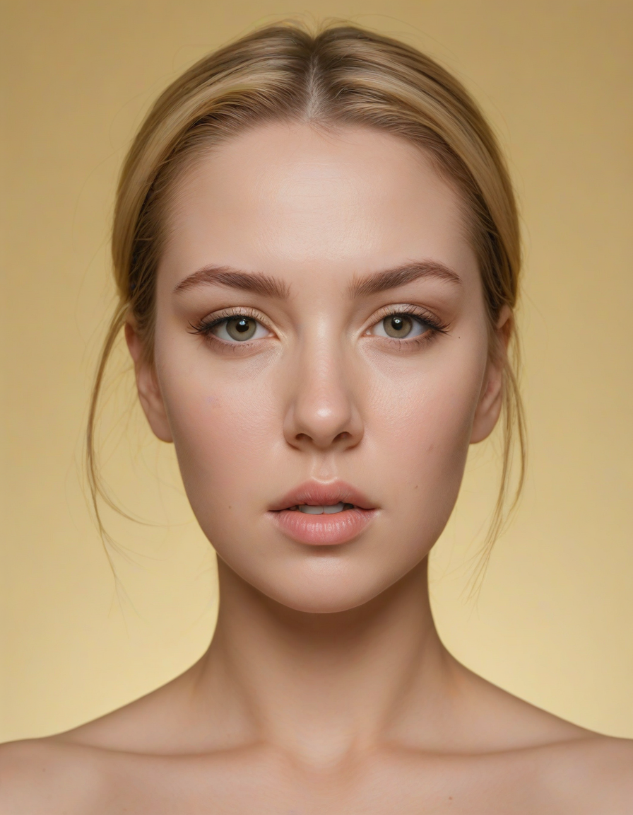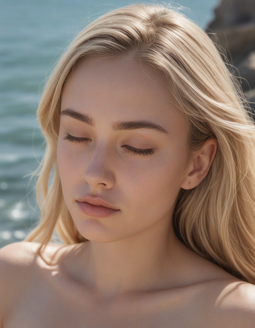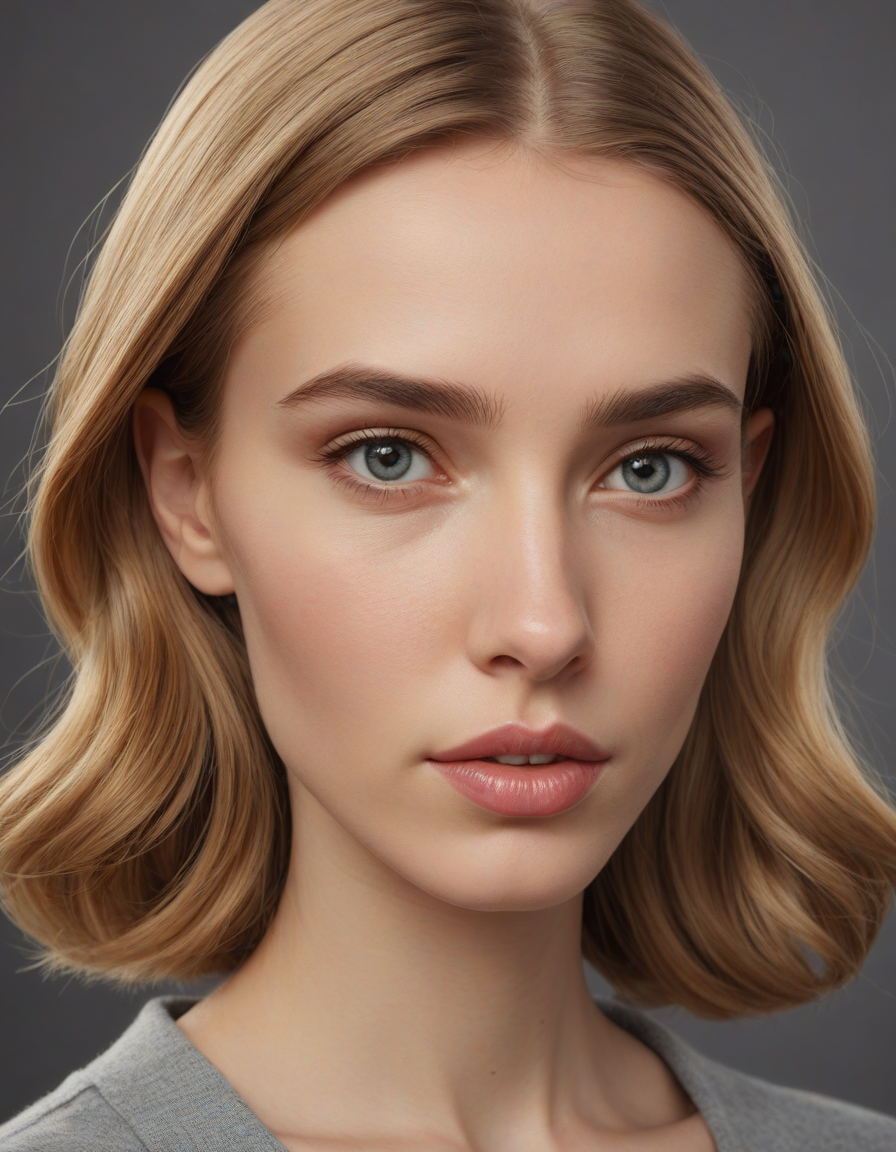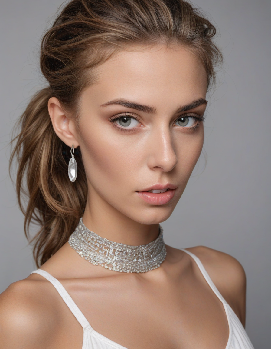 high-arched eyebrows, pronounced cheekbones, full lips, narrow facial structure, small chin, pointed nose tip, deep-set eyes, prominent jawline, smooth forehead, elongated face shape, subtle eye creases, thin nose bridge, voluminous cheek appearance, defined lip contour, sculpted facial silhouette, soft nasolabial folds, high forehead, delicate ear shape, refined jaw angle, sleek facial contour, Caucasian American Girl, Bimbo Facial Features, Barbie-esque Facial Features, british, pale, 18yo, 18 year old, young, youthful,