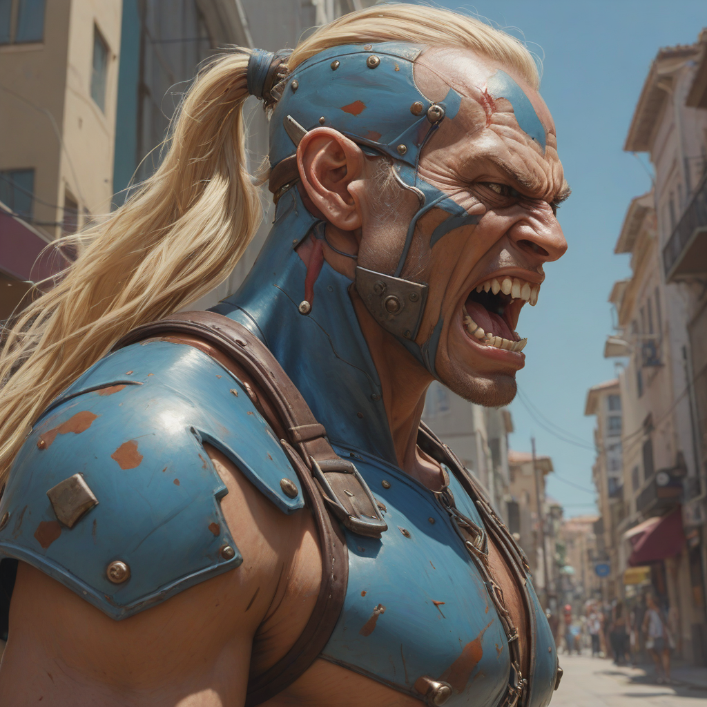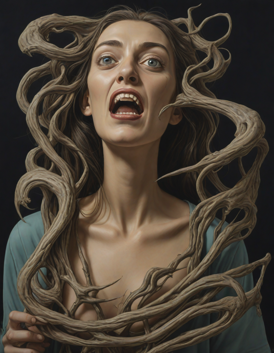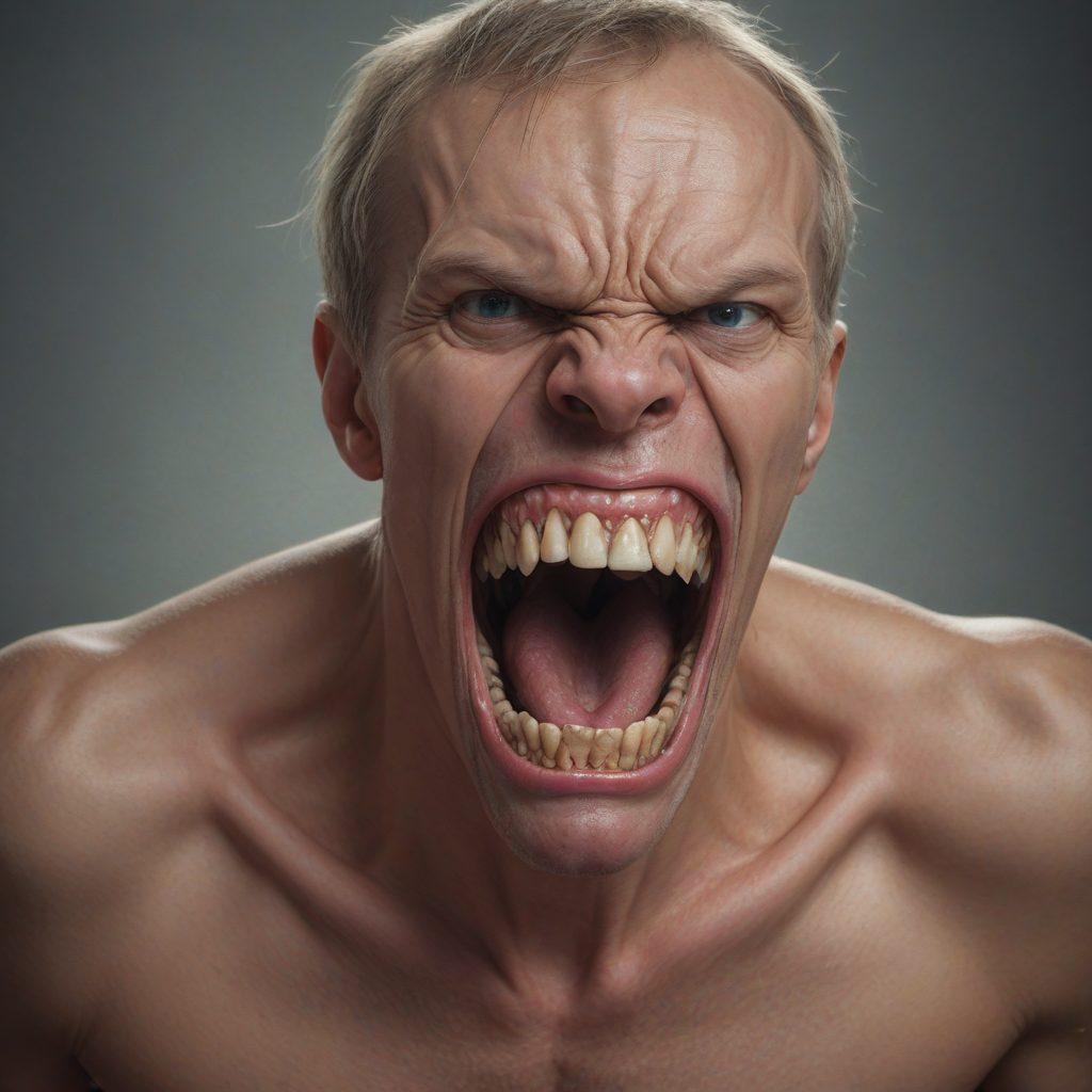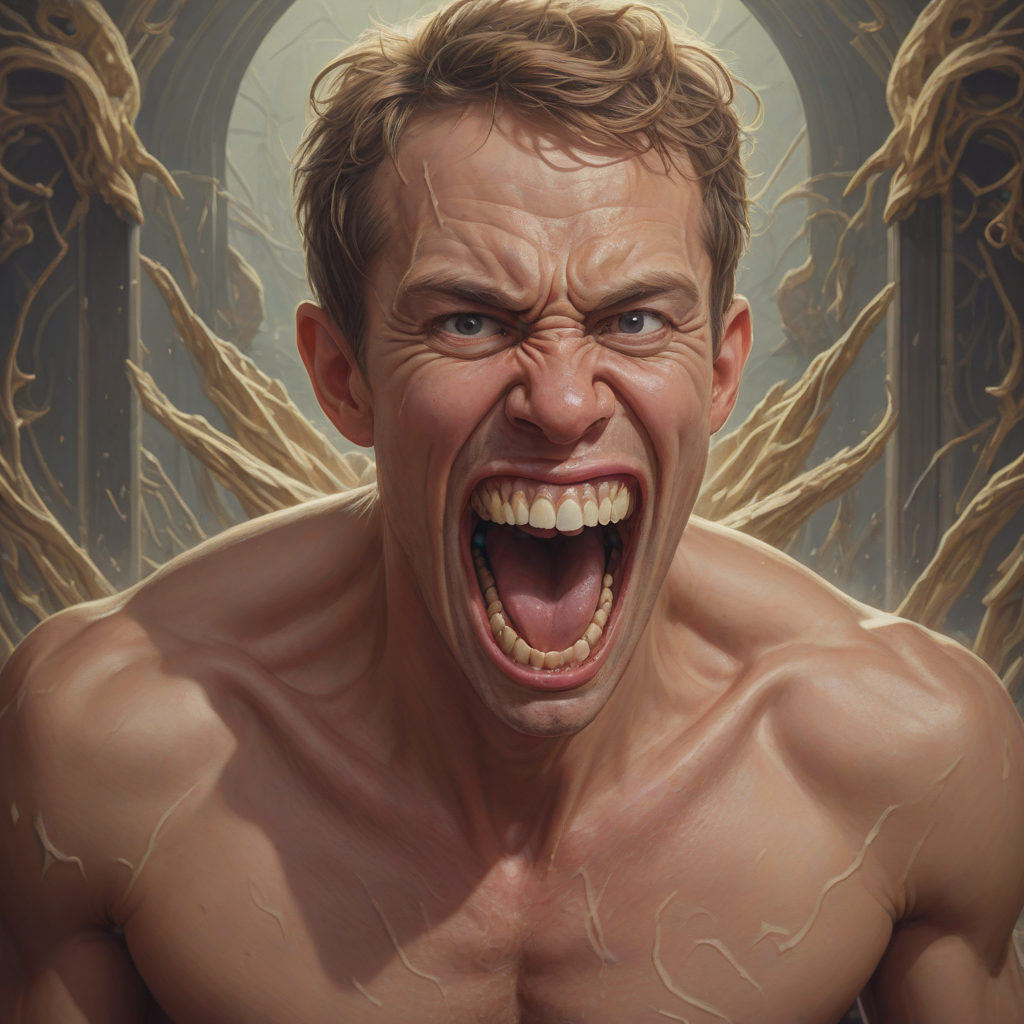 Teeth bared in a snarl, graspi... (3 loras merged)