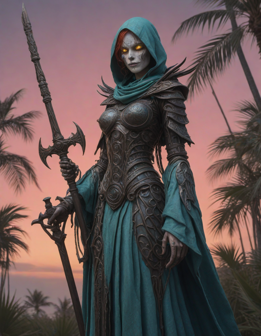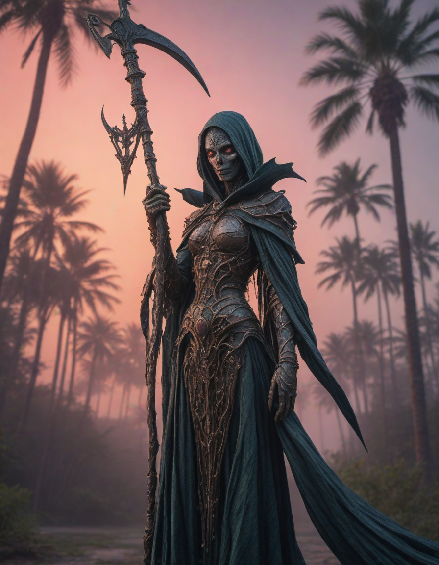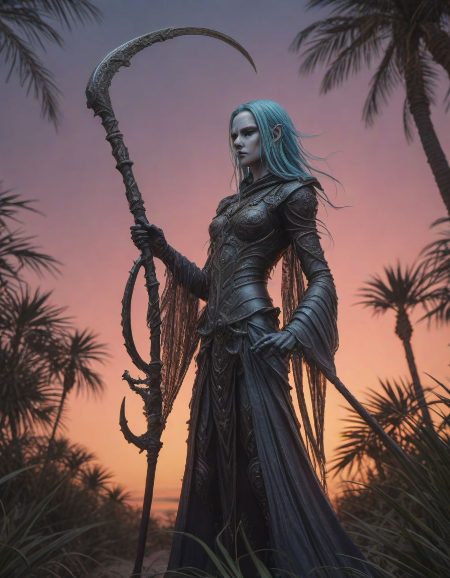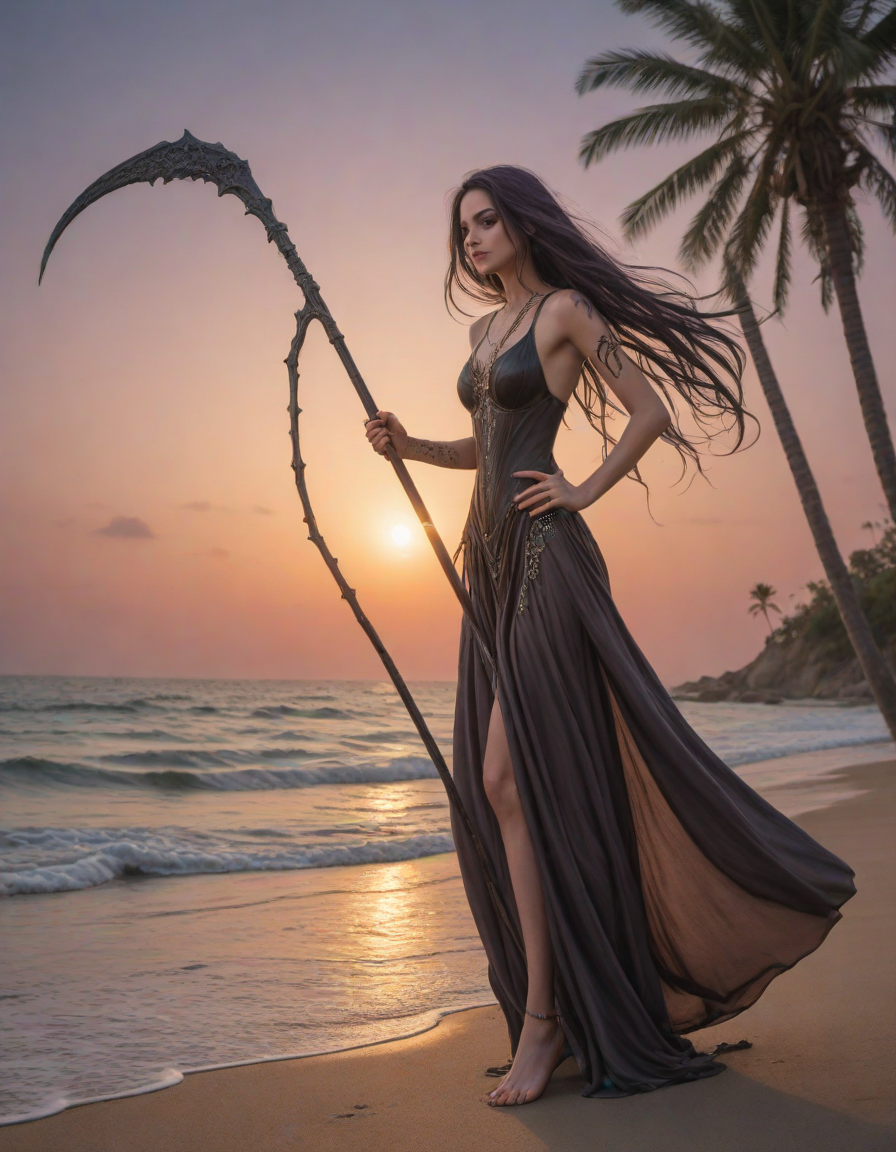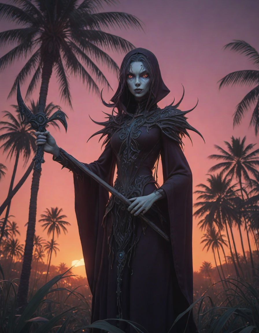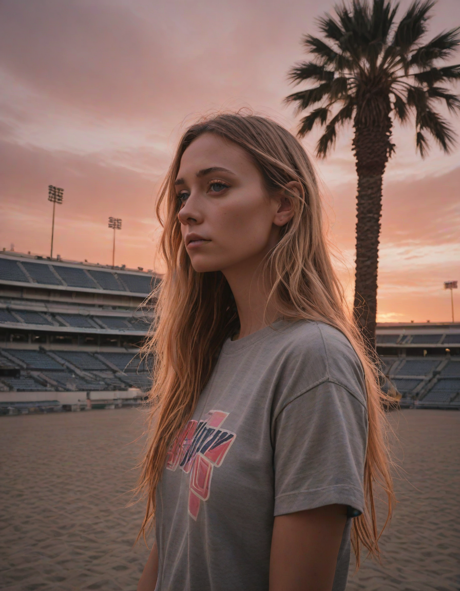 Eyes unmoving, transfixed upon a soothingly swaying slender palm tree silhouetted softly against a radiantly rosy sunrise colored sky stretched expansively beyond her sightline