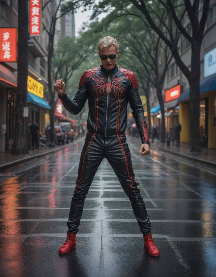 wearing a spiderman costume