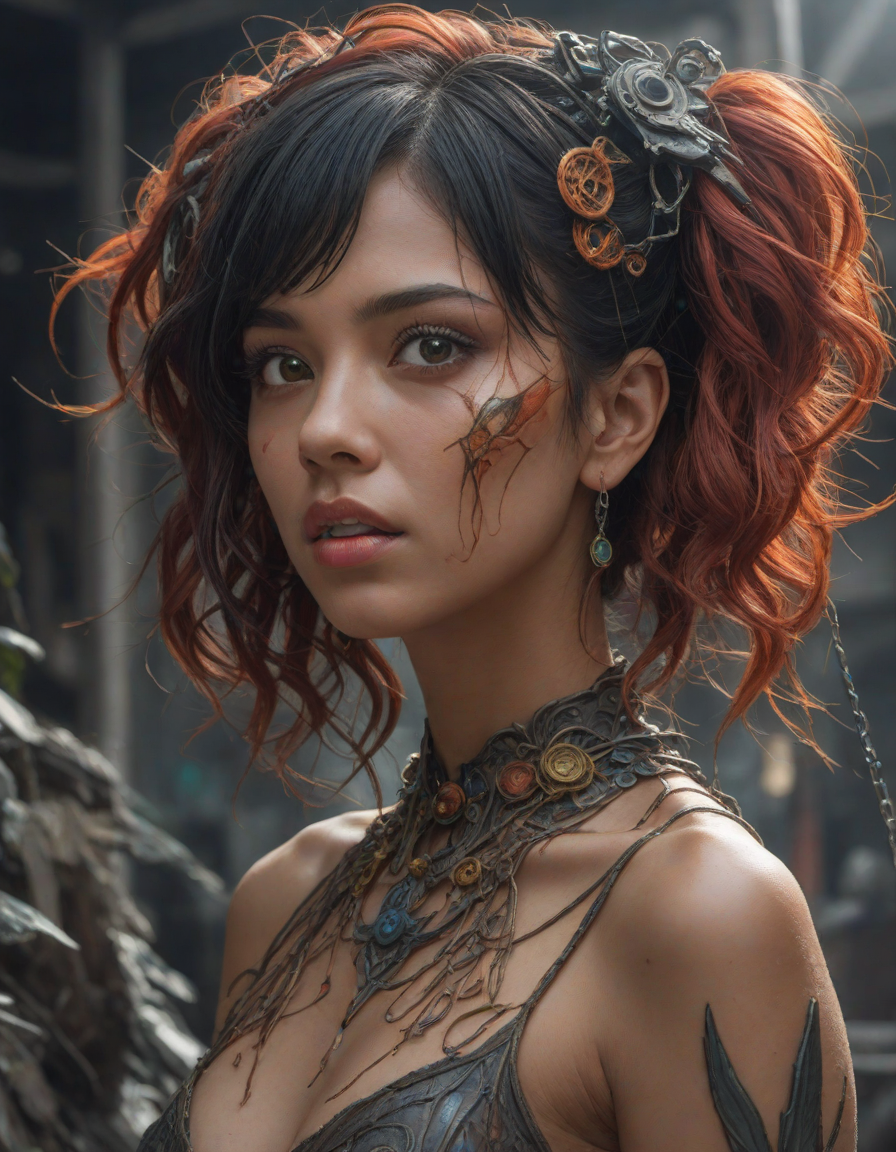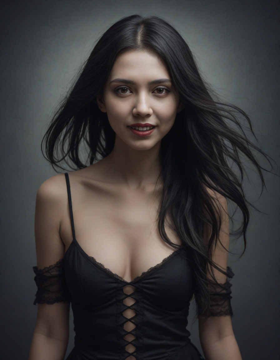 flowing hair, shocked, Gothic ... (6 loras merged)