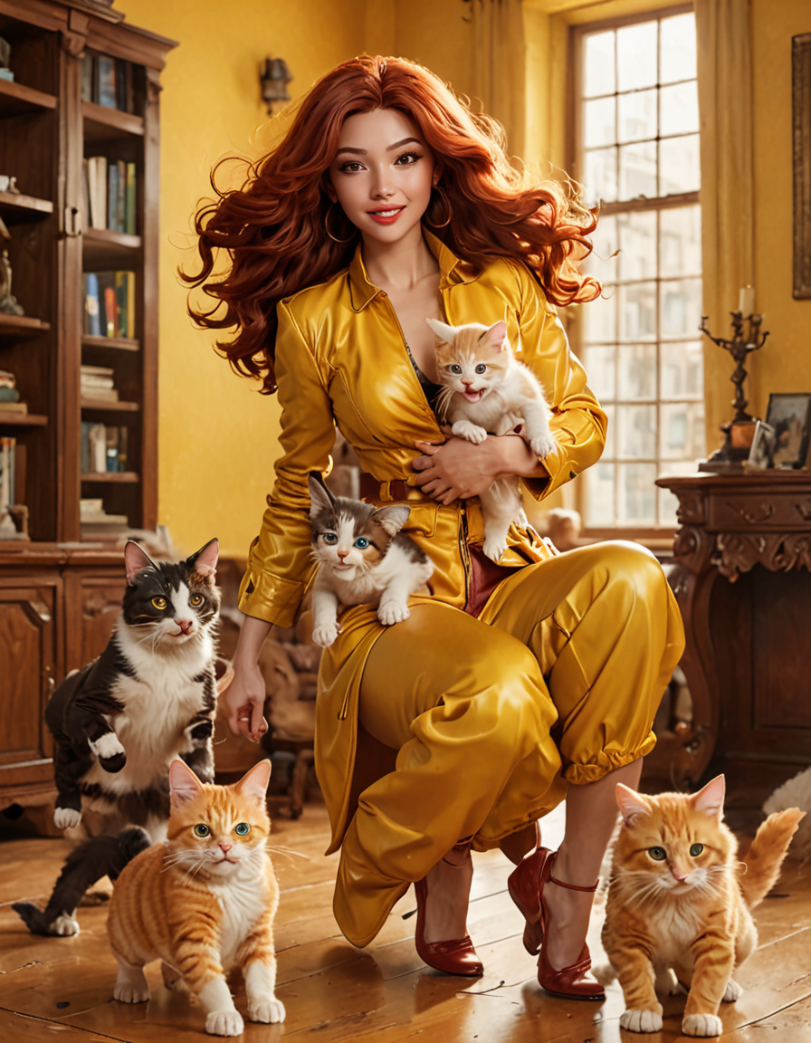 smiling cheerfully, a sharp, ... (7 loras merged)