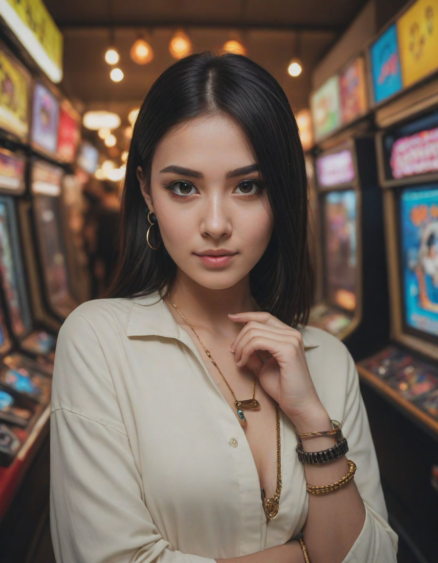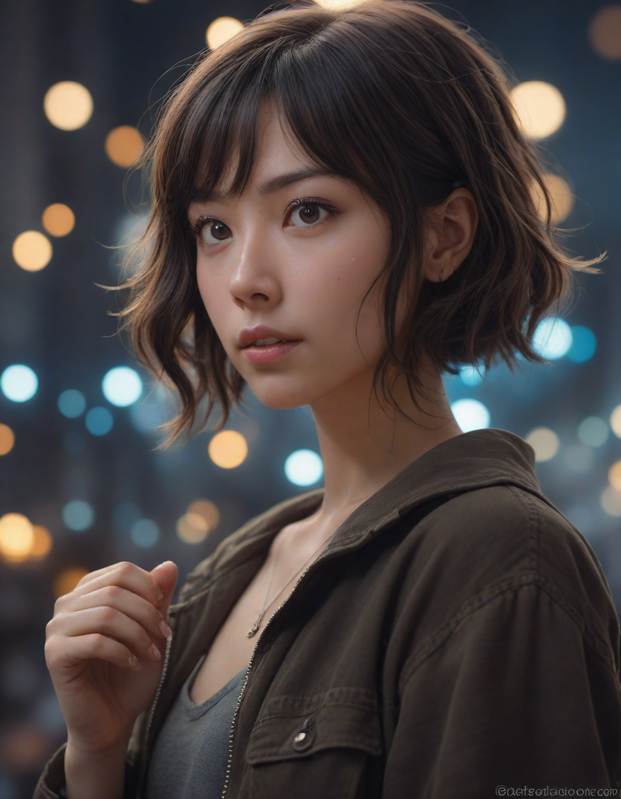 Surrounded by gleaming lights,... (6 loras merged)