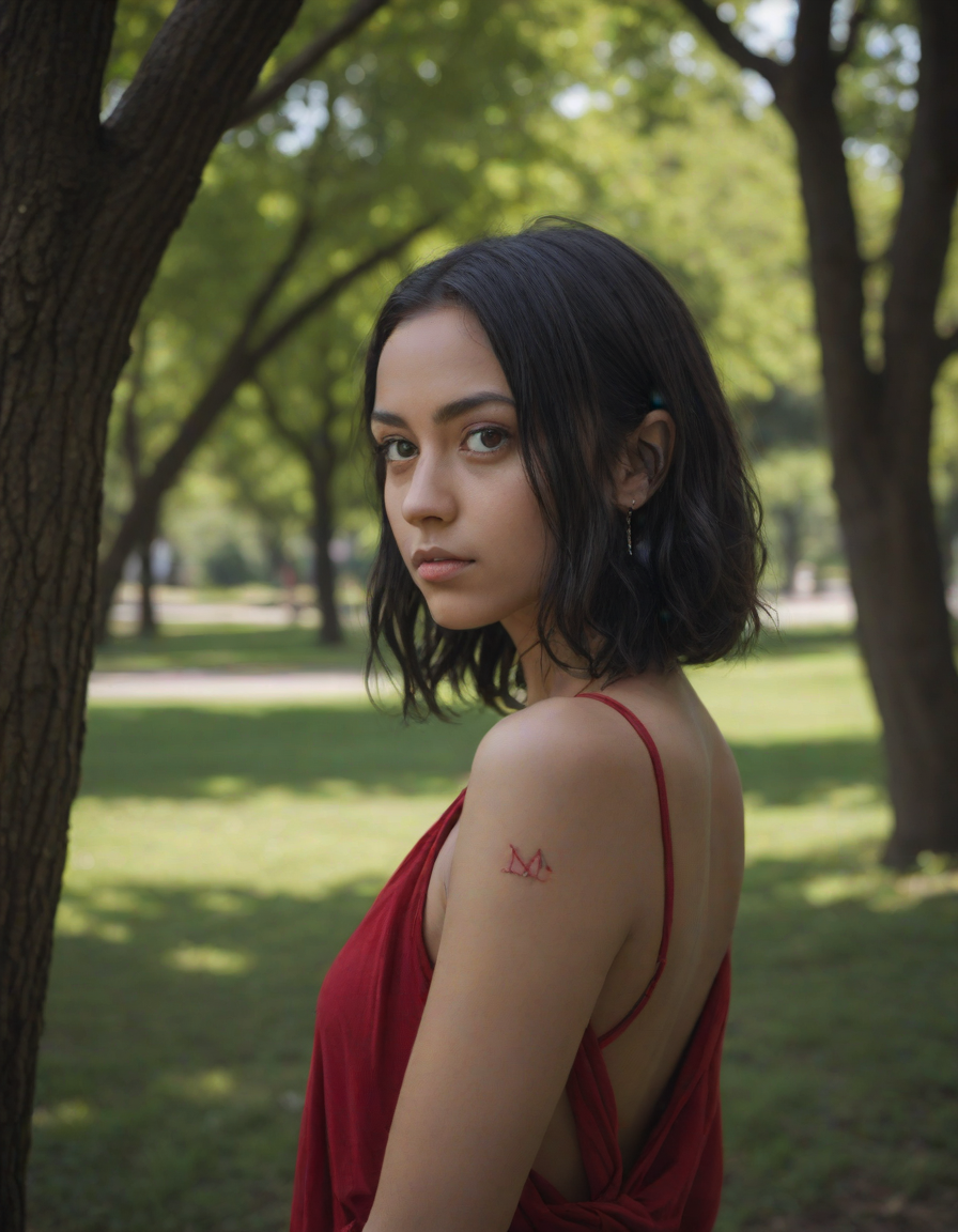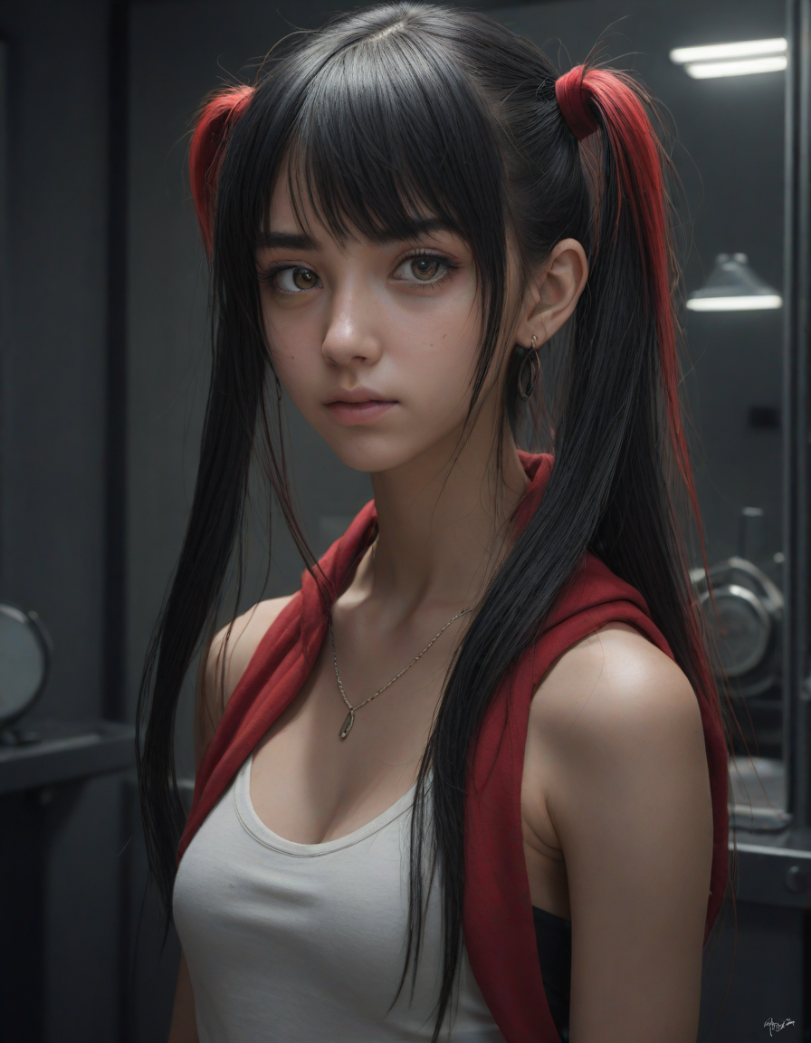 piercing gaze, glowing crimson... (3 loras merged)