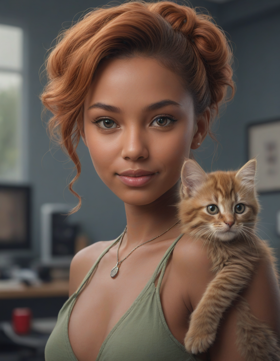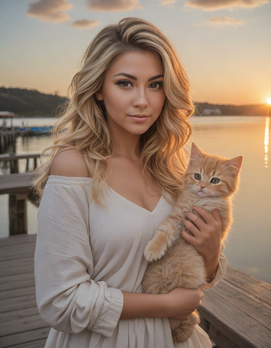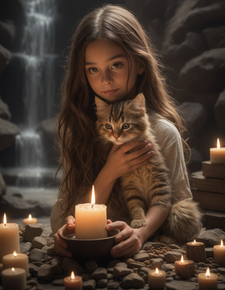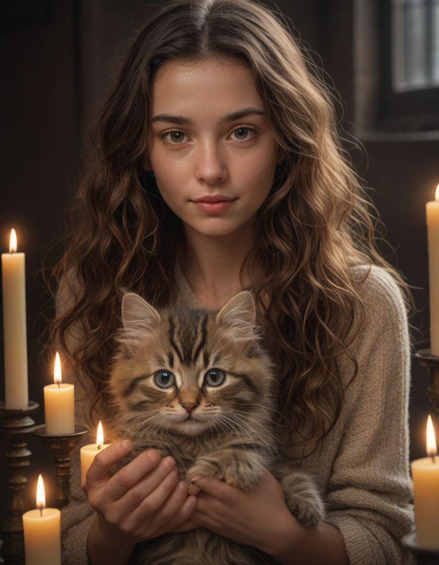 Cherishing a fluffy kitten, Gl... (2 loras merged)