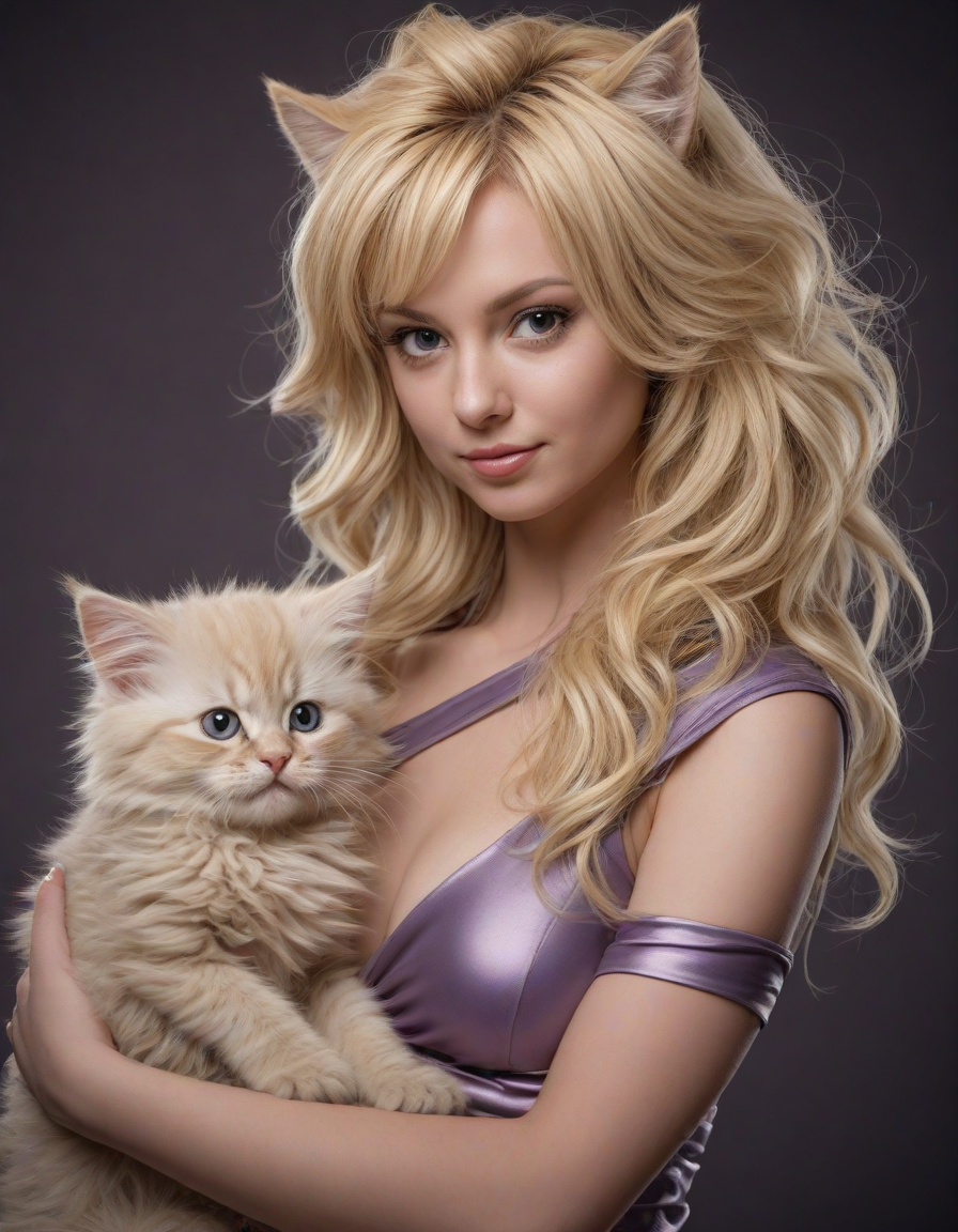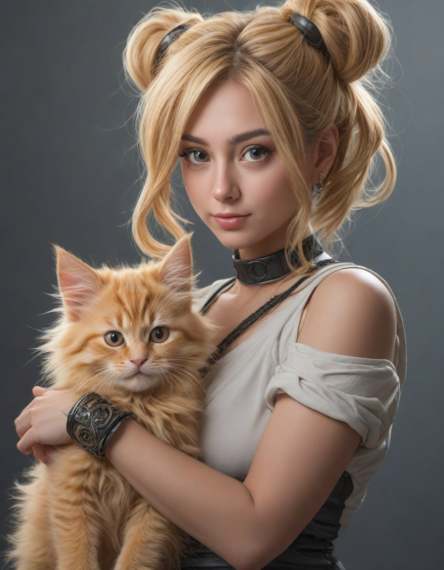 Cherishing a fluffy kitten, Bo... (5 loras merged)