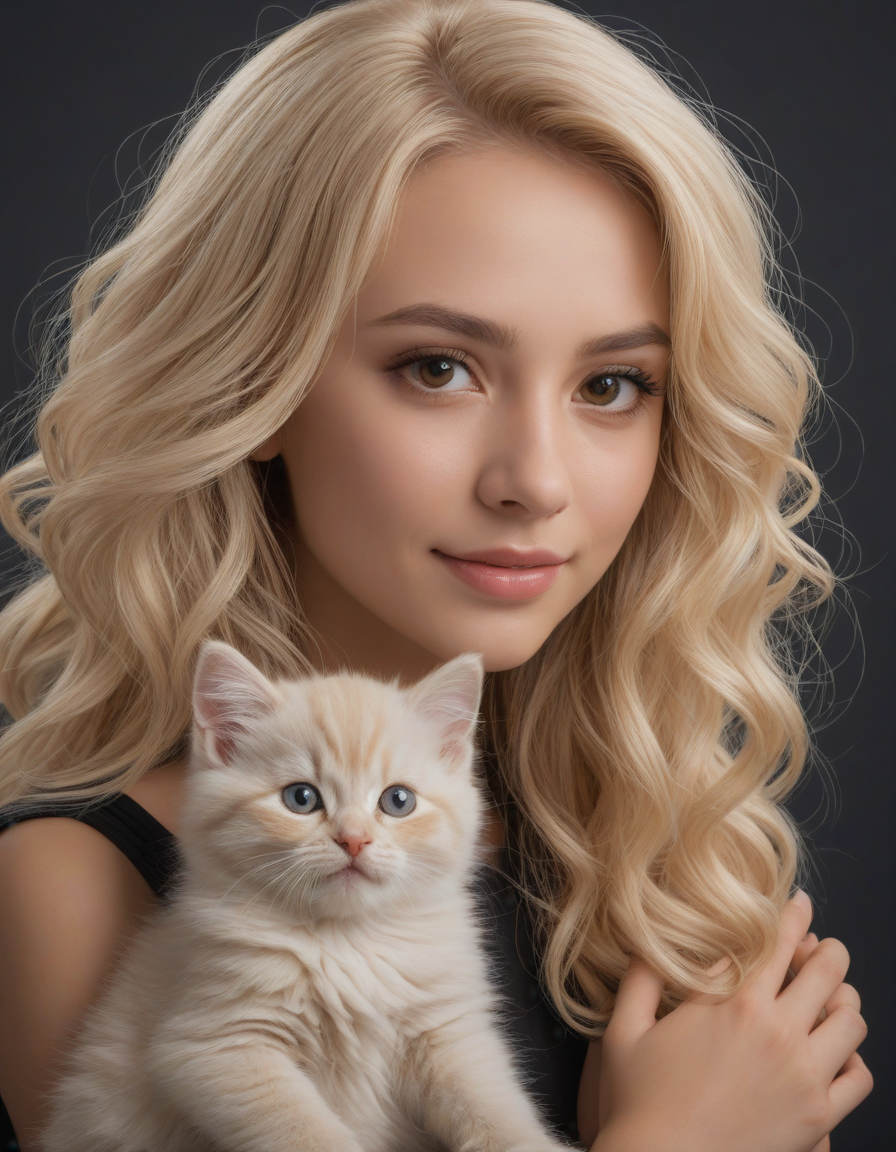 Cherishing a fluffy kitten, po... (7 loras merged)