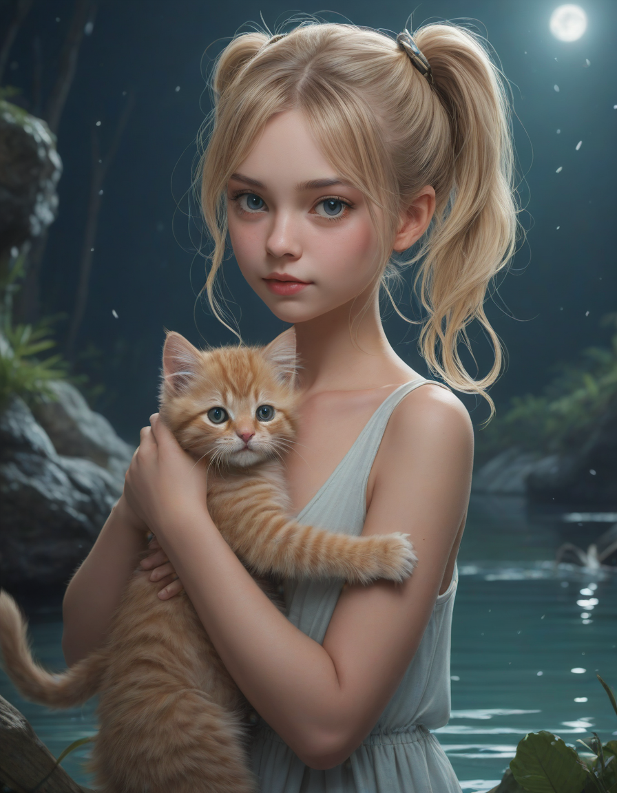 Cherishing a fluffy kitten, pi... (4 loras merged)