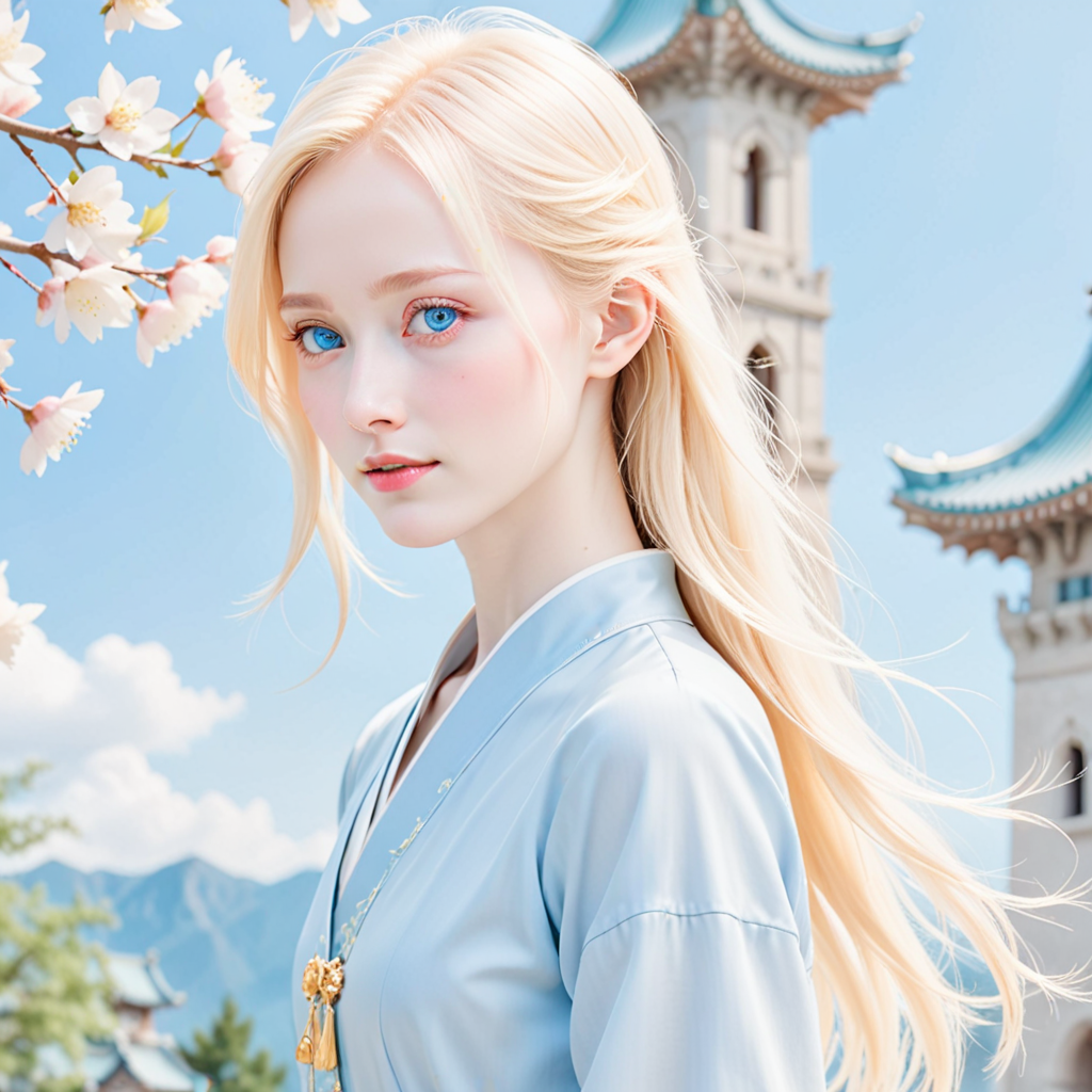 Light blue eyes, fair skin tone, high cheekbones, soft jawline, slender nose, fine hair texture, oval-shaped face, subtle brow arches, rosy cheeks, delicate lip shape, smooth skin texture, minimal facial hair, light blonde or brown hair, prominent forehead, narrow face structure, long eyelashes, natural blush, defined cheek contours, graceful neck line, ethereal facial glow, wispy eyebrow texture, cool skin undertones, translucent skin sheen, elegant nose bridge, soft facial angles, harmonious facial symmetry
