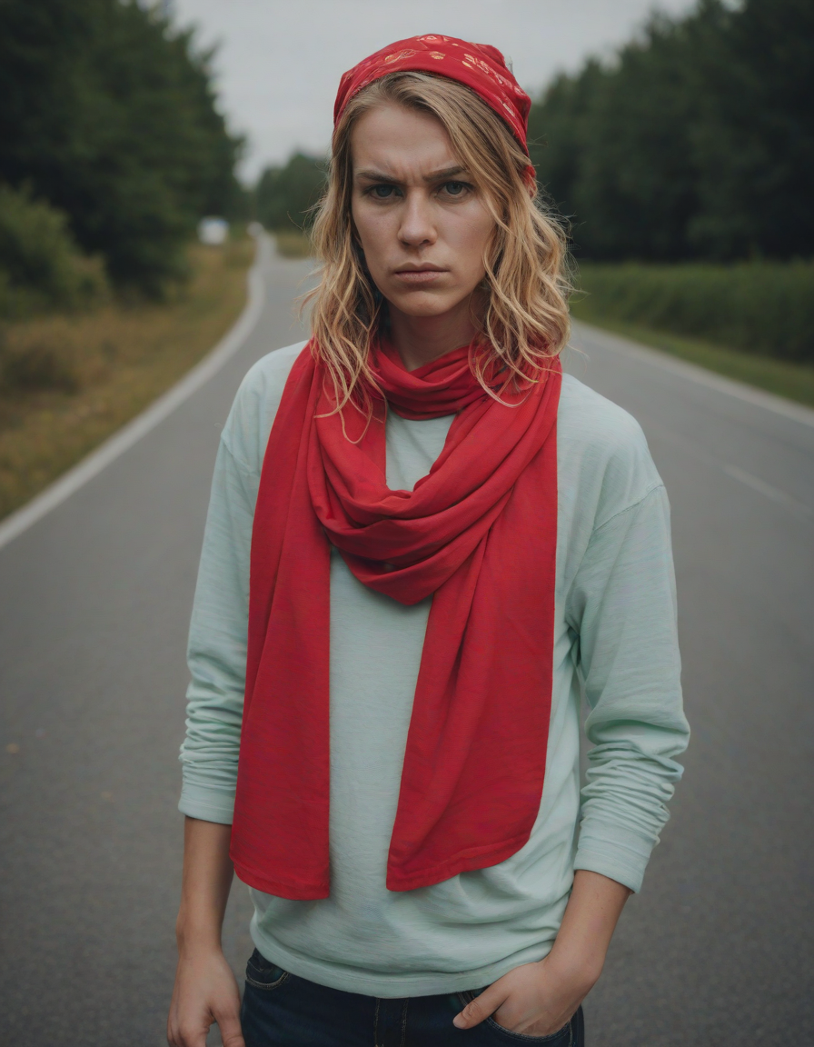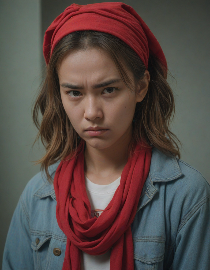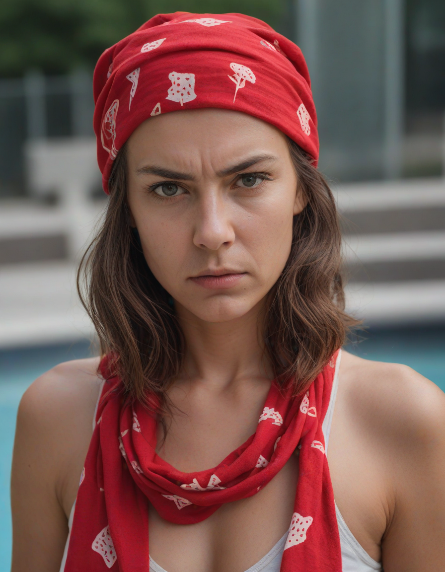 wearing a red bandana