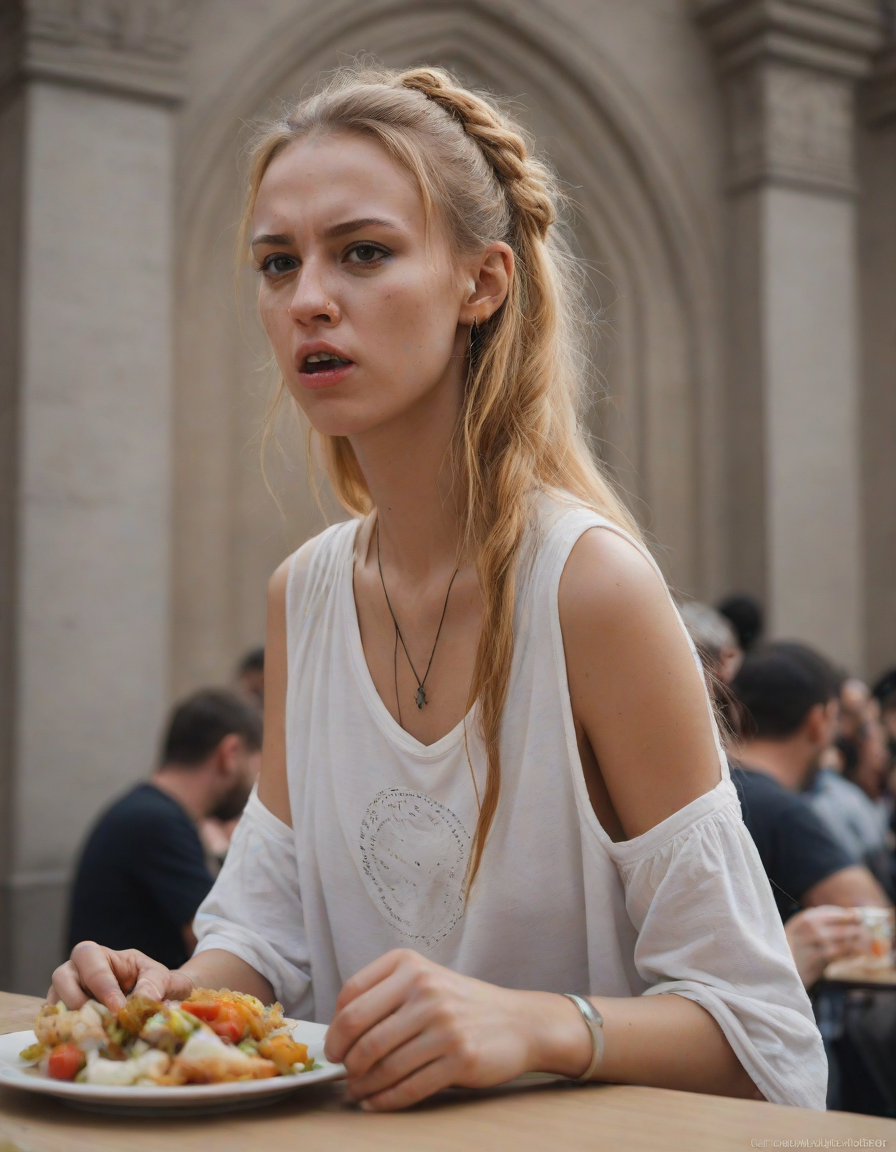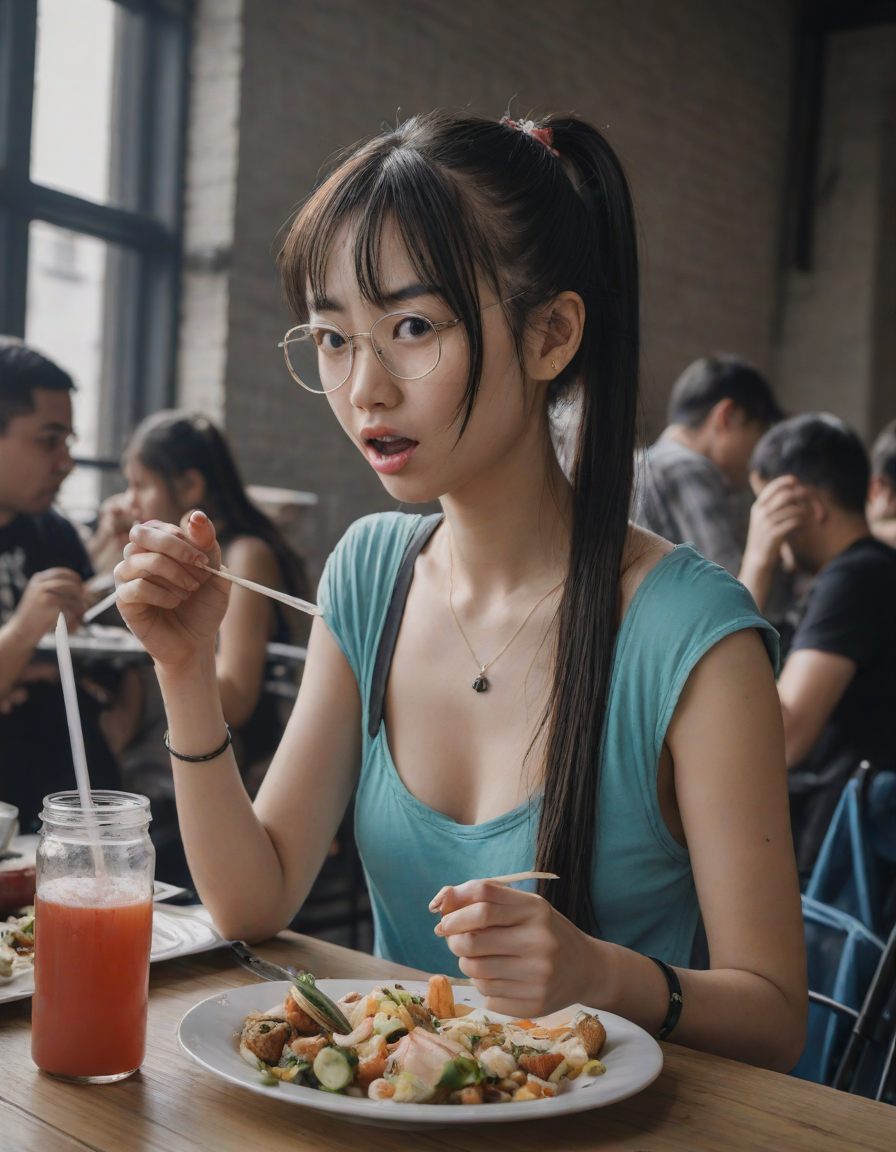 aggressive, Having lunch, at a... (3 loras merged)