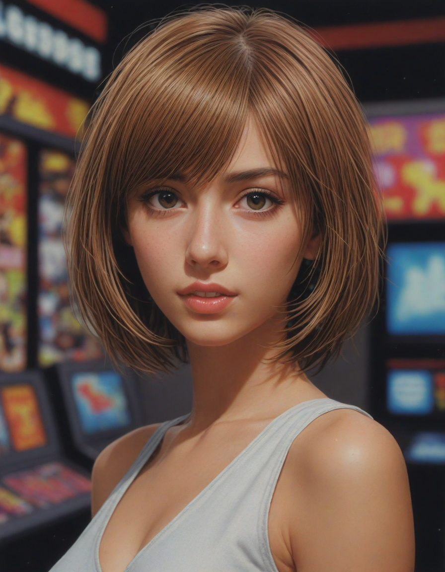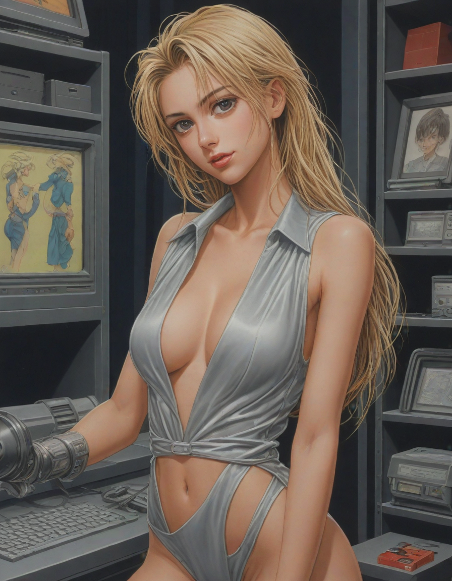 flirtatious, wearing 80s cloth... (9 loras merged)
