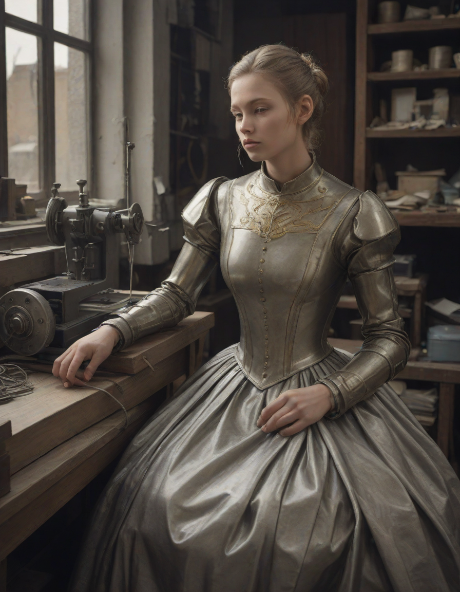 ornate, gold-trimmed ball gown... (9 loras merged)