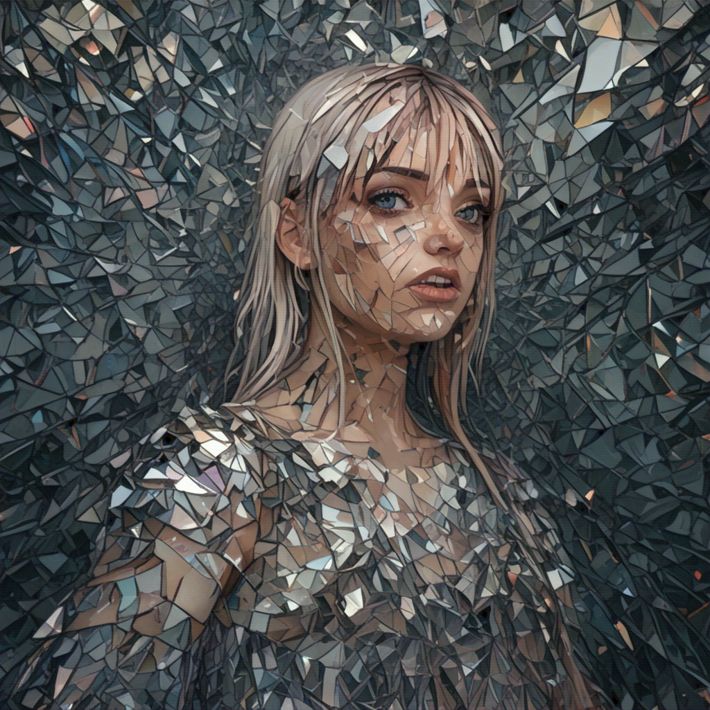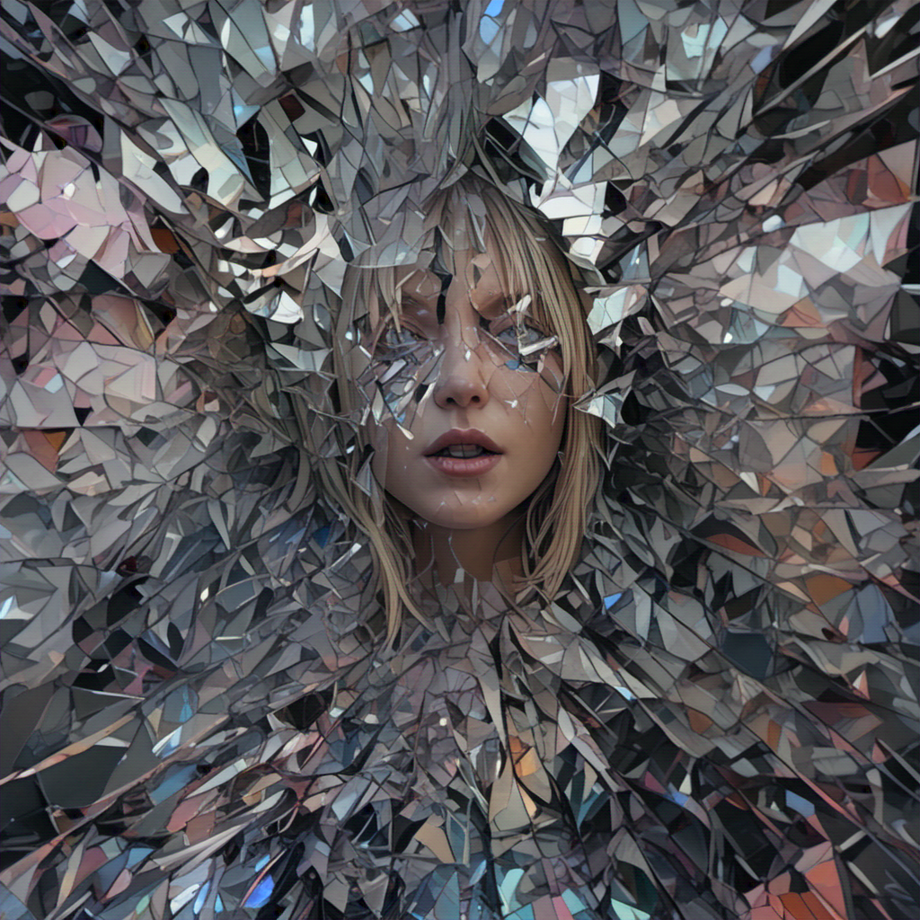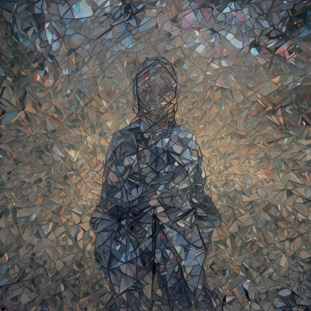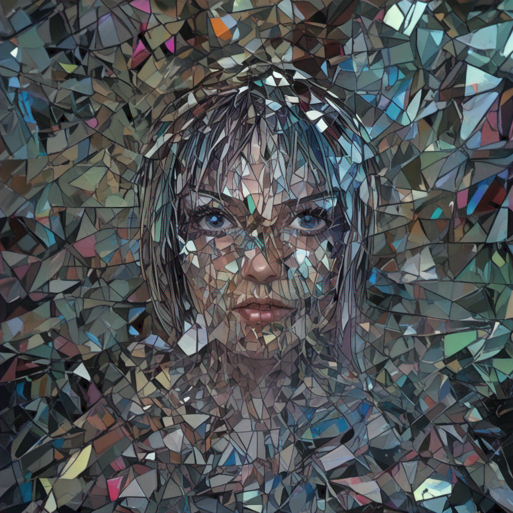Smooth, unbroken, cohesive→Shattered glass, fragmented, kaleidoscopic