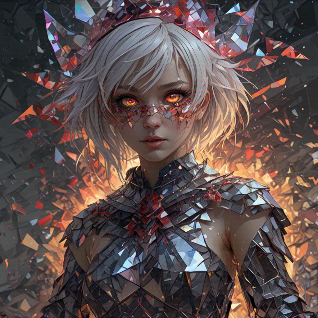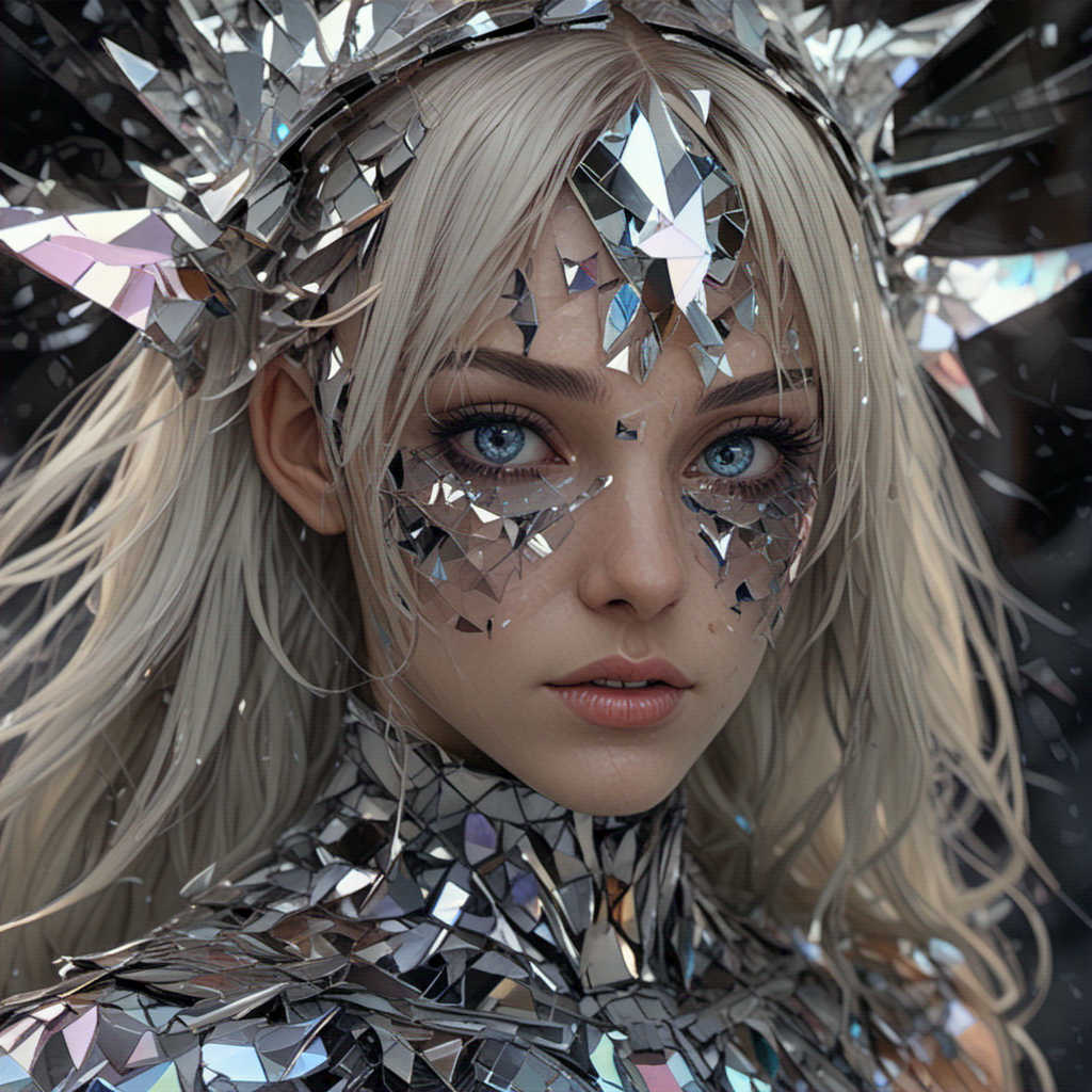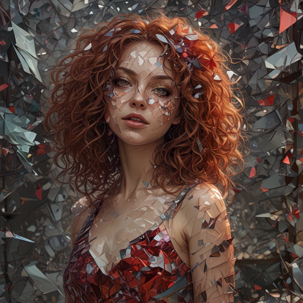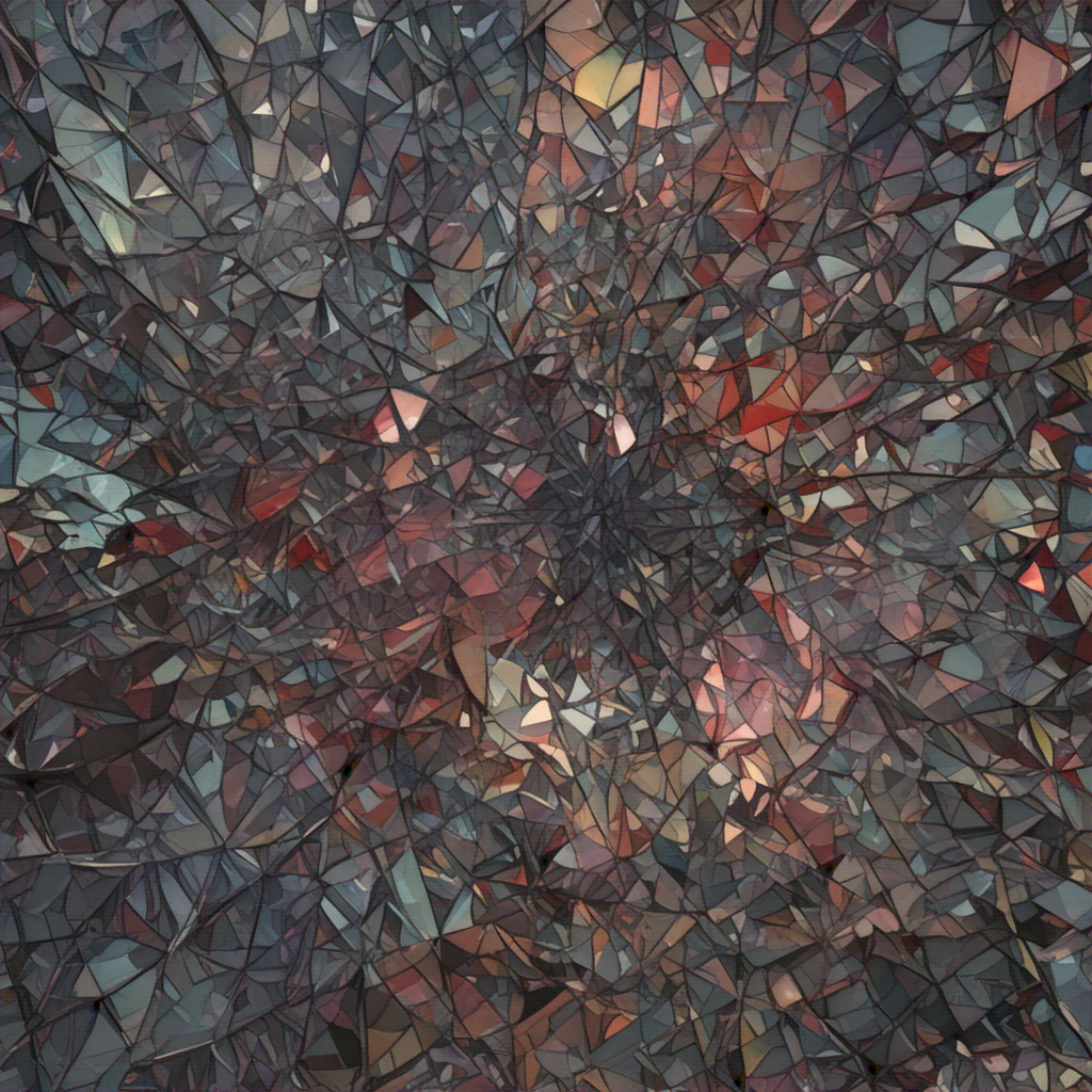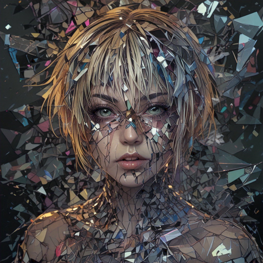 Smooth, unbroken, cohesive→Shattered glass, fragmented, kaleidoscopic
