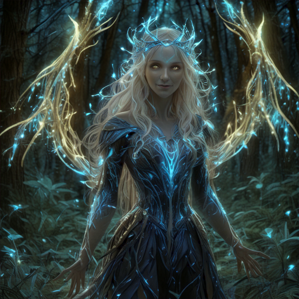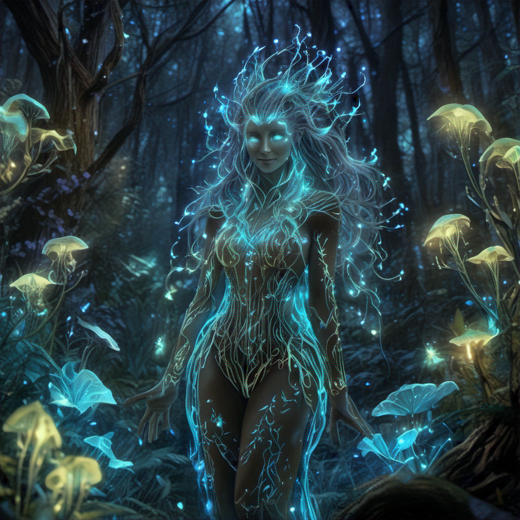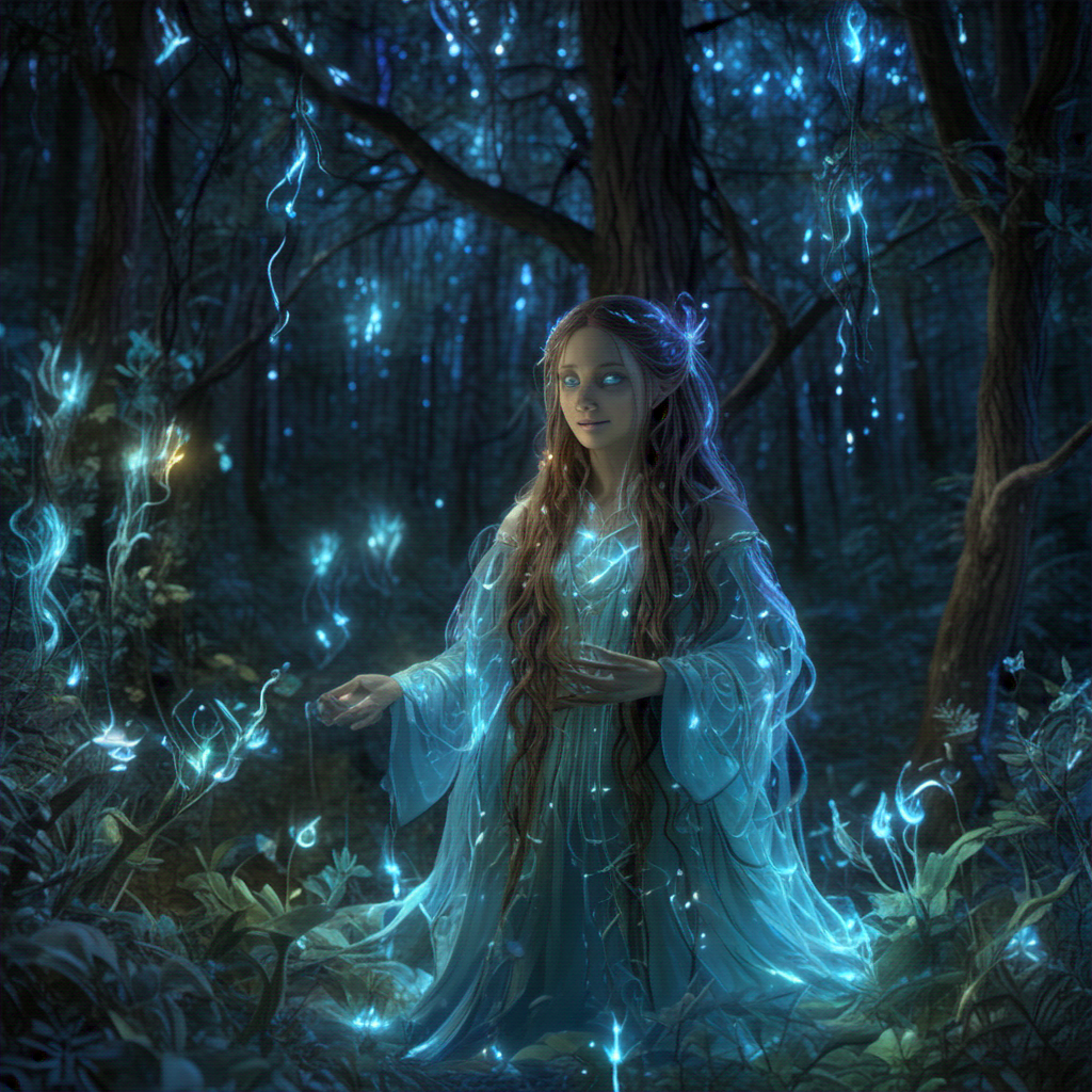 magical fantasy forest, bioluminescent plants, ethereal atmosphere